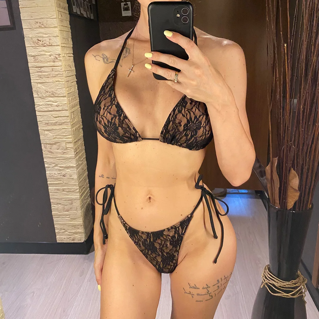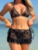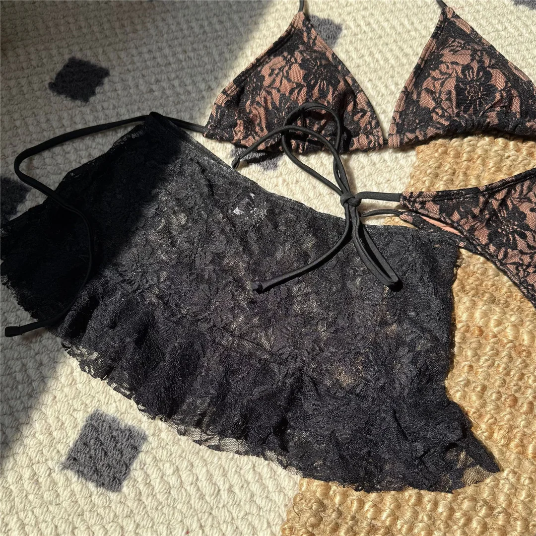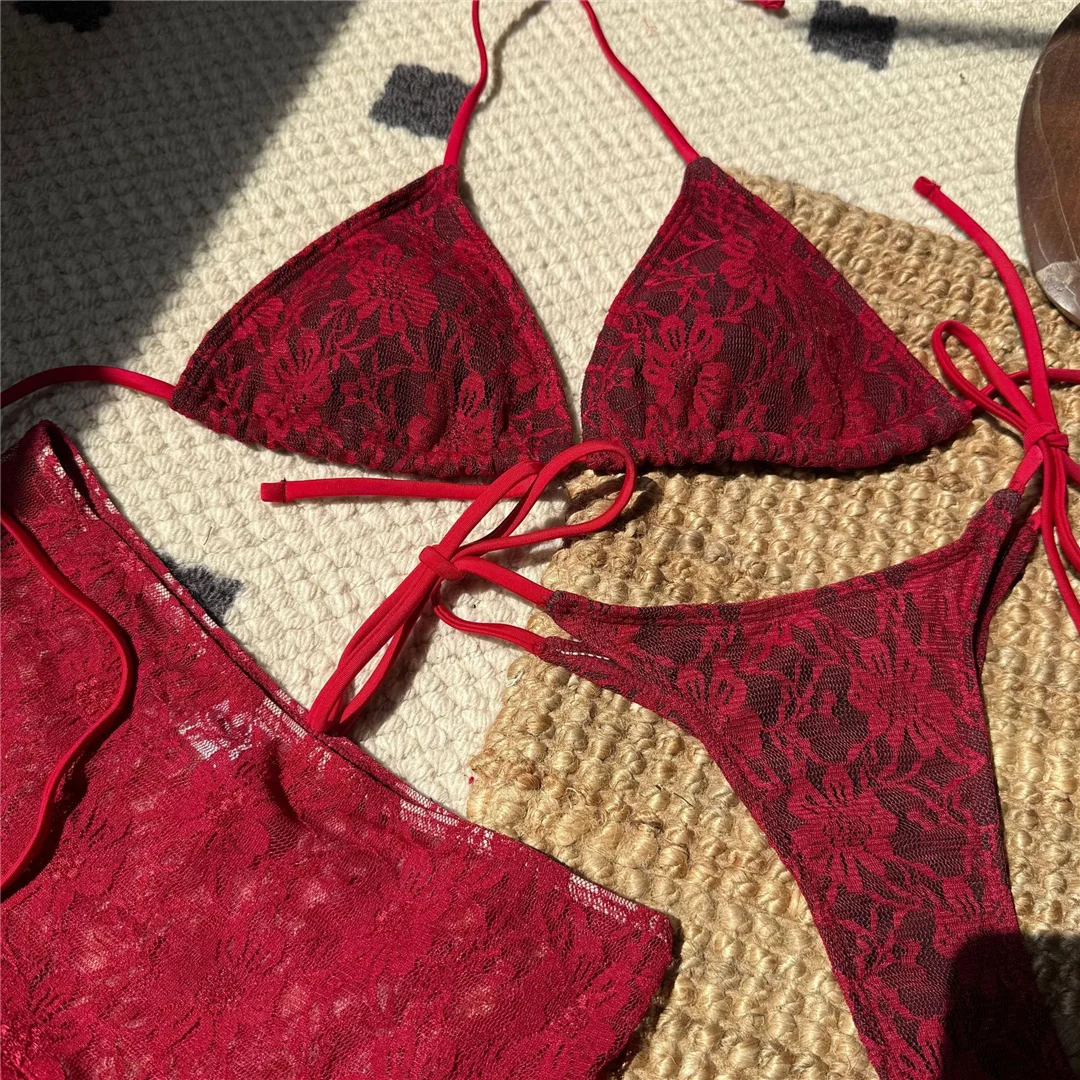 3PCS With Skirt Halter Lace Bikini Female Swimsuit Women Swimwear Three-pieces Bikini set Padded Bather Bathing Suit Swim V6818