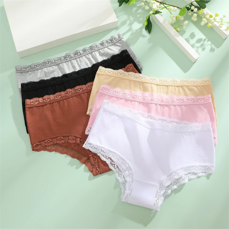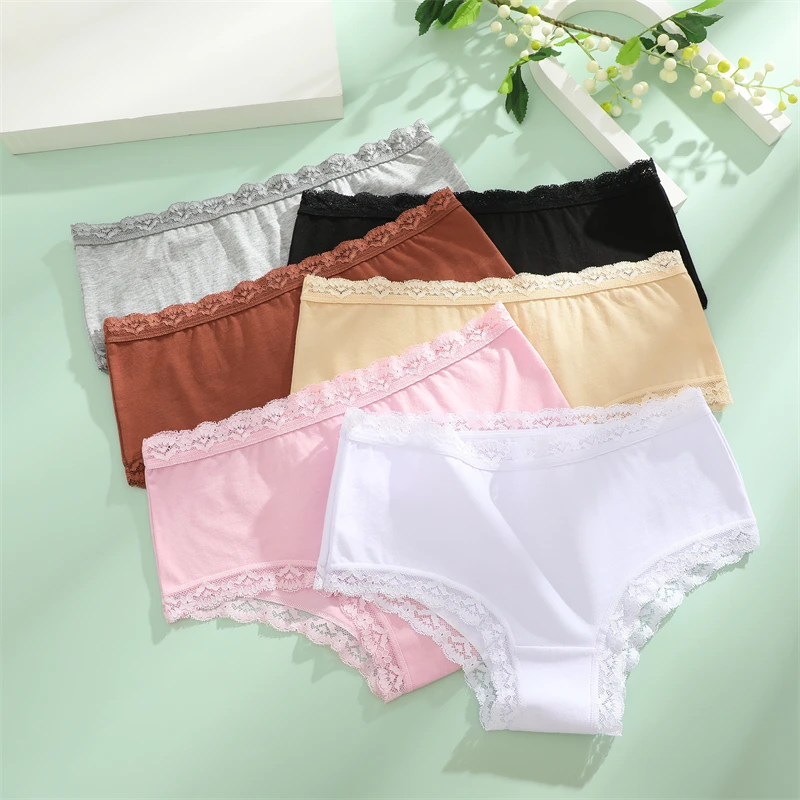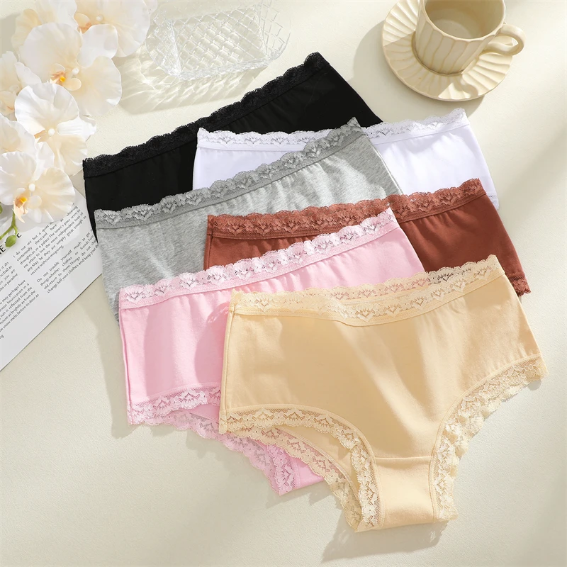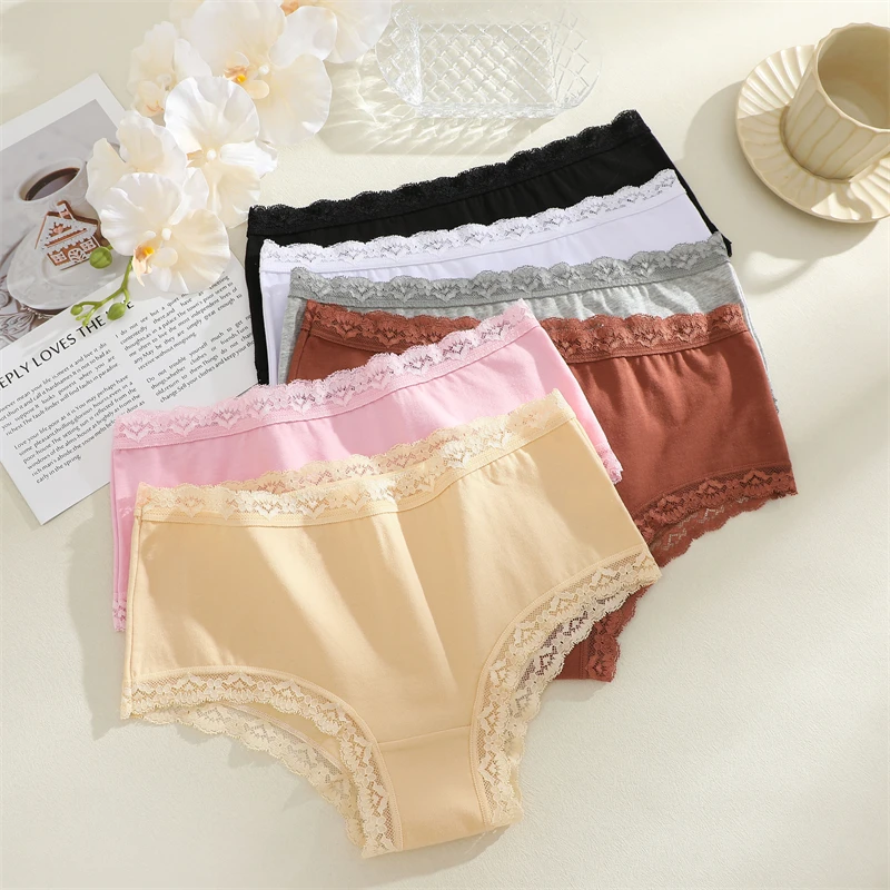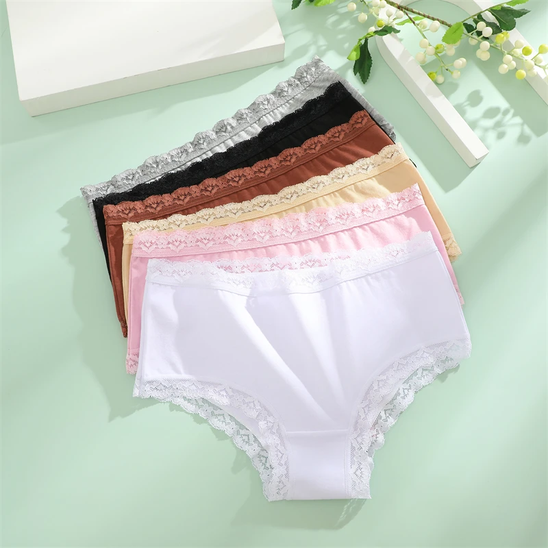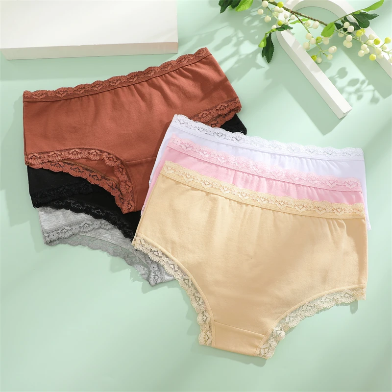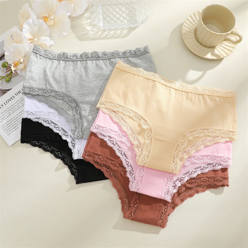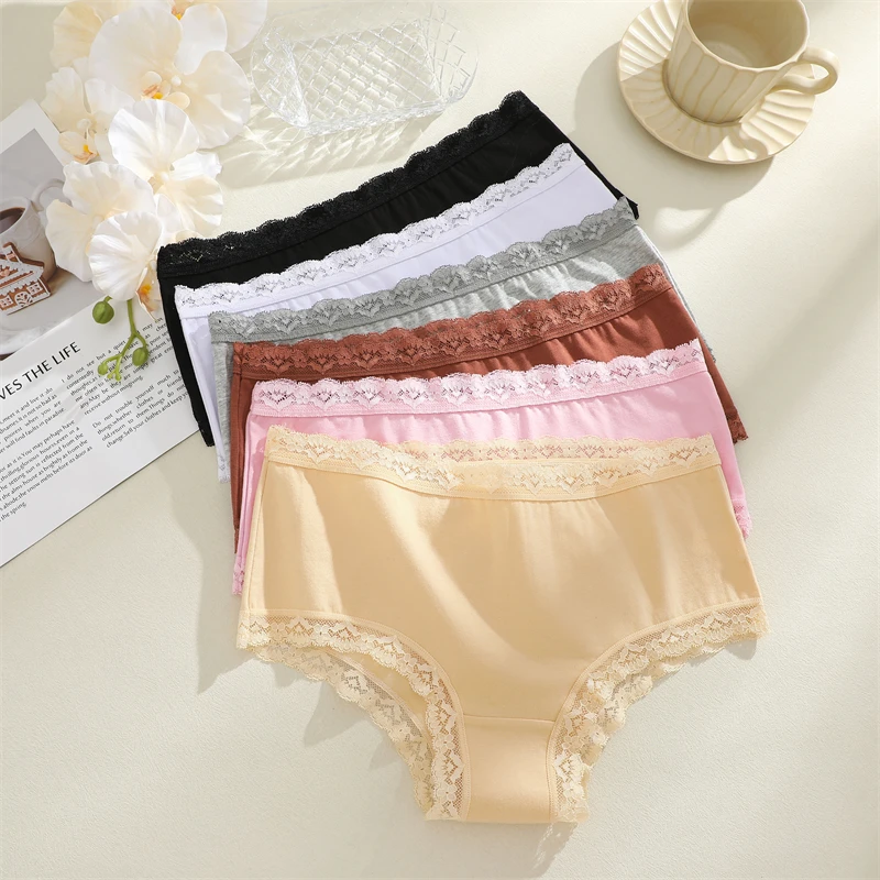 3PCS Women Cotton Lace Underwear Sexy Breathable Solid Panties S-XXL Low-Waist Seamless Briefs Girls Sports Soft Lingerie New