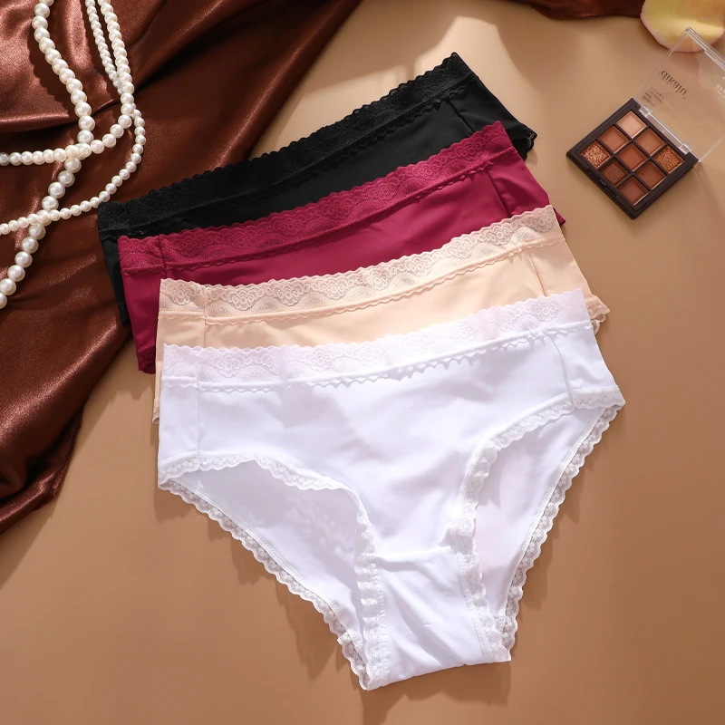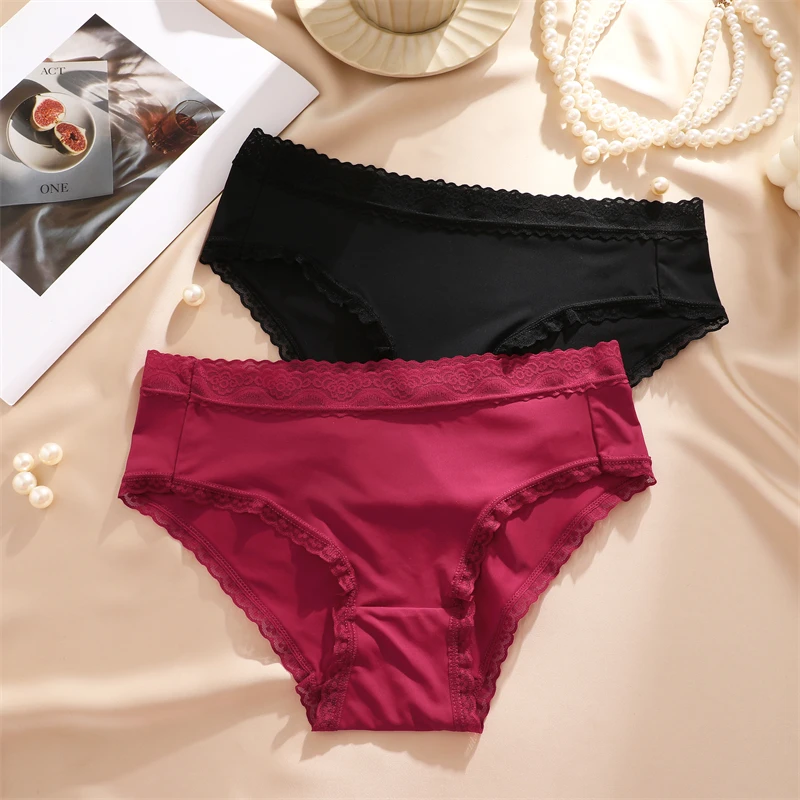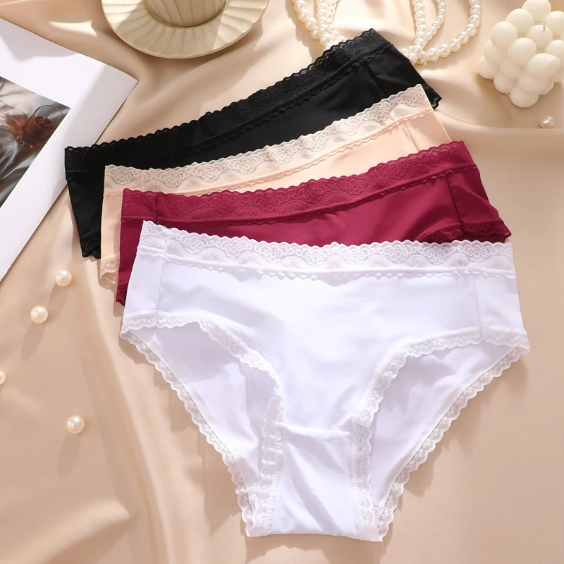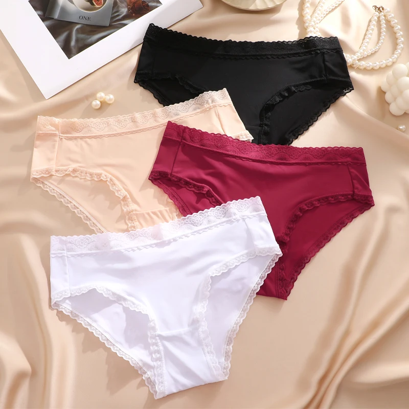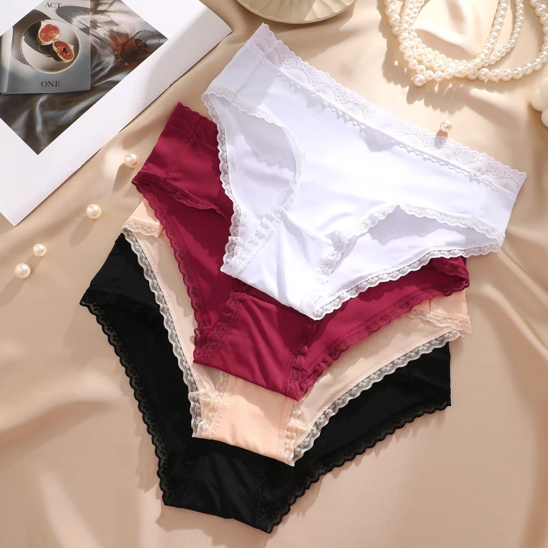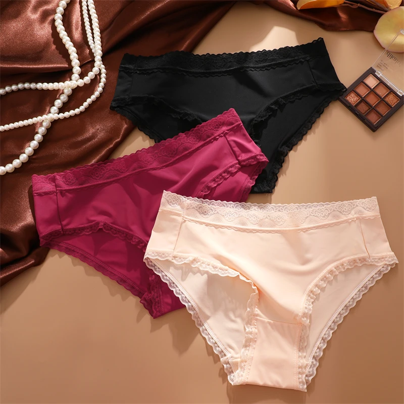 3Pcs Women Seamless Ultra-Soft Underwear Sexy Low Waist Lace Panties Female Breathable Solid Briefs Sports Comfort Lingerie S-XL