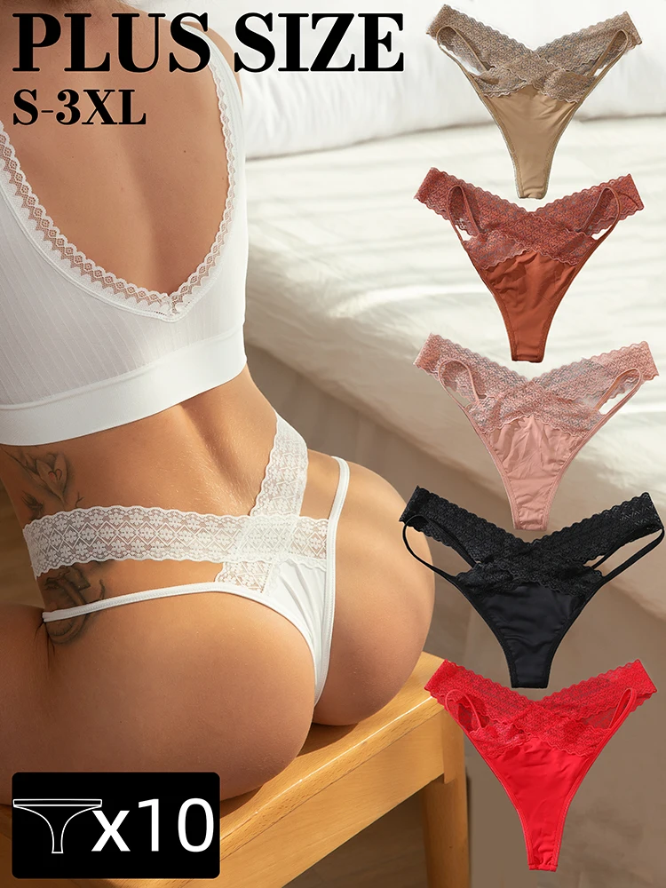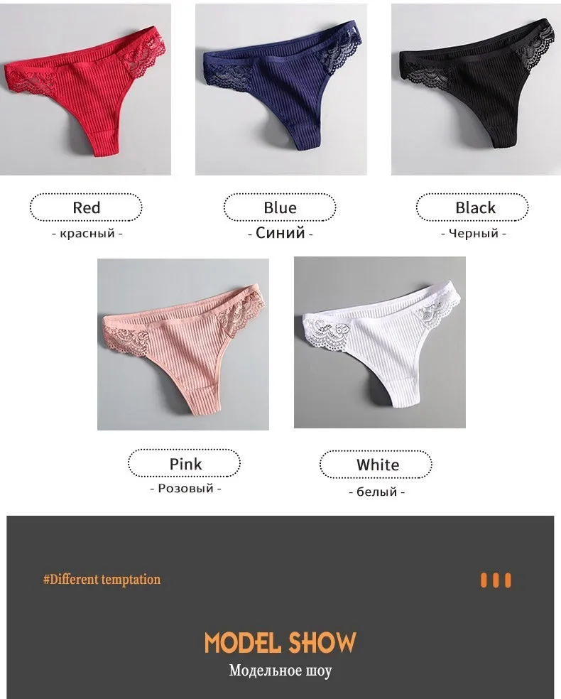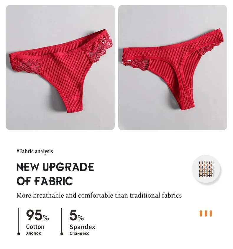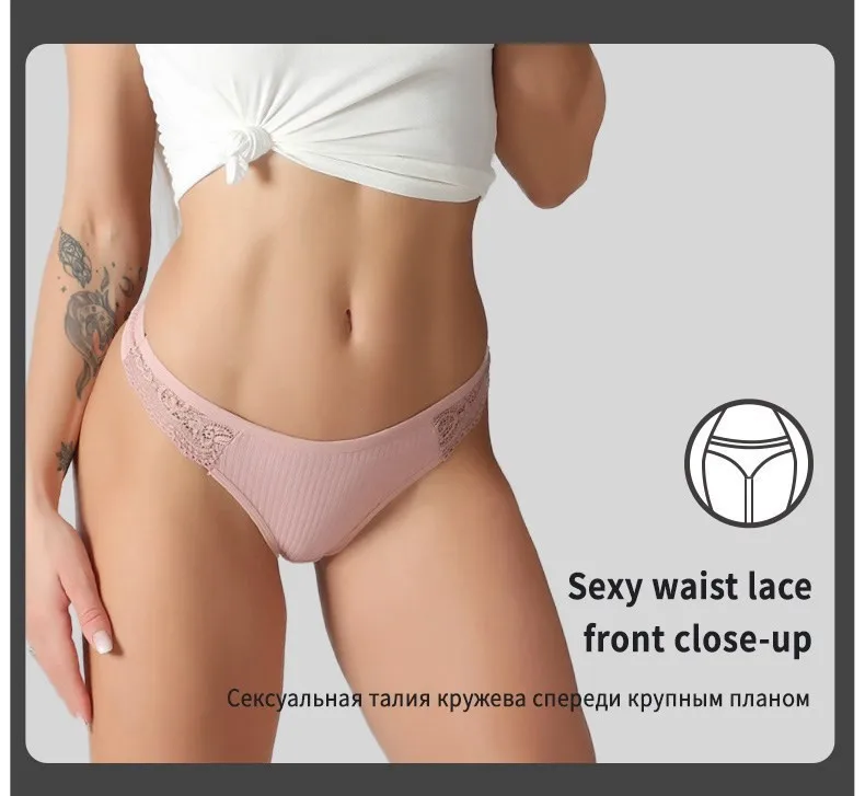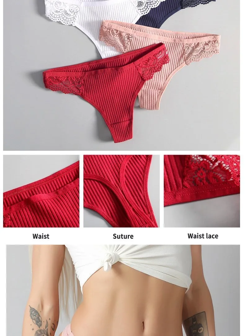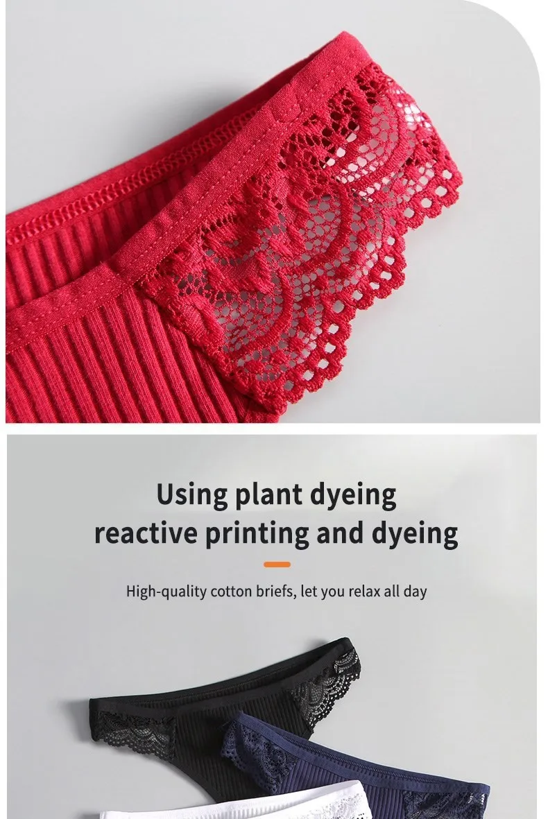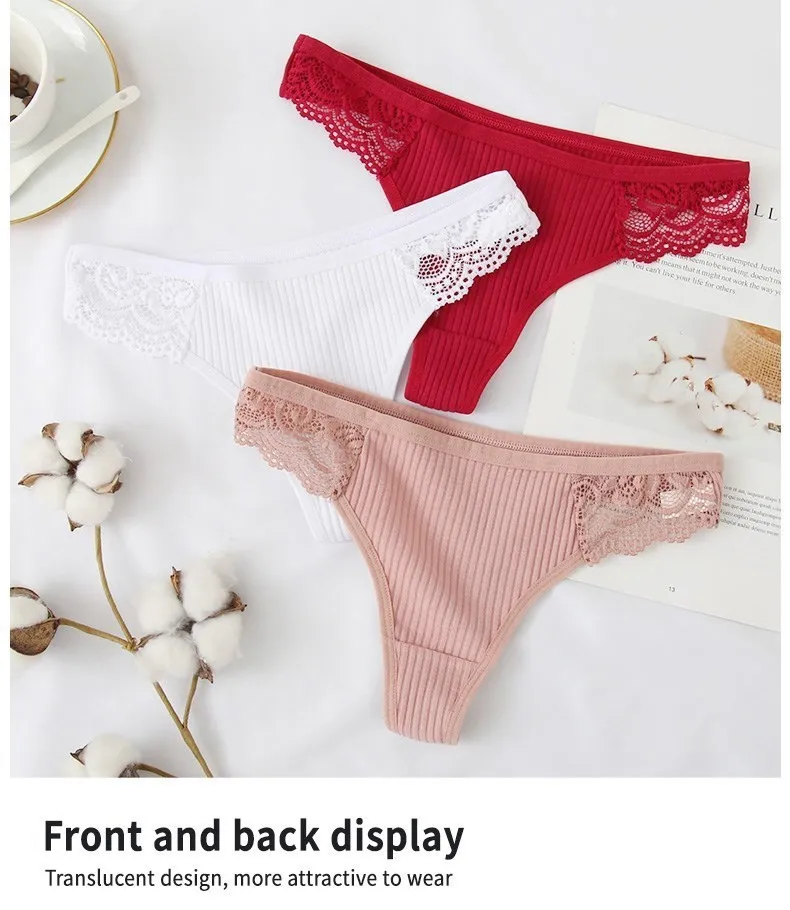 3pcs Women’s Lace Panties Sexy Plus Size Underwear Fashion Lingerie Cotton G-string Letter Thong Low Waist Briefs Soft Intimates