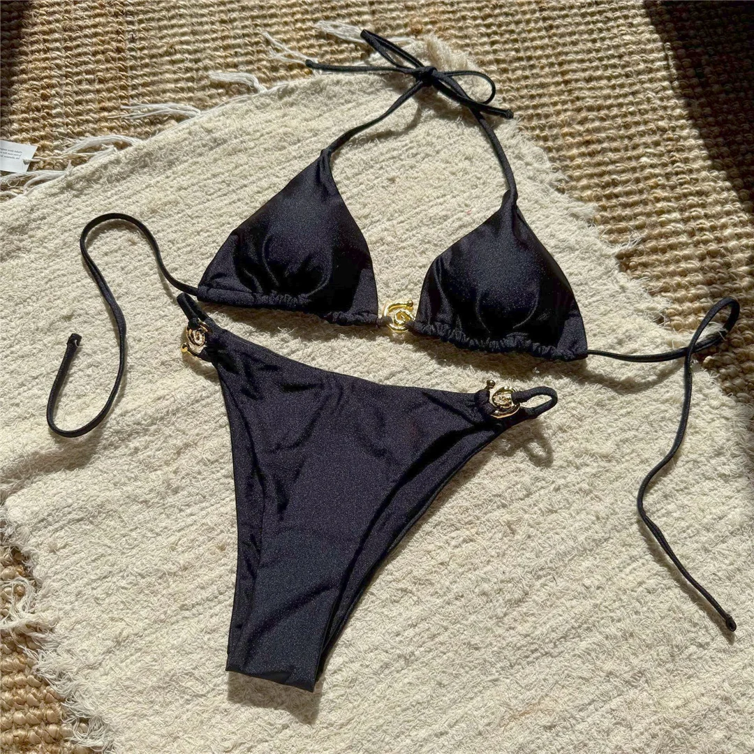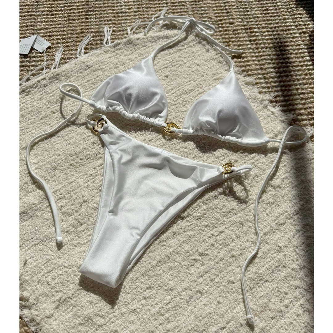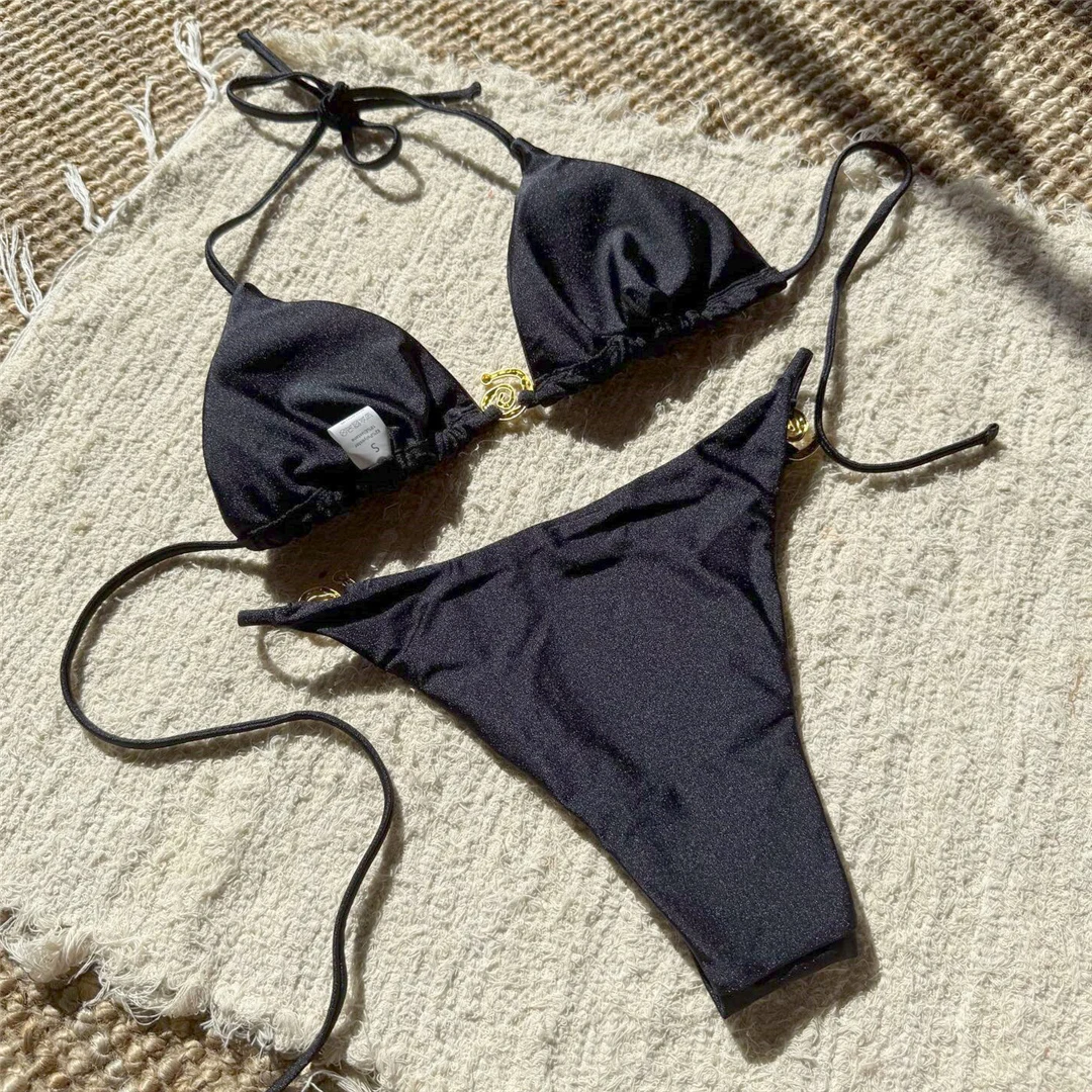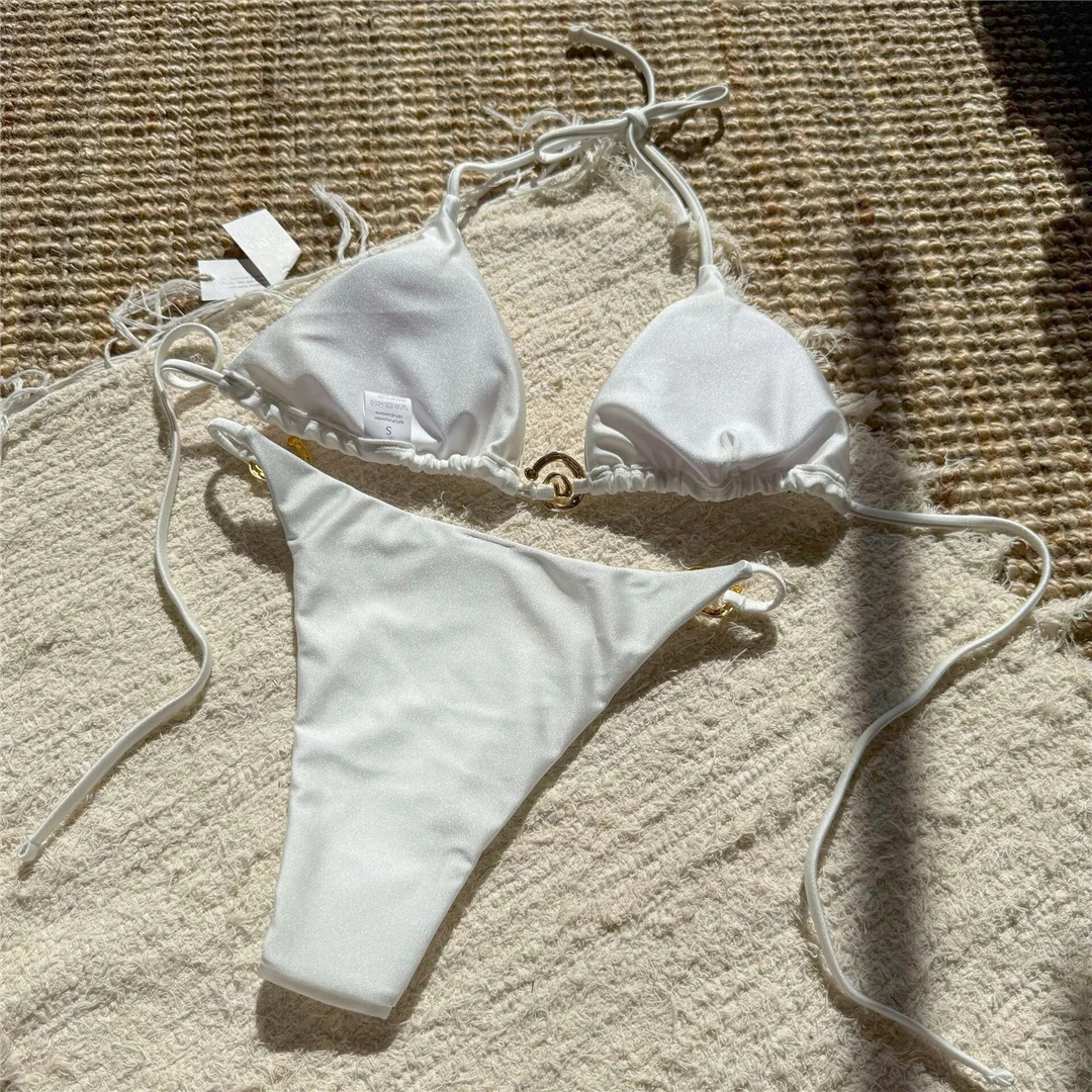 4 Colors New Halter Metal Ring Bikini Women Swimwear Female Swimsuit Two-pieces Bikini set Padded Bather Bathing Suit Swim V6430