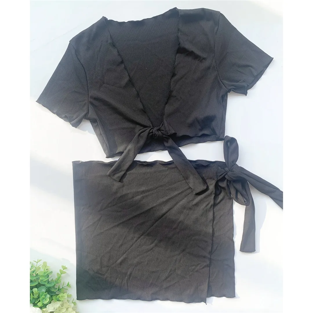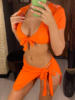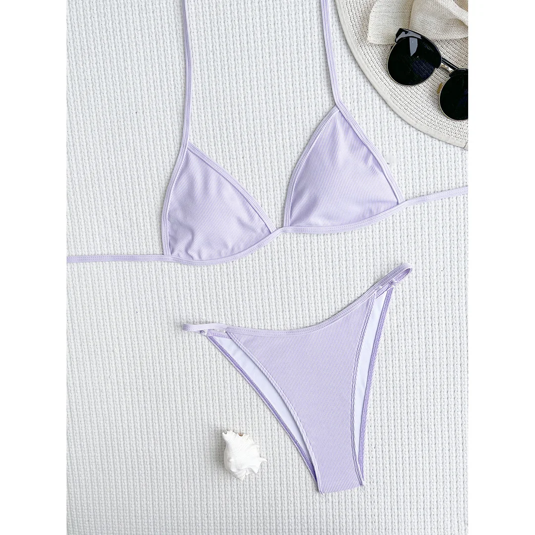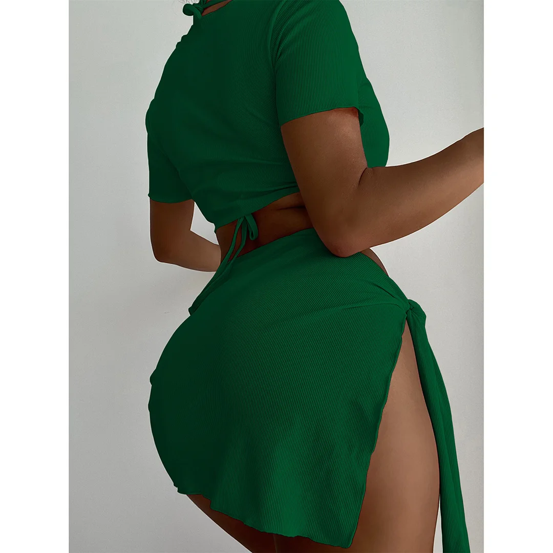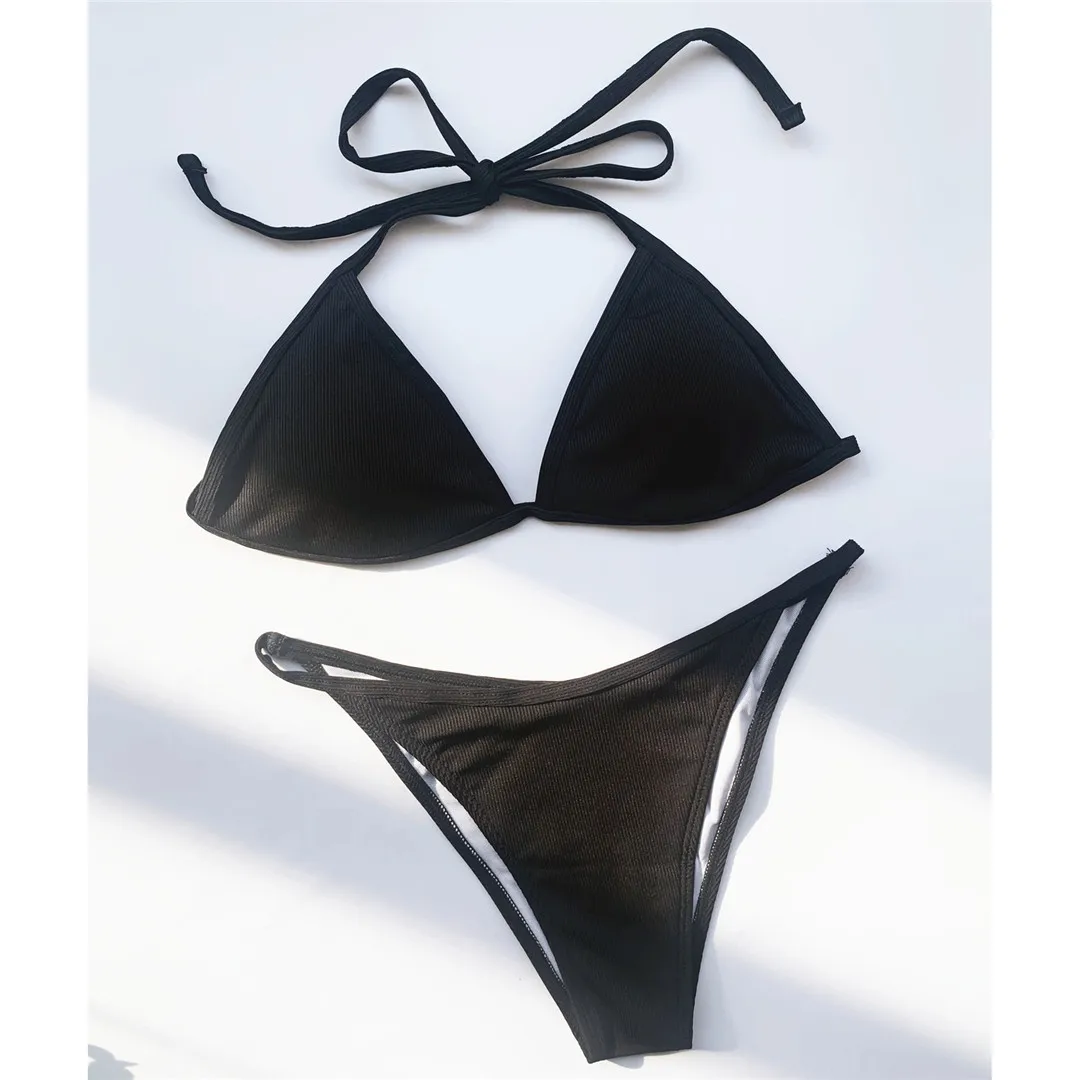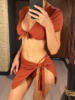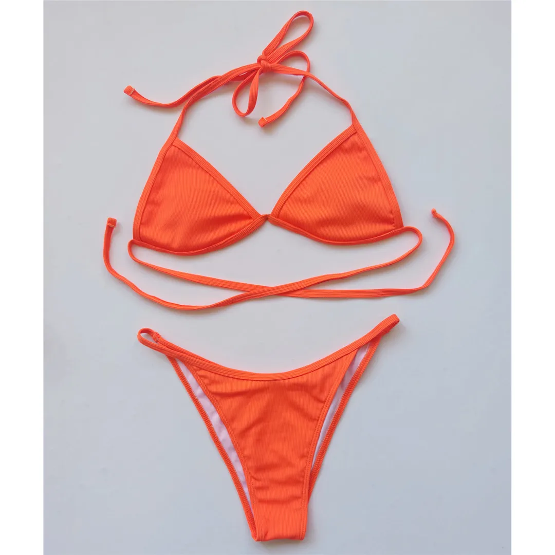 4 PCS Ribbed Halter Bikini Female Swimsuit Women Swimwear Four-pieces Bikini set With Top Sarong Bather Bathing Suit Swim V3152