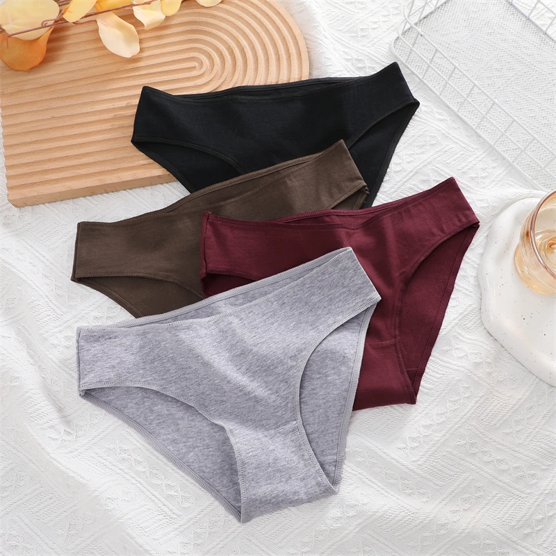 4Pcs Cotton Seamless Underwear Sexy Knitting Underpants Women’s Panties Breathable Solid Brief Female Low-Waist Stretch Lingerie