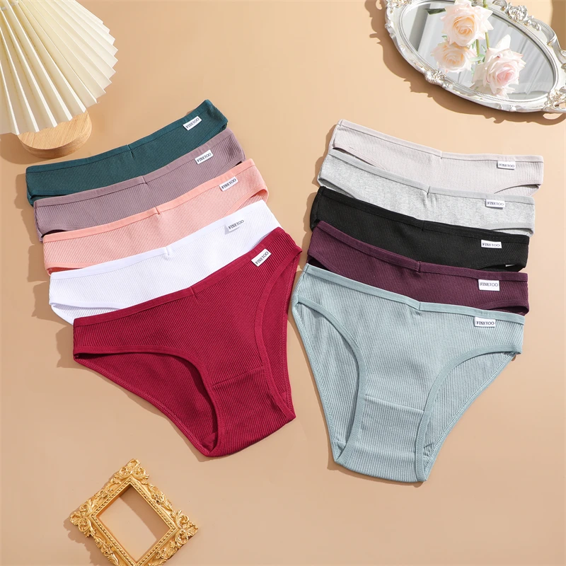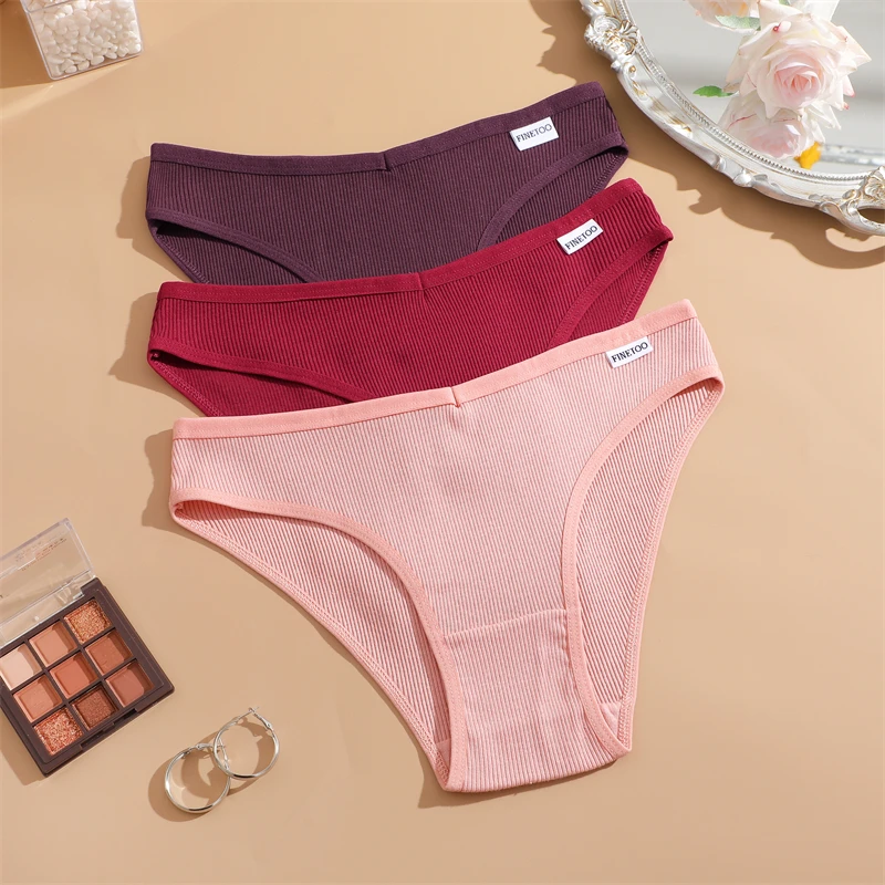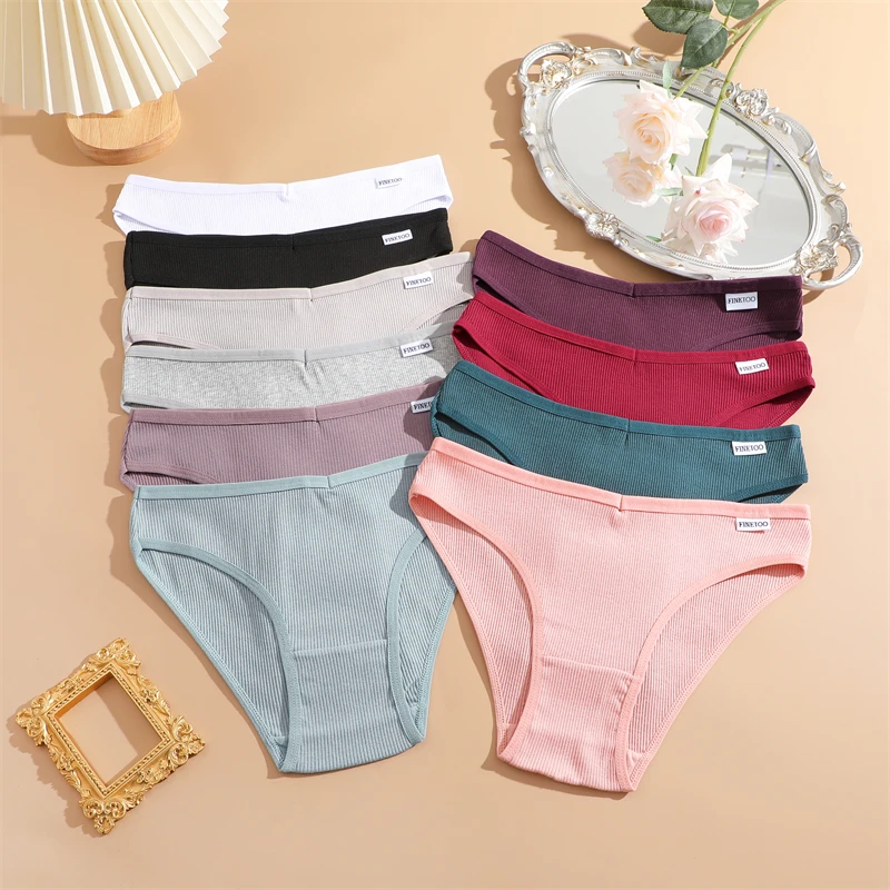 4Pcs Cotton Striped Underwear Women’s V Waist Panties Sexy Breathable Plus Size Briefs Ladies Low Waist Comfort Lingerie M-XXL