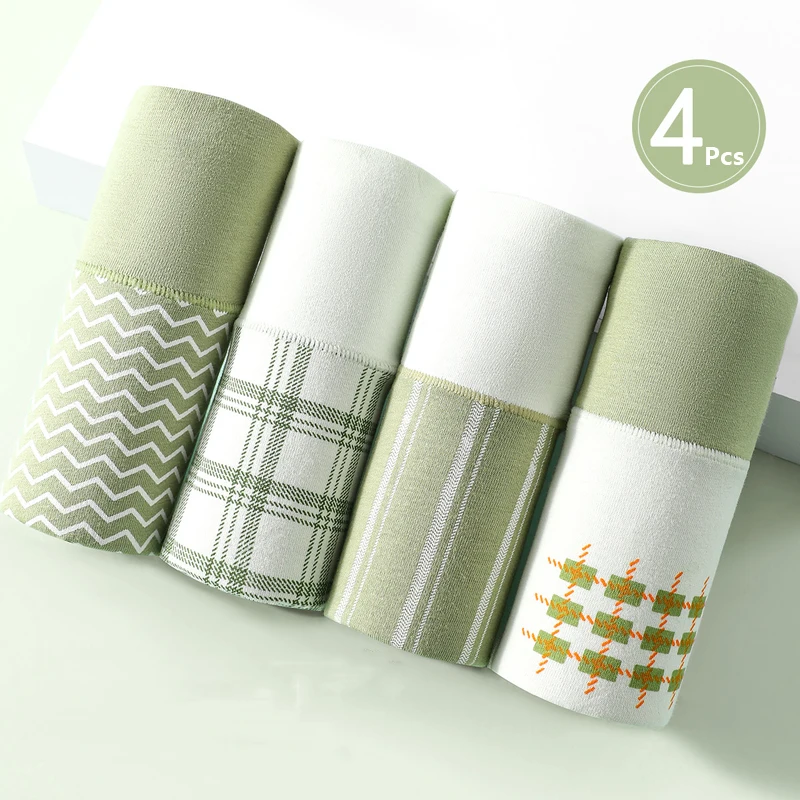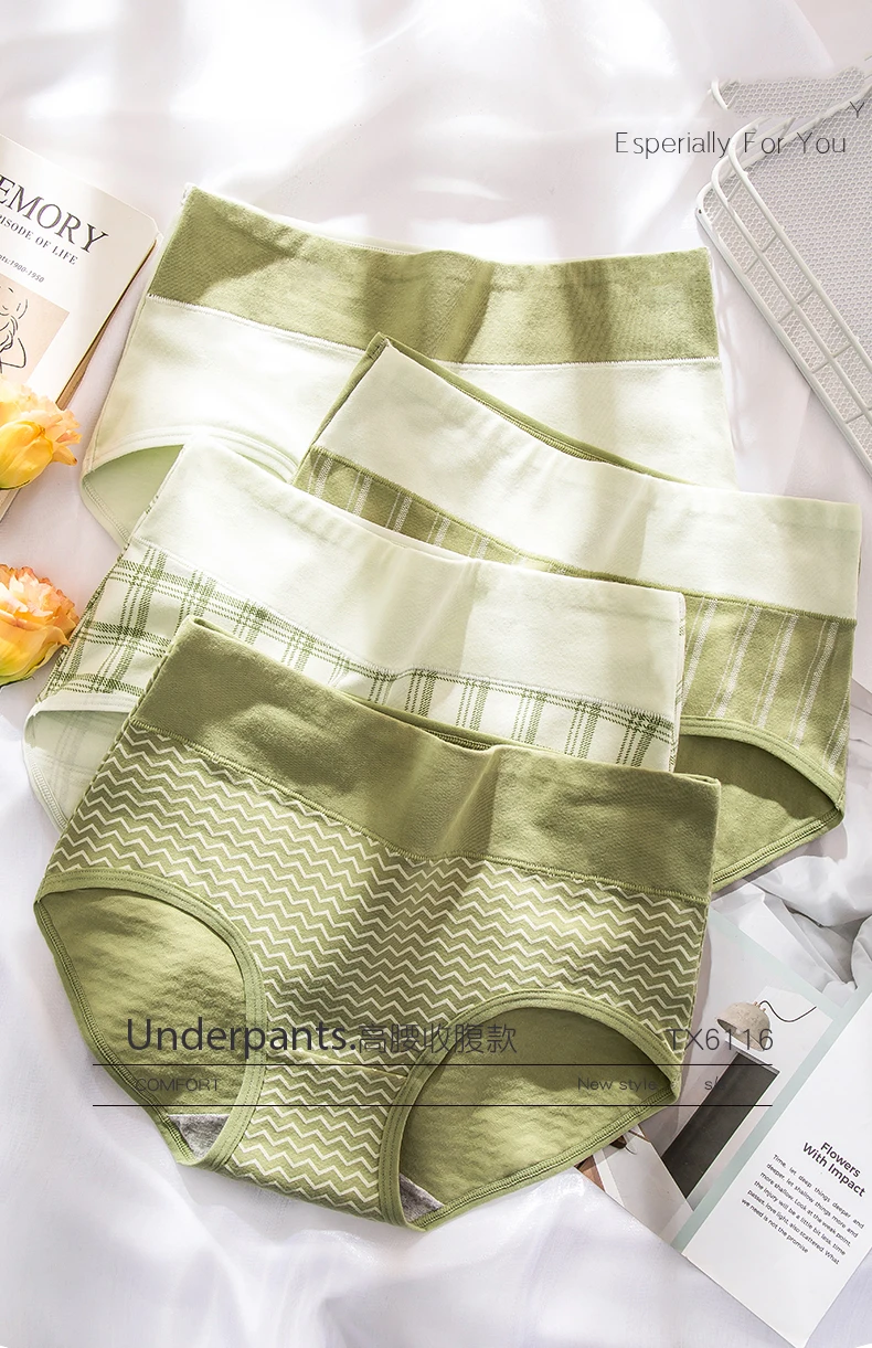 4Pcs Cotton Women Panties High Waist Body Shaper Underwear Print Ladies Briefs Plus Size Sexy Panty Breathable Female Lingerie