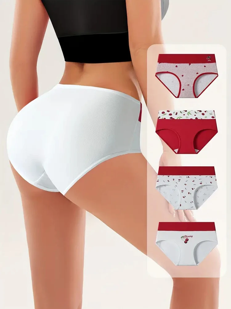 4Pcs Cotton Women Panties High Waist Underwear Print Pantys Ladies Briefs Breathable Plus Size Underpants Sexy Female Lingerie