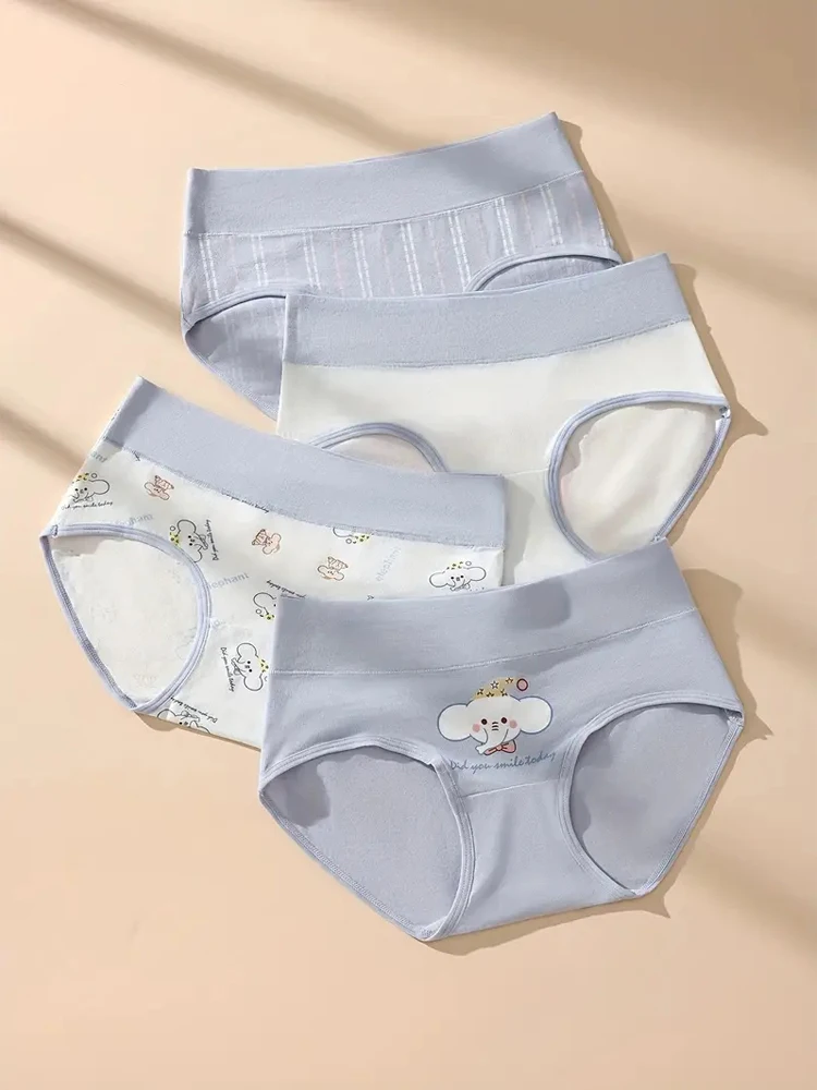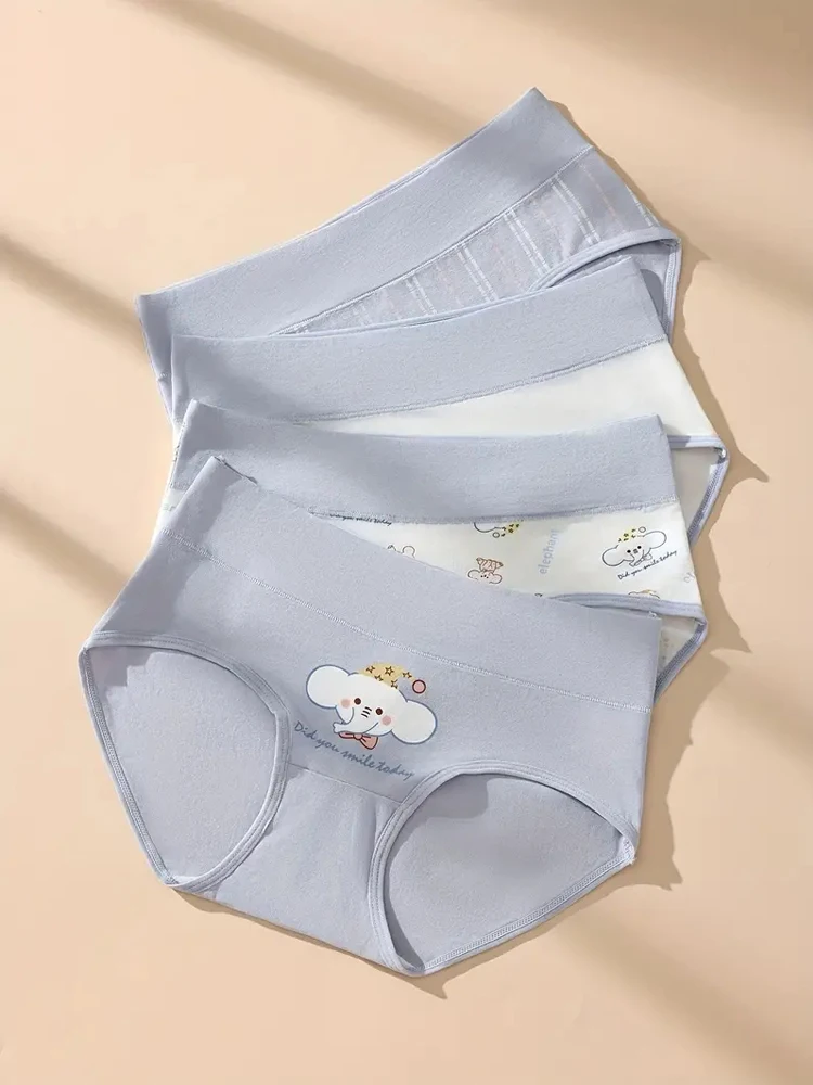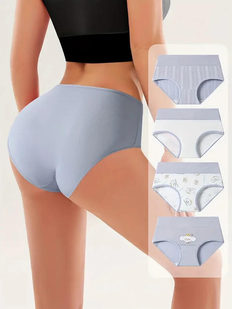 4PCS High Waist Women Panties Shaper Underwear Breathable Cotton Briefs Print Grils Panty Plus Size Sexy M-4XL Female Lingerie