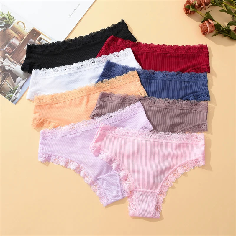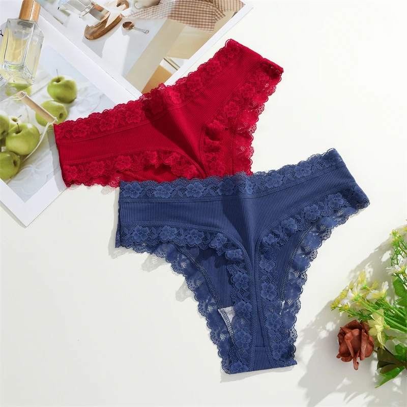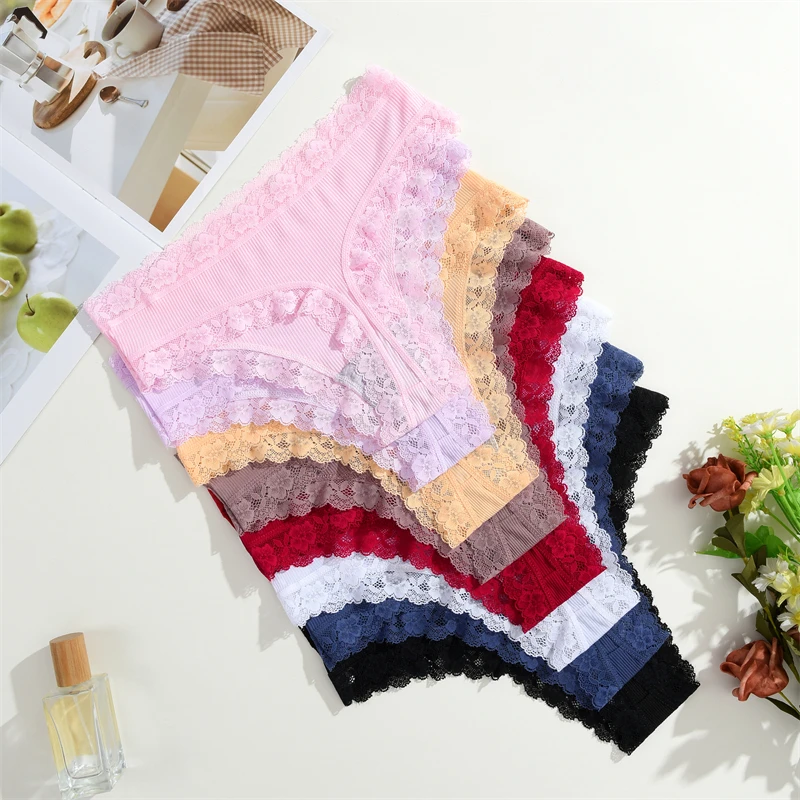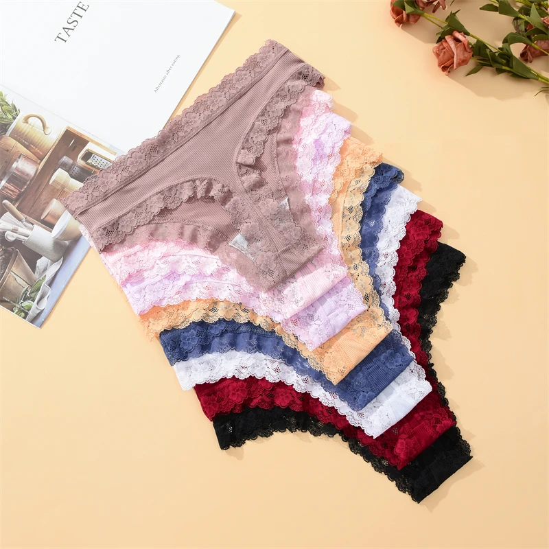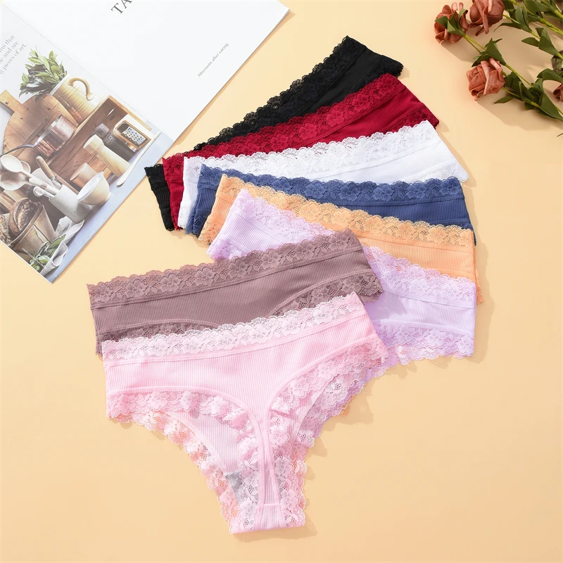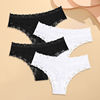 4Pcs/Set Lace Floral Panties Women G-string Sexy Striped Breathable Thongs Female Plus Size Comfortable Underpants Soft Lingerie