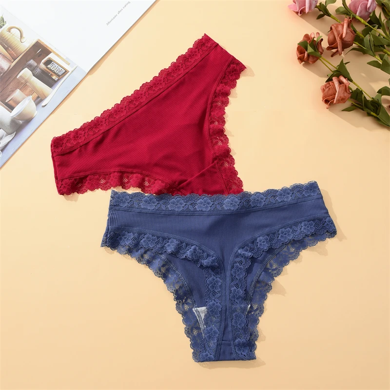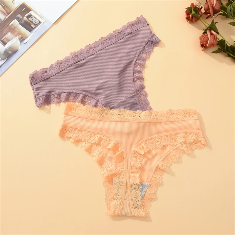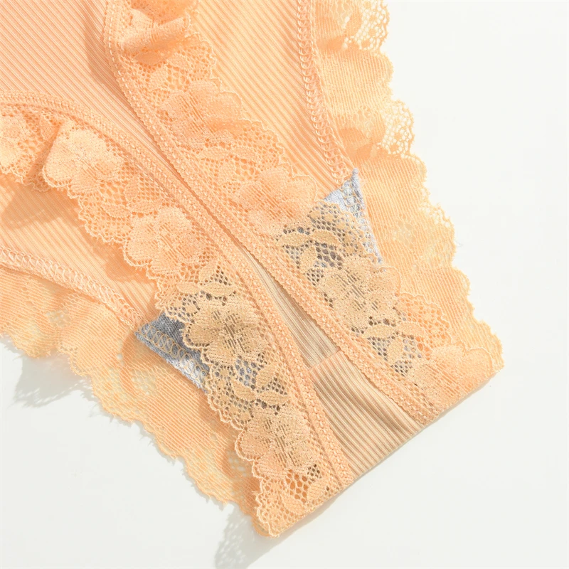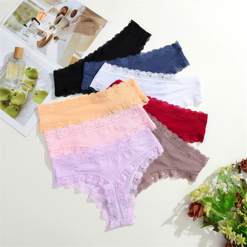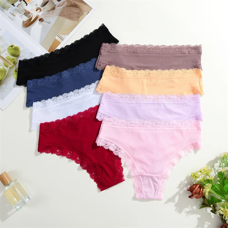 4Pcs/Set Lace Floral Panties Women G-string Sexy Striped Breathable Thongs Female Plus Size Comfortable Underpants Soft Lingerie