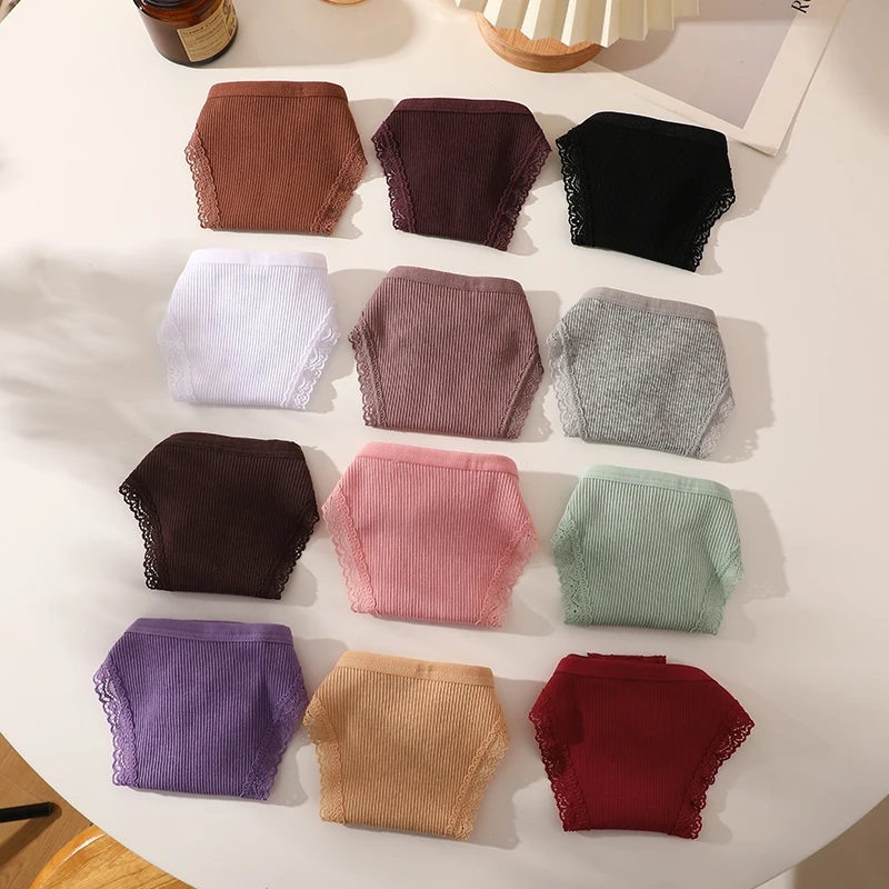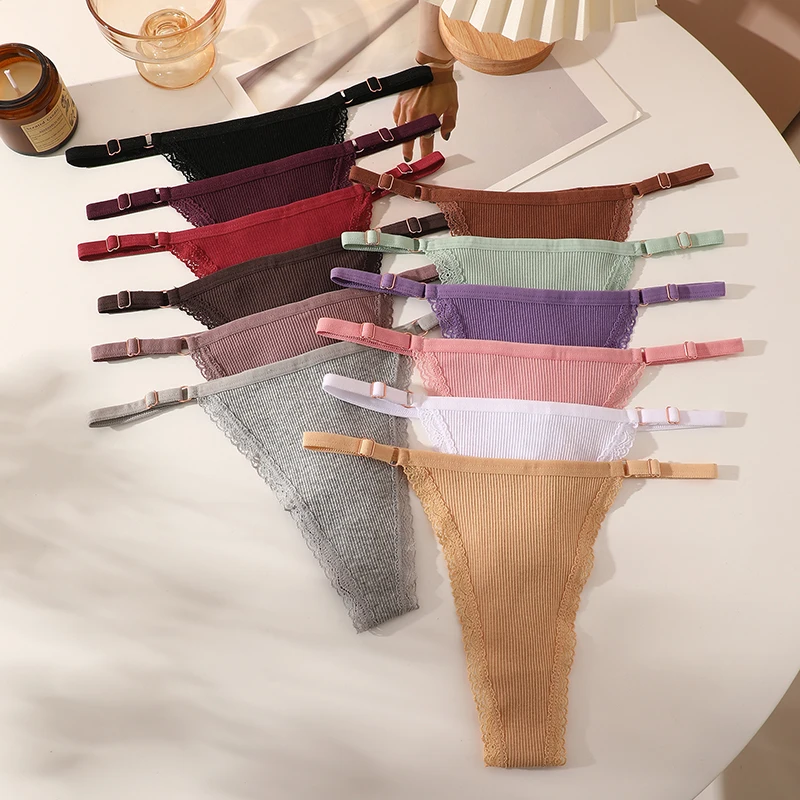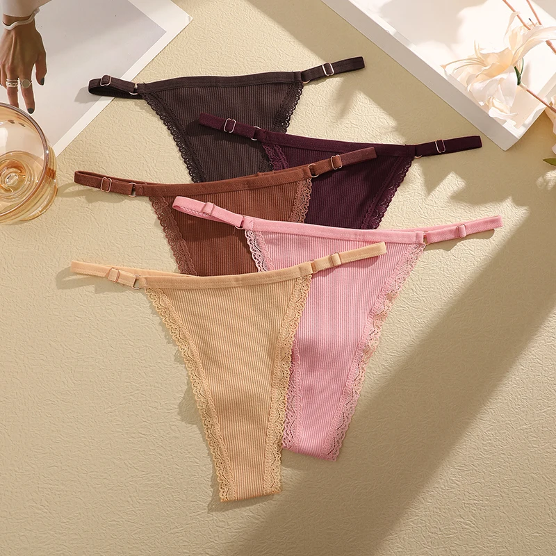 4Pcs/SET Women’s Cotton Lace Underwear Sexy Adjustable Belt Panties Female Striped Low Waist Thongs Breathable G-string Lingerie