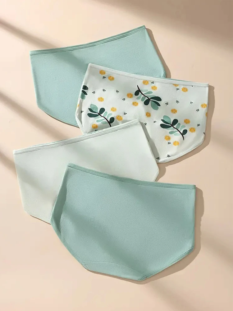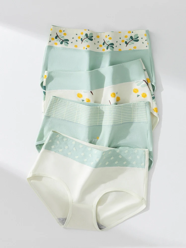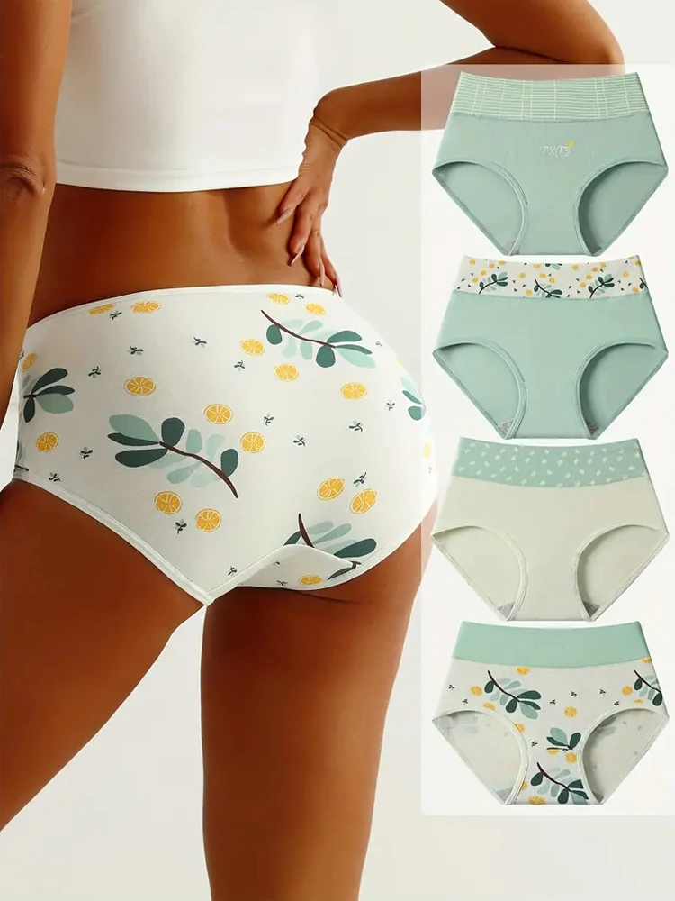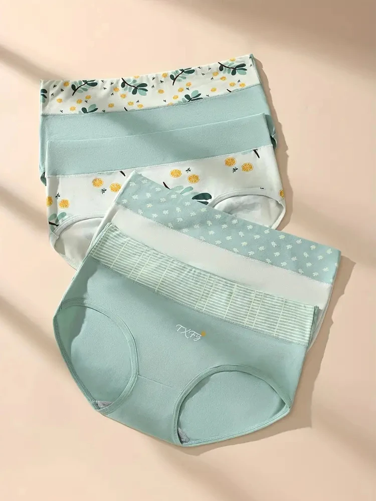 4Pcs/Set Women’s Cotton Panties High Waist Underwear Print Ladies Briefs Slim Underpants Breathable Plus Size Female Lingerie