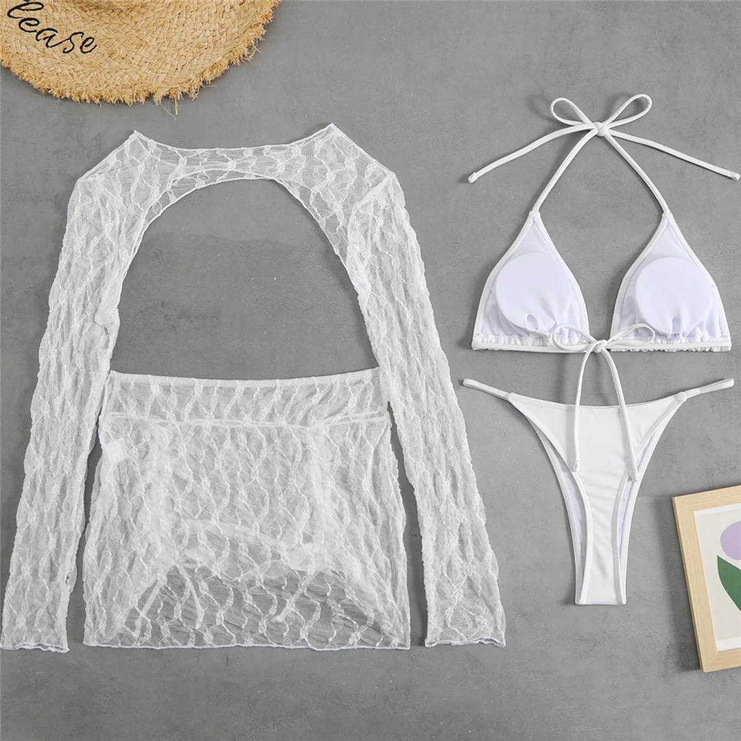 4PCS With Skirt Long Sleeve High Cut Bikini Female Swimsuit Women Swimwear Four-pieces Bikini set Bather Bathing Suit Swim V6341