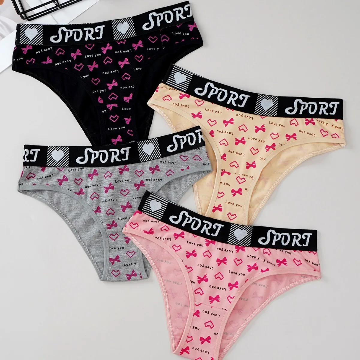 4PCS Women Panties Cotton Crotch Briefs String Femme Sexy Women’s Intimates Female Femme Lingerie Elastic Breathable Underwears
