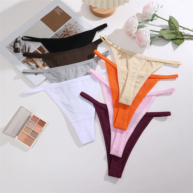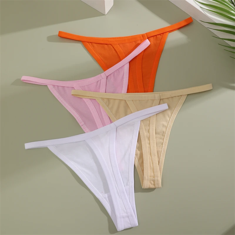 4Pcs Women’s Cotton Thongs Sexy Thin Waist Underwear Traceless Low Waist G-string Sports T-Back Female Breathable Panties S-XL