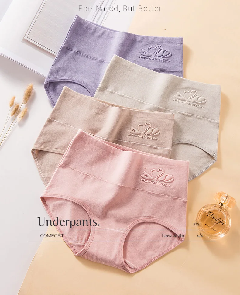 4Pcs Women’s Panties High Waist Underwear Plus Size Female Lingerie Breathable Cotton Briefs Grils Underpants Sexy Ladies Panty