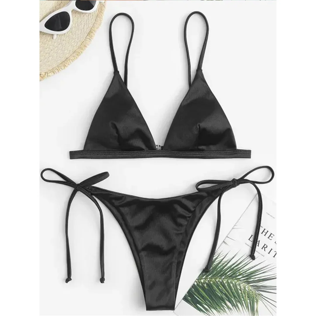 5 Colors Satin High Leg Cut Brazilian Bikini Women Swimwear Female Swimsuit Two-pieces Bikini set Bather Bathing Suit Swim V4964