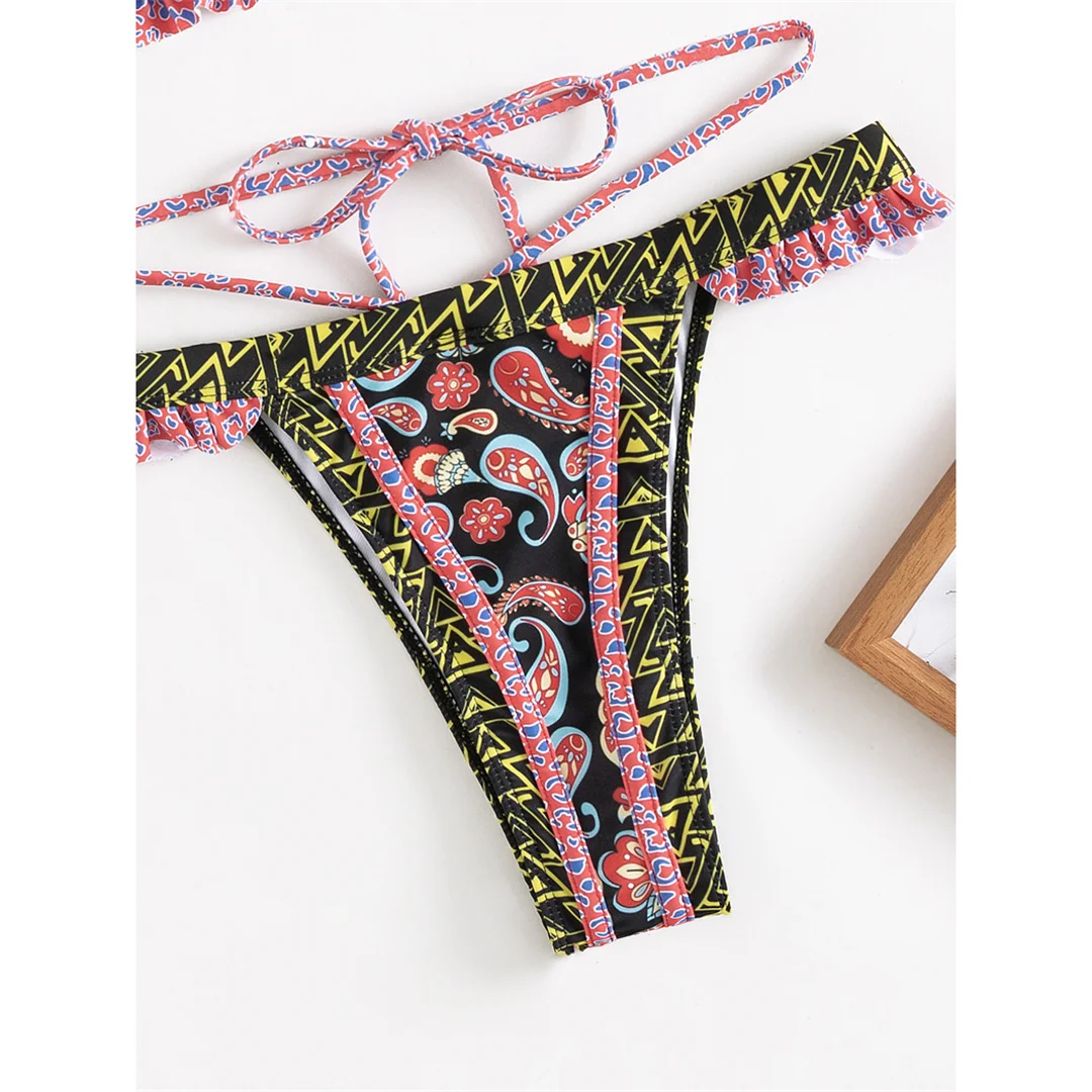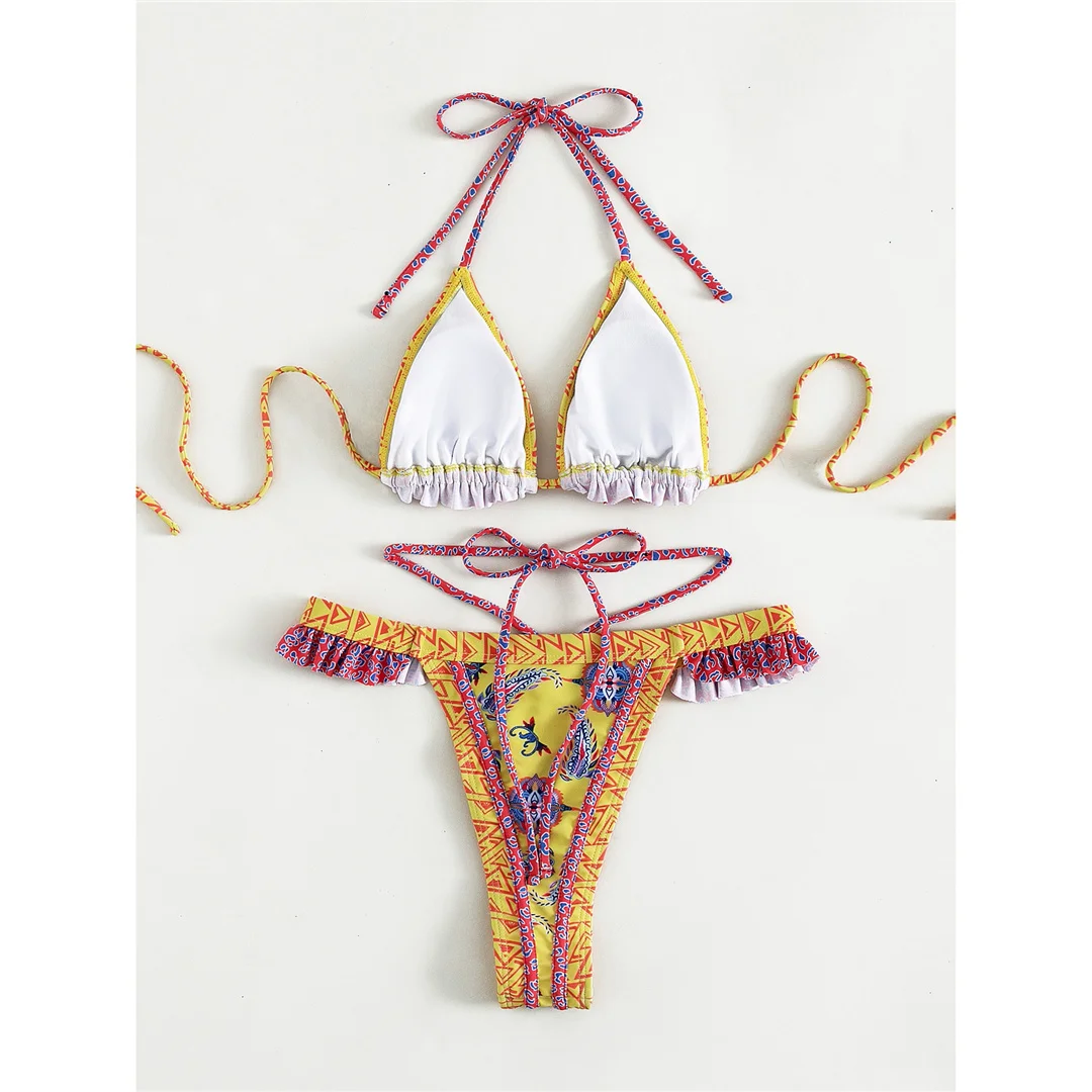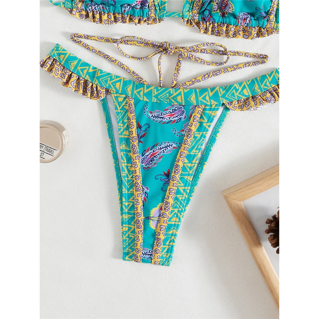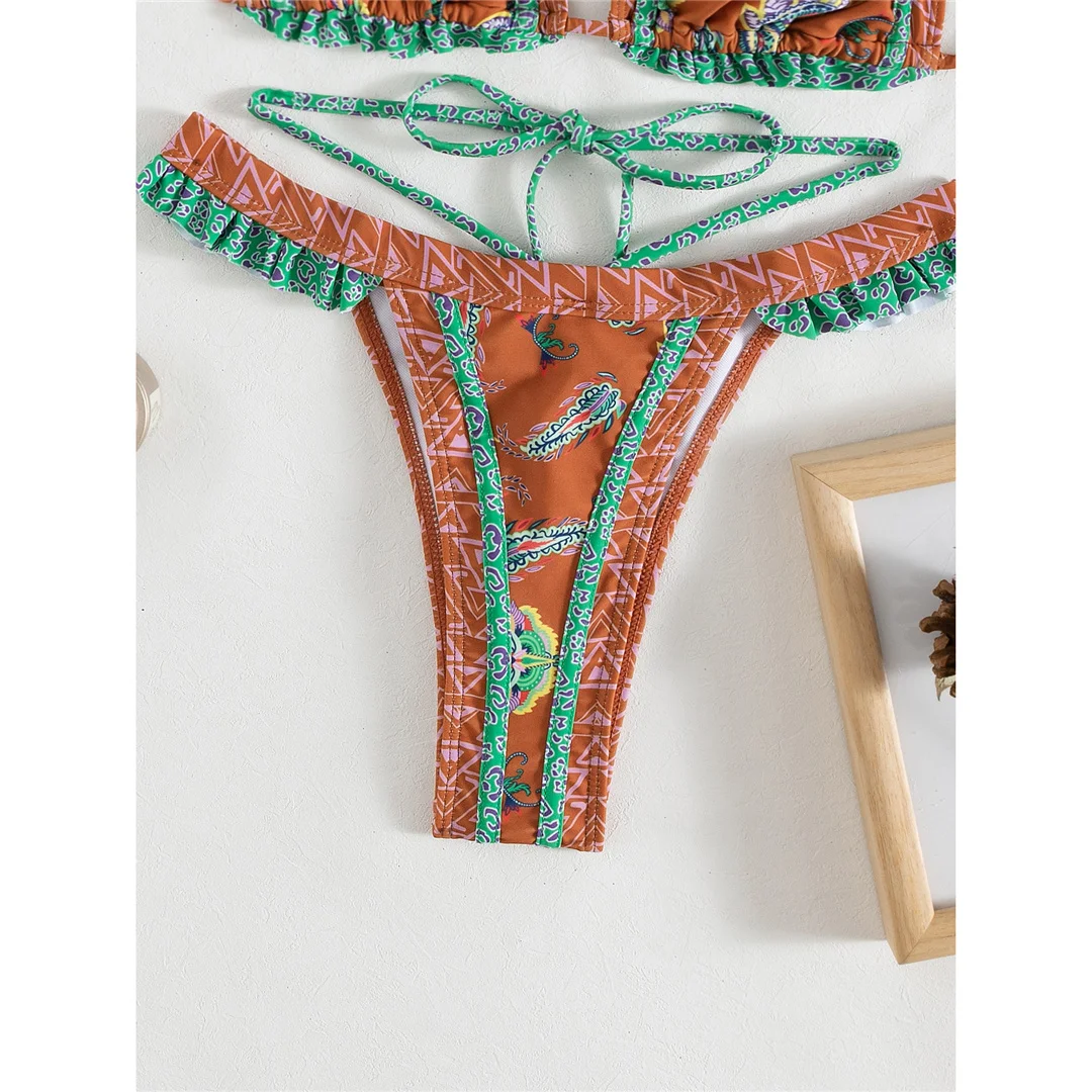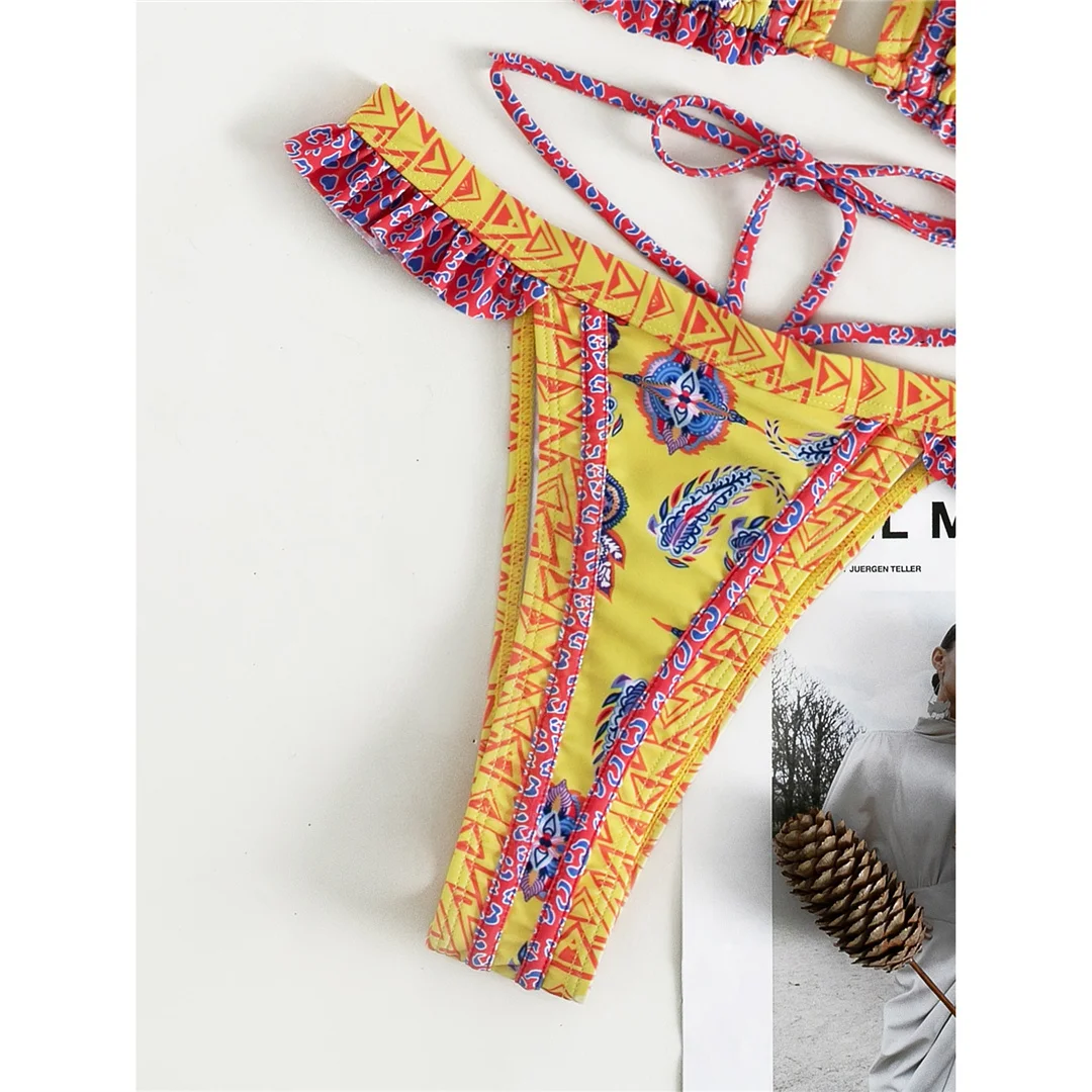 5 Colors Sexy Printed Halter Frilled Bikini Women Swimwear Female Swimsuit Two-pieces Bikini set Bather Bathing Suit Swim V4651