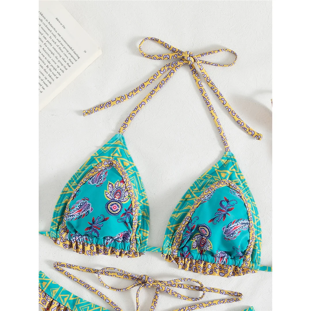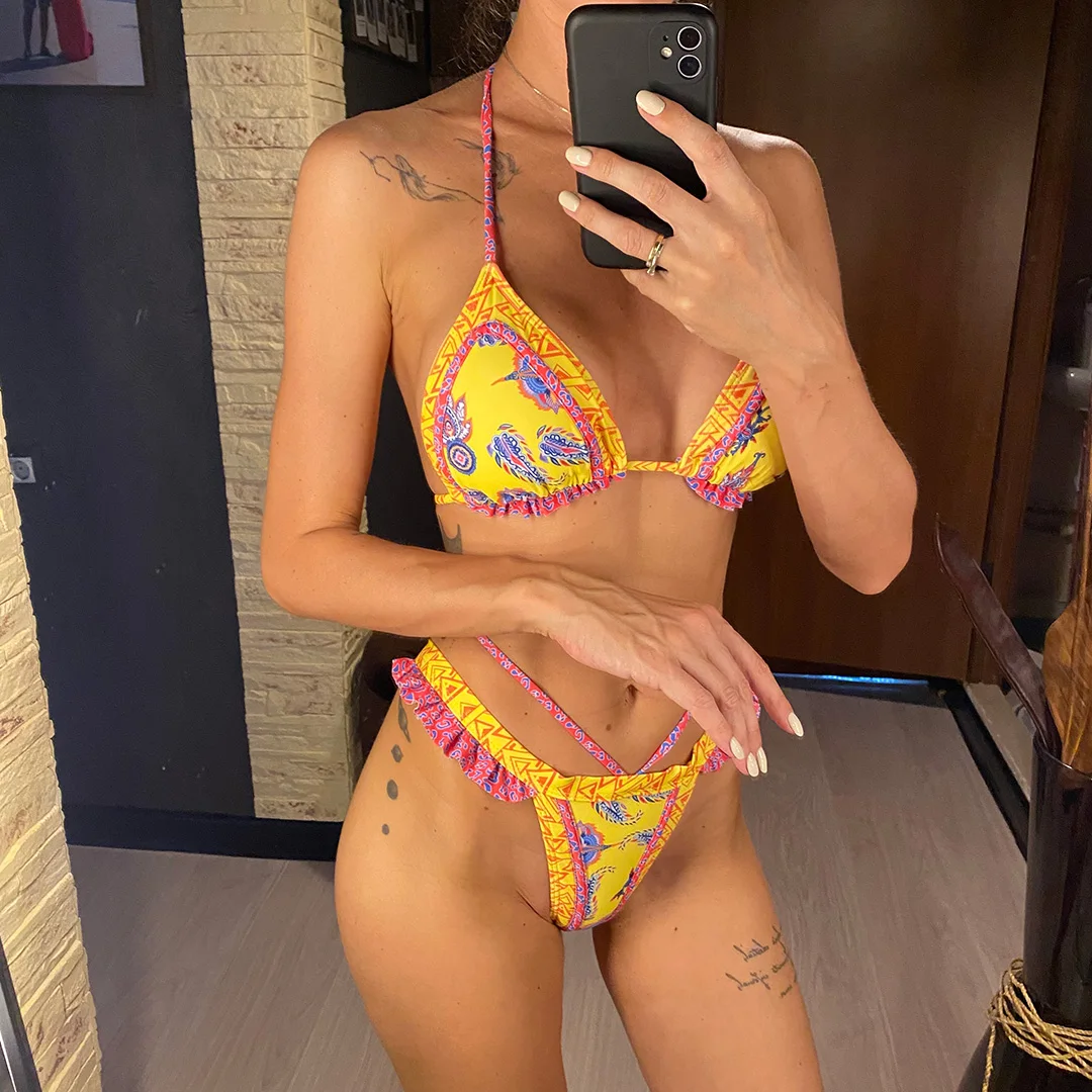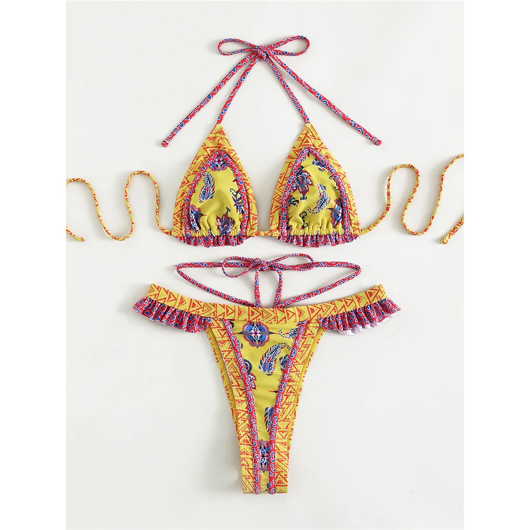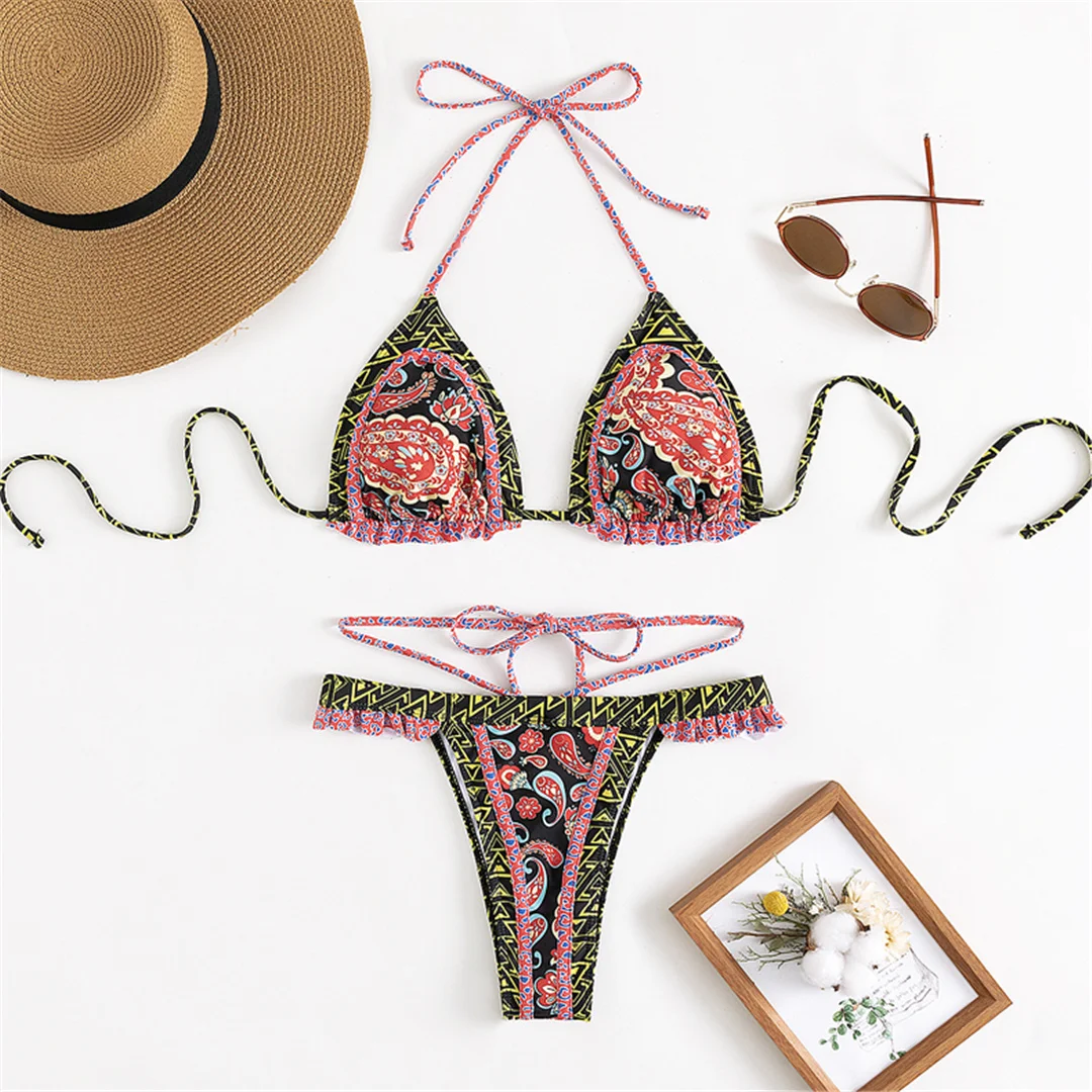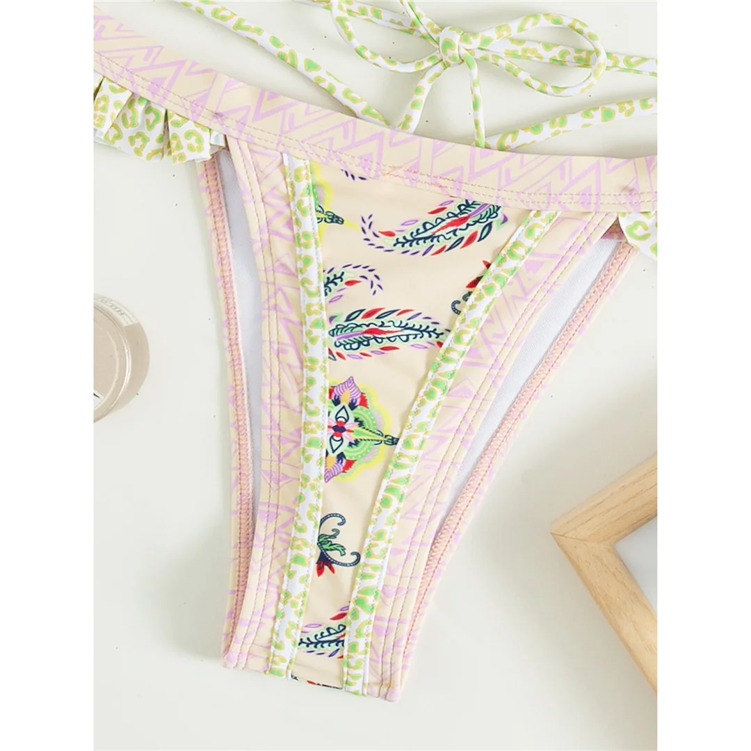 5 Colors Sexy Printed Halter Frilled Bikini Women Swimwear Female Swimsuit Two-pieces Bikini set Bather Bathing Suit Swim V4651