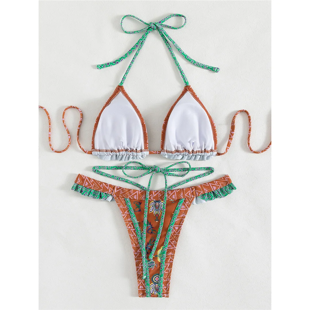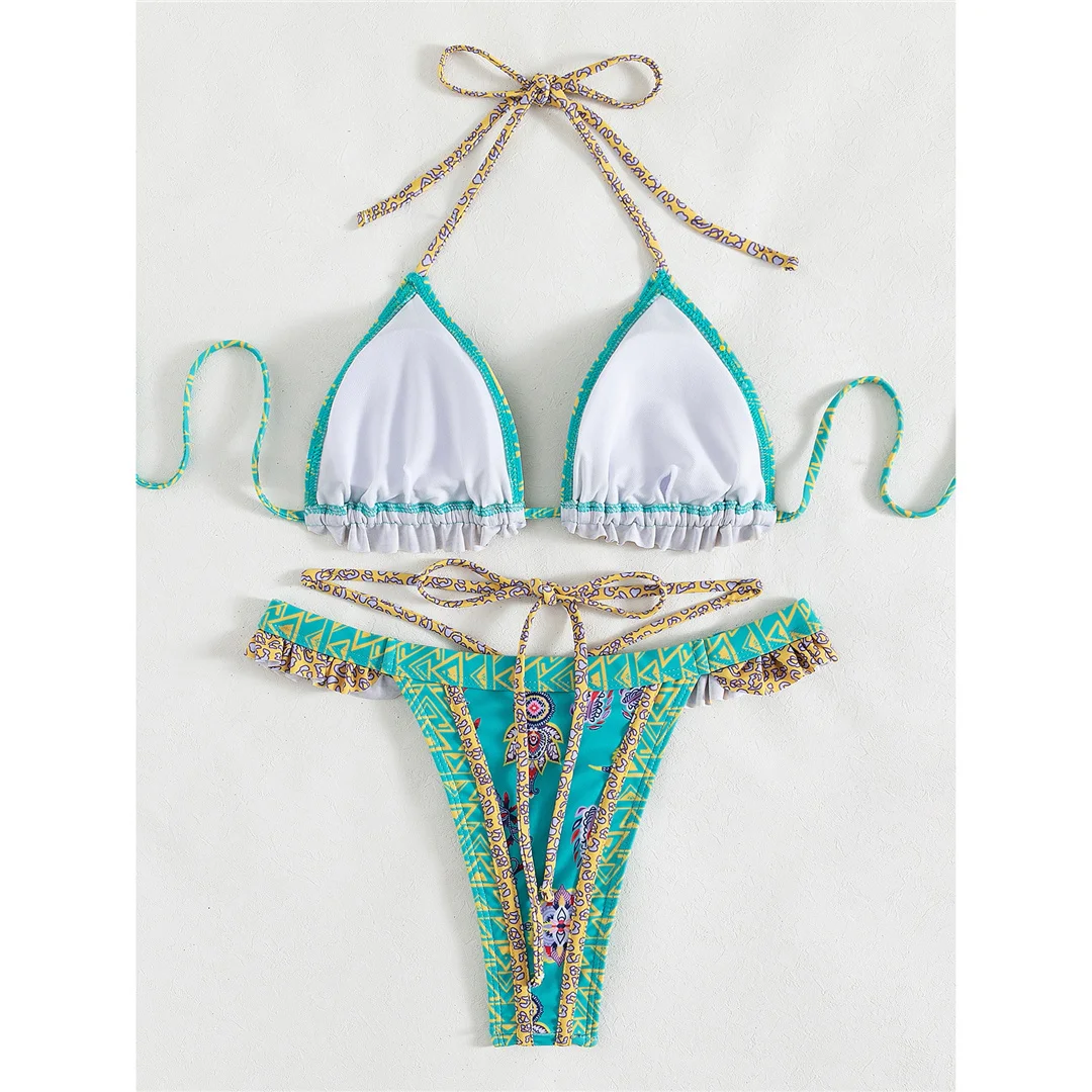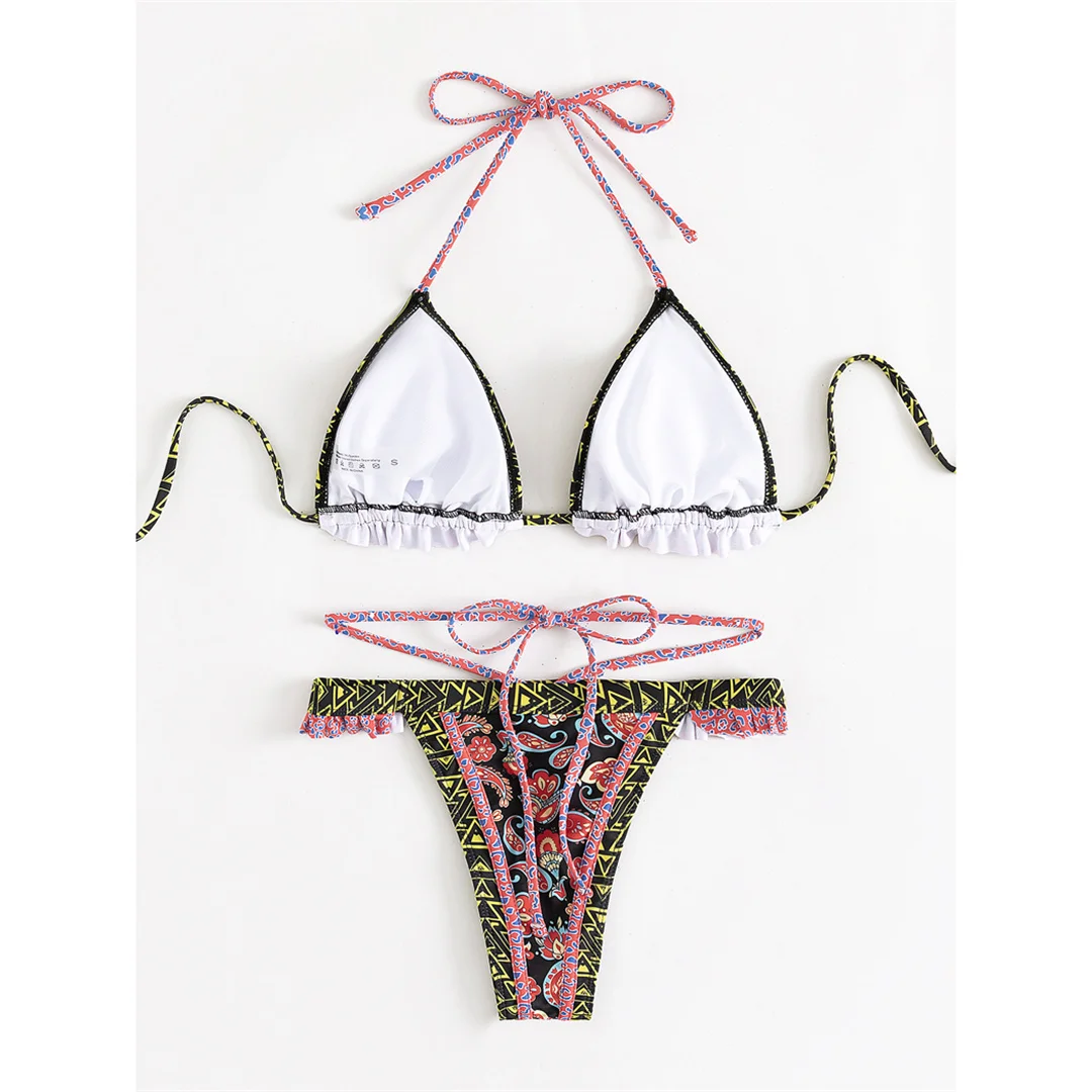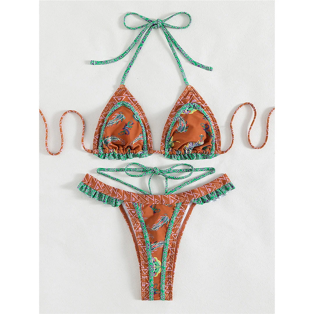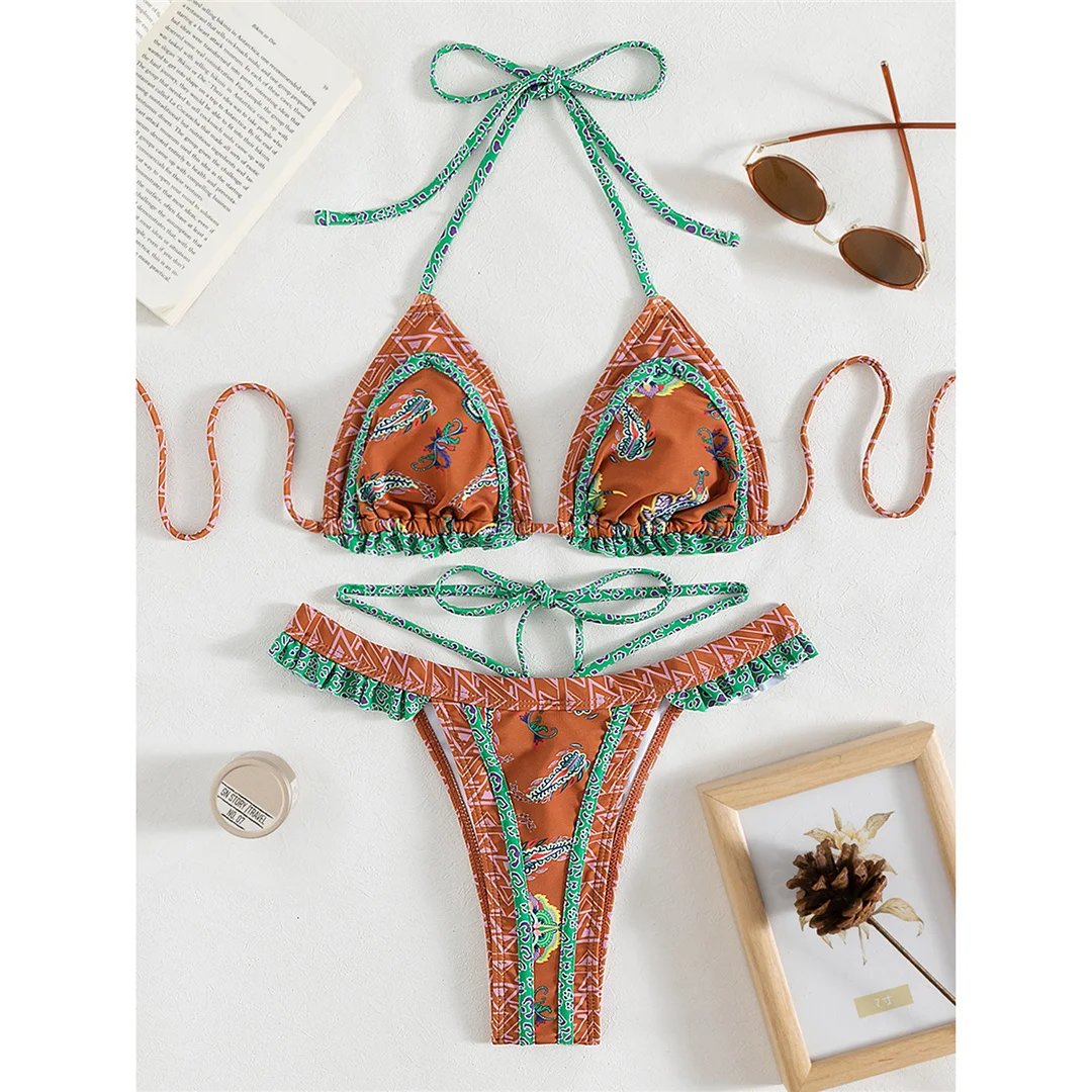 5 Colors Sexy Printed Halter Frilled Bikini Women Swimwear Female Swimsuit Two-pieces Bikini set Bather Bathing Suit Swim V4651