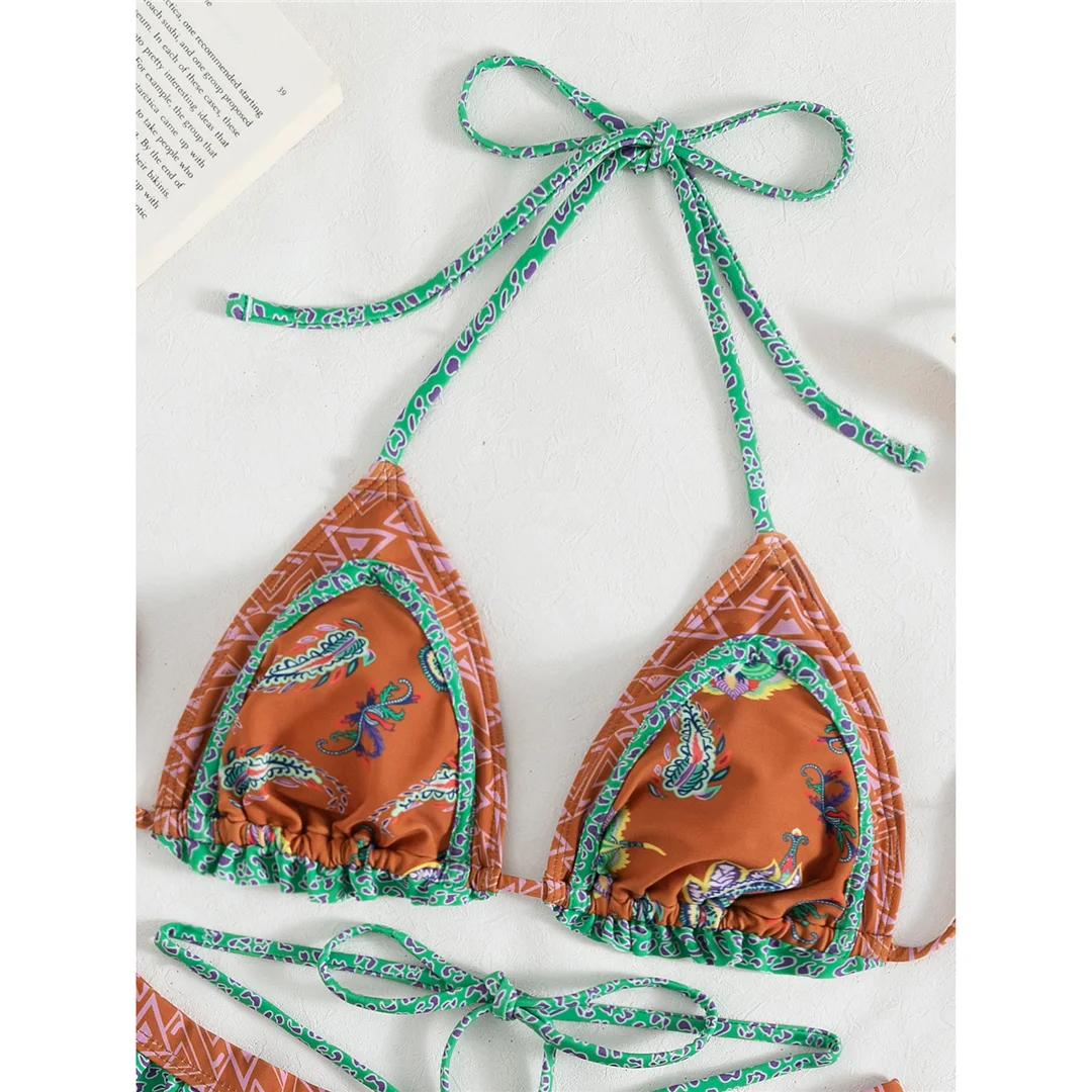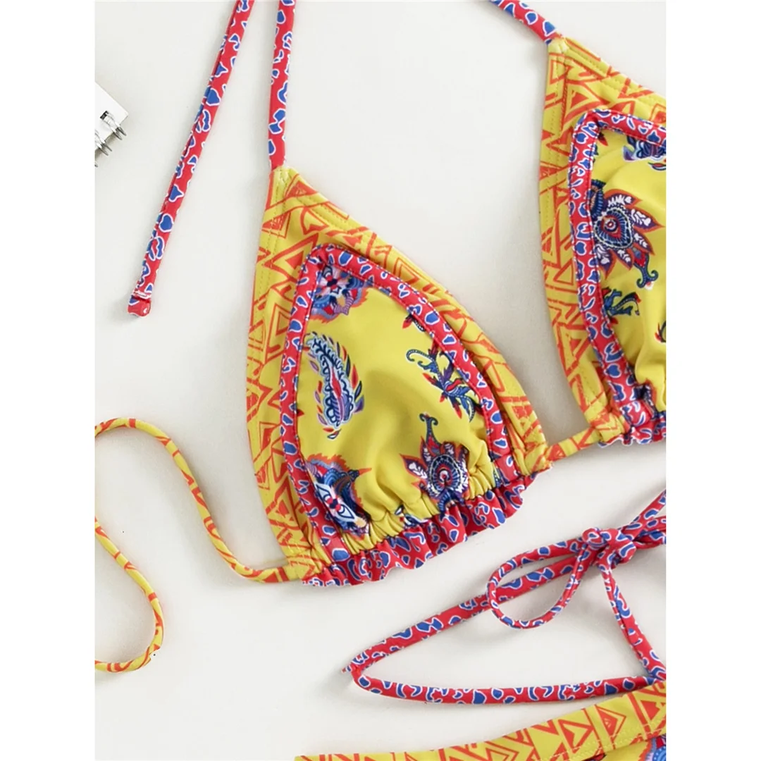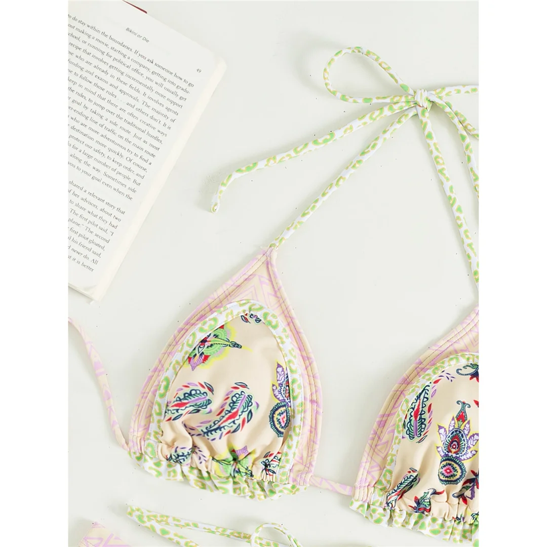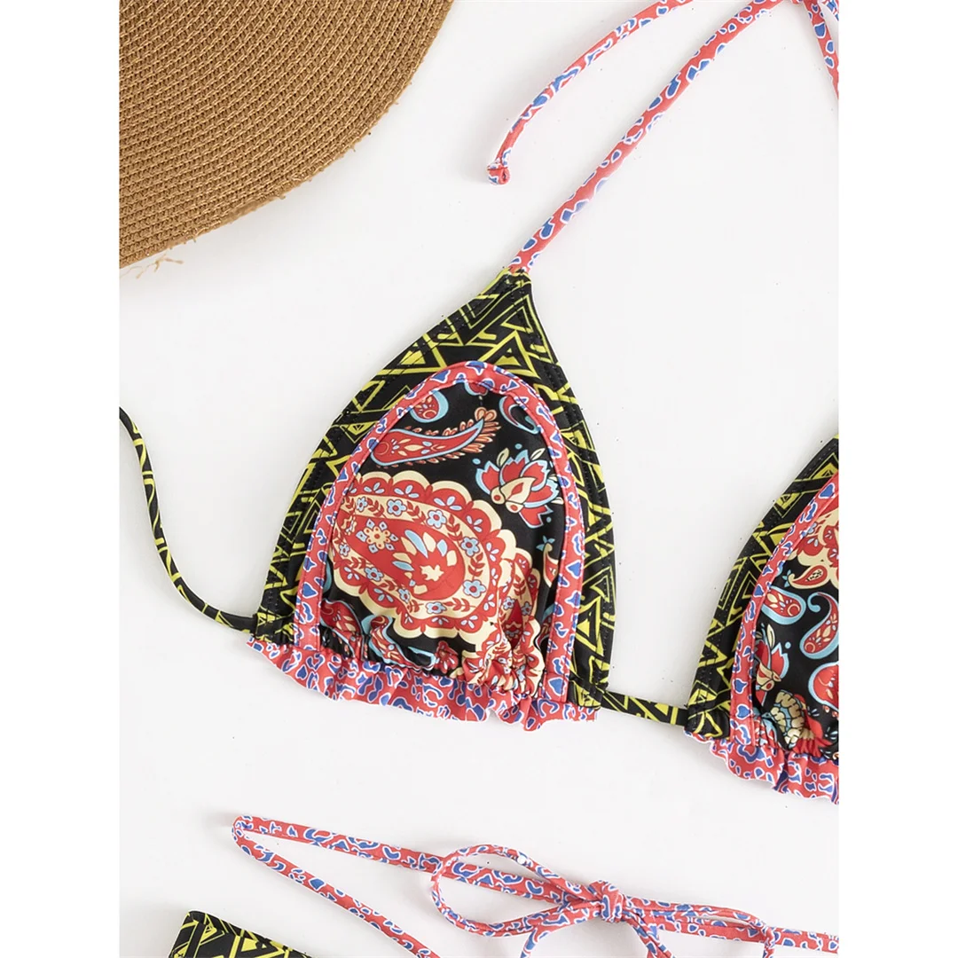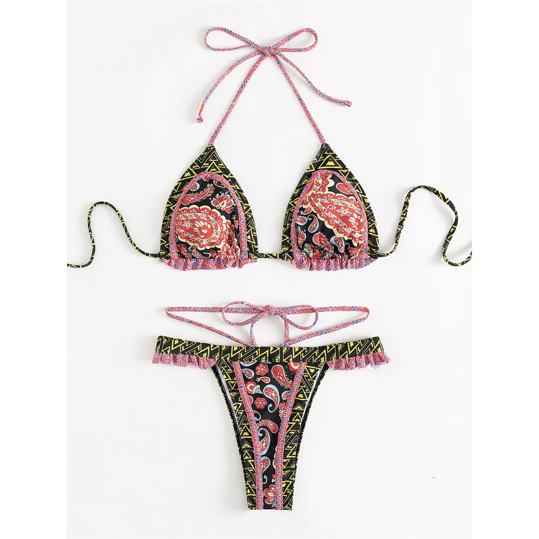 5 Colors Sexy Printed Halter Frilled Bikini Women Swimwear Female Swimsuit Two-pieces Bikini set Bather Bathing Suit Swim V4651
