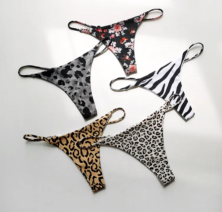5Pcs Cotton G String Leopard Women Panties Flower Sexy Briefs Thong Low Waist T-back Underwear Seamless Lingerie Size S-XXL