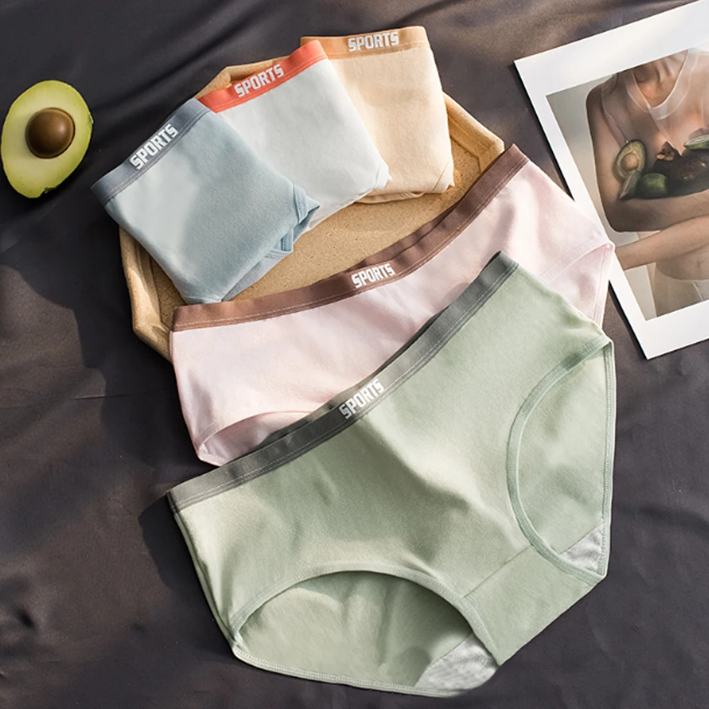 5PCS Cotton Women’s Panties Mid Waist No Trace Triangle Panties Teenage Panties Cotton Panties Women