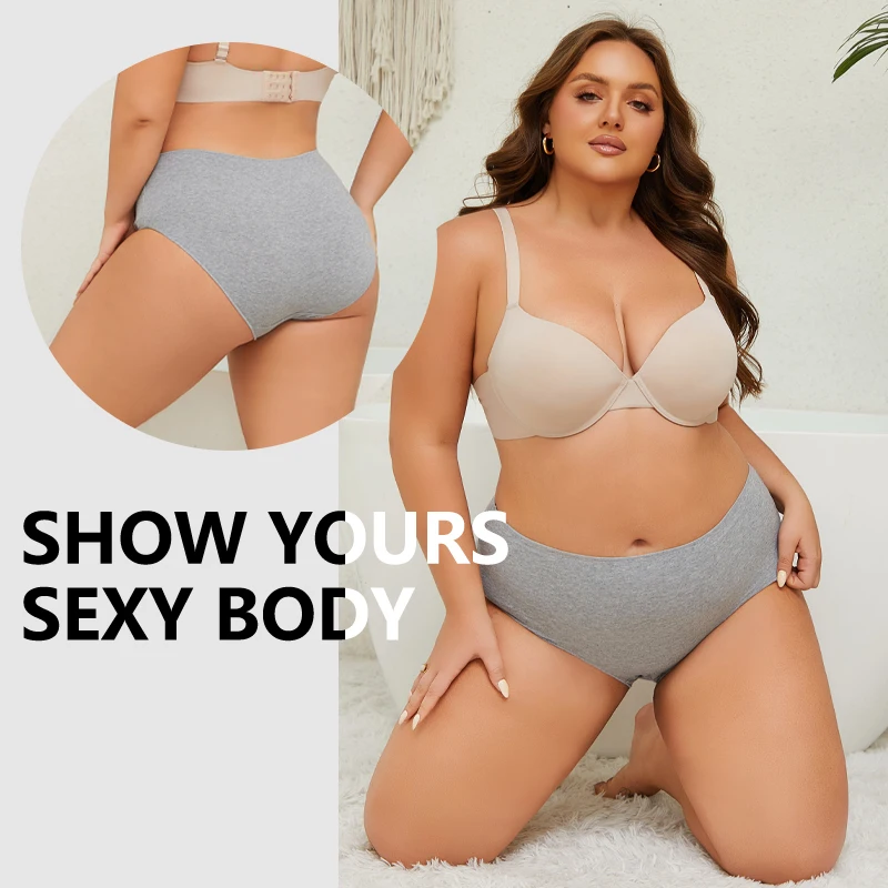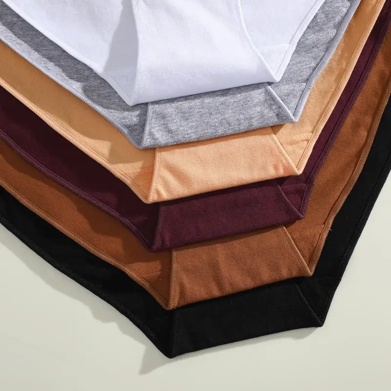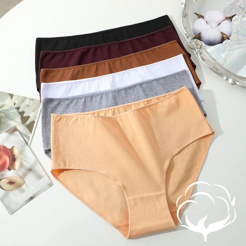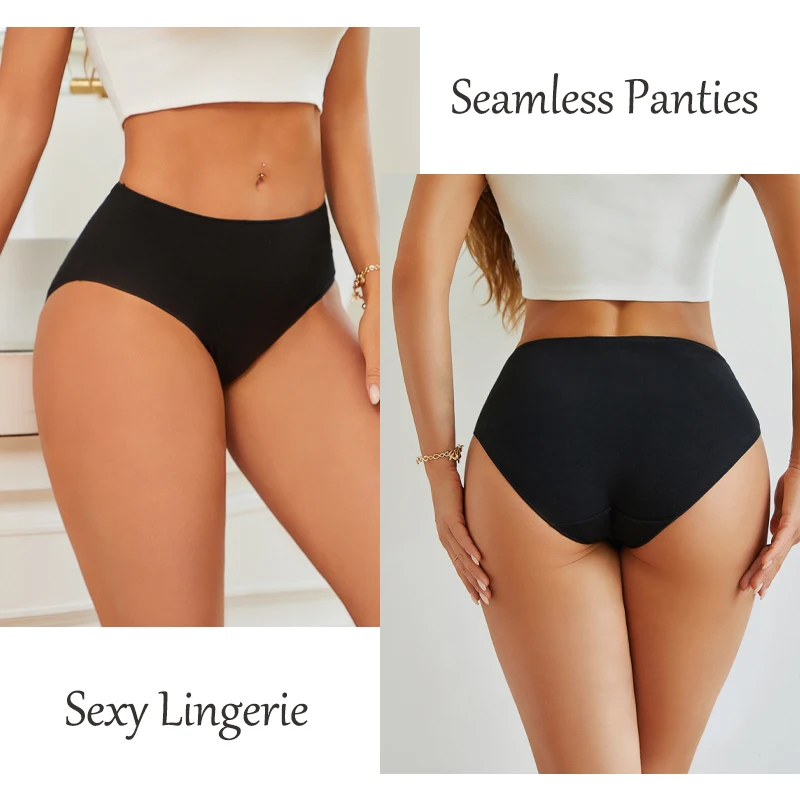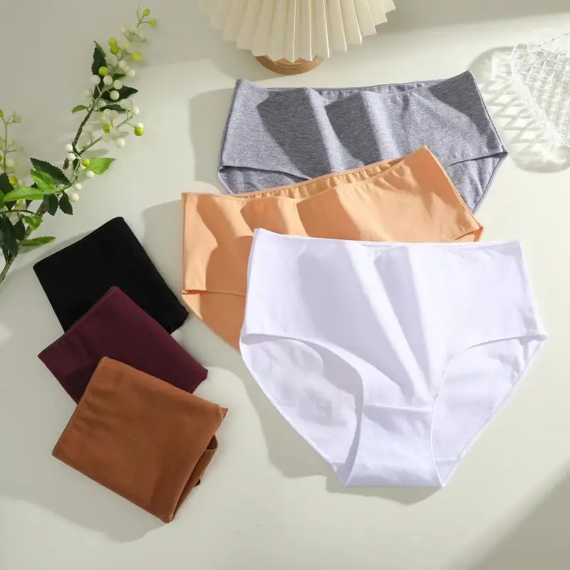 5PCS Seamless Cotton Fabric Underwear For Women High Waist Plus Size Elastic Panties Female Solid Color Comfortable Lingerie New