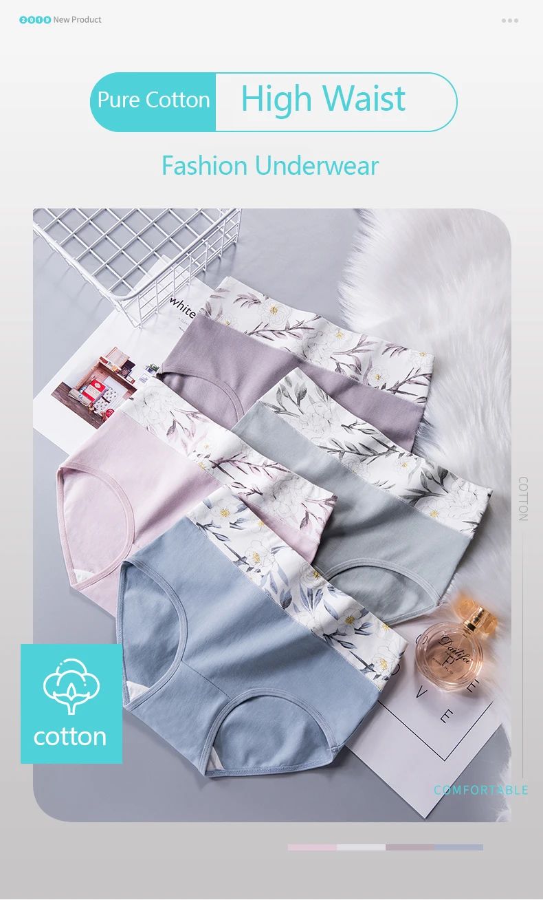 5Pcs/Set Cotton Women Panties High Waist Body Shaper Underwear Cute Print Girls Briefs Sexy Panty Plus Size Slim Ladies Lingerie