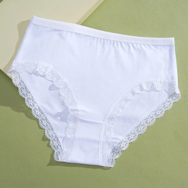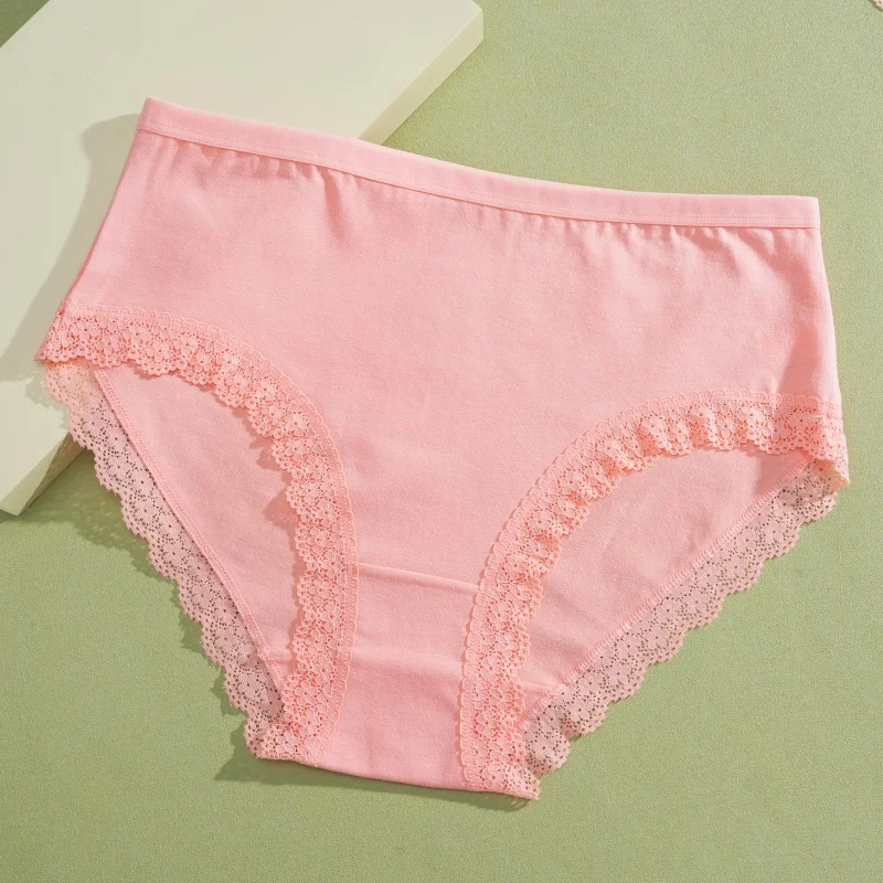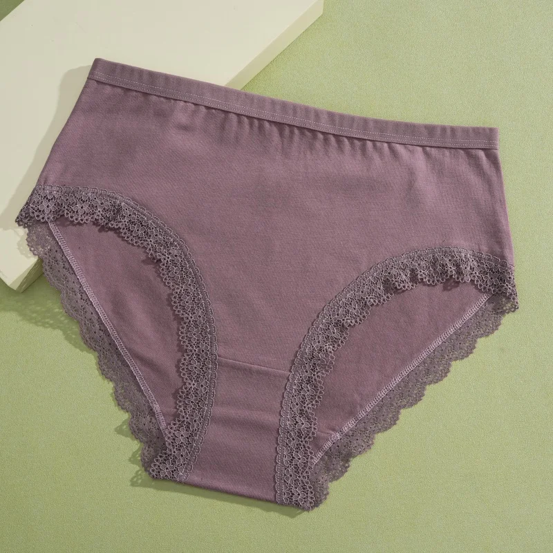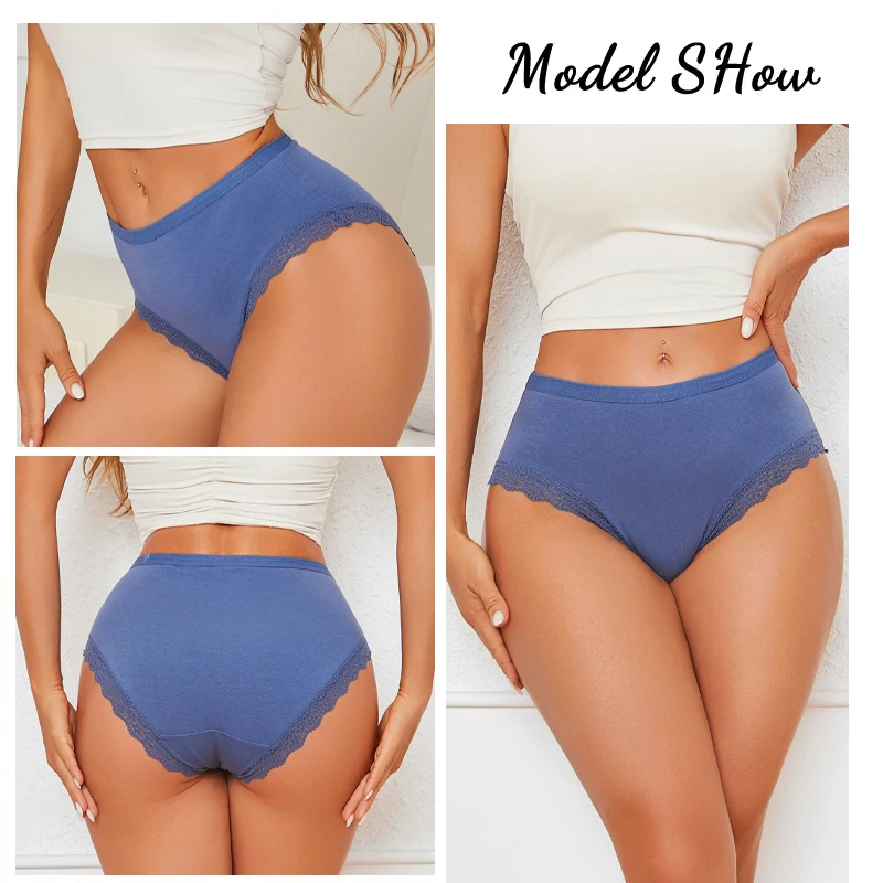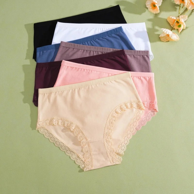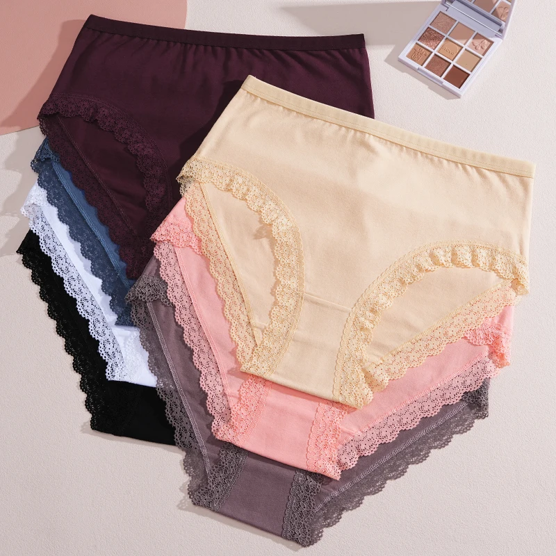 5Pcs/Set Women’s Sexy Lace Cotton Fabric Panties Seamless Solid Color High Waist Briefs Fashion High Quality Plus Size Lingerie
