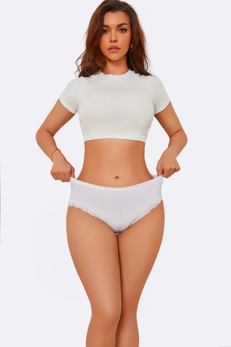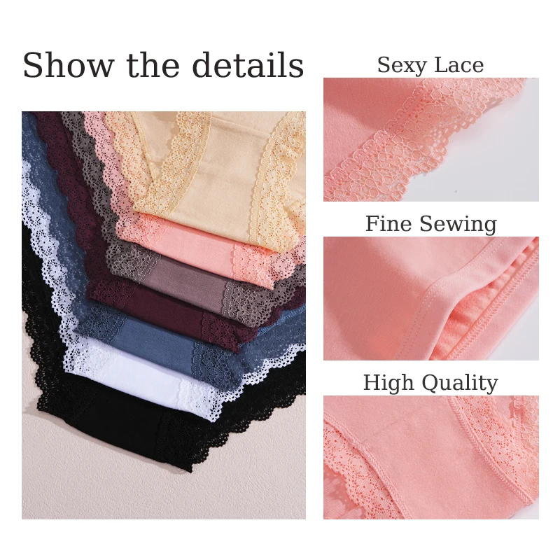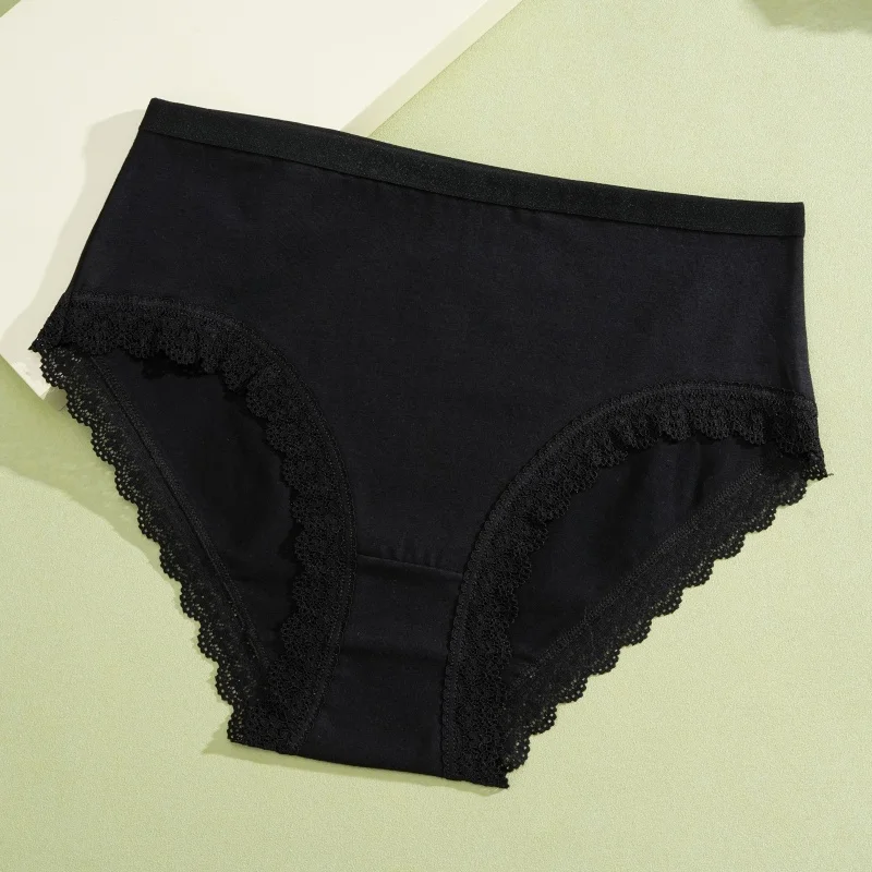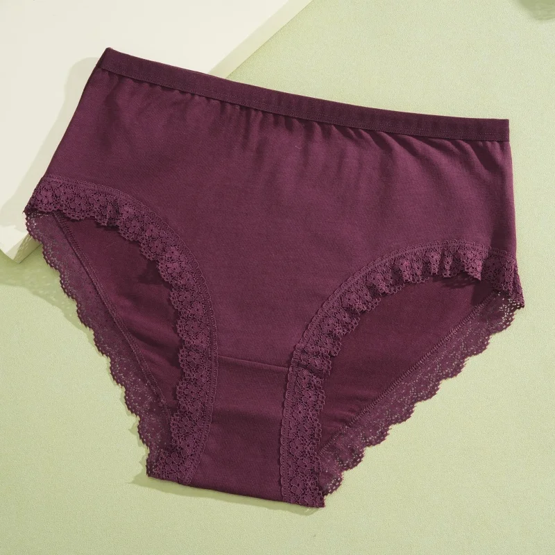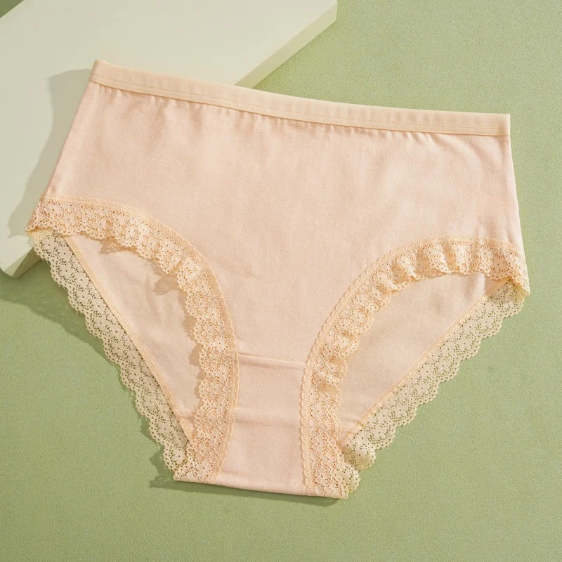 5Pcs/Set Women’s Sexy Lace Cotton Fabric Panties Seamless Solid Color High Waist Briefs Fashion High Quality Plus Size Lingerie