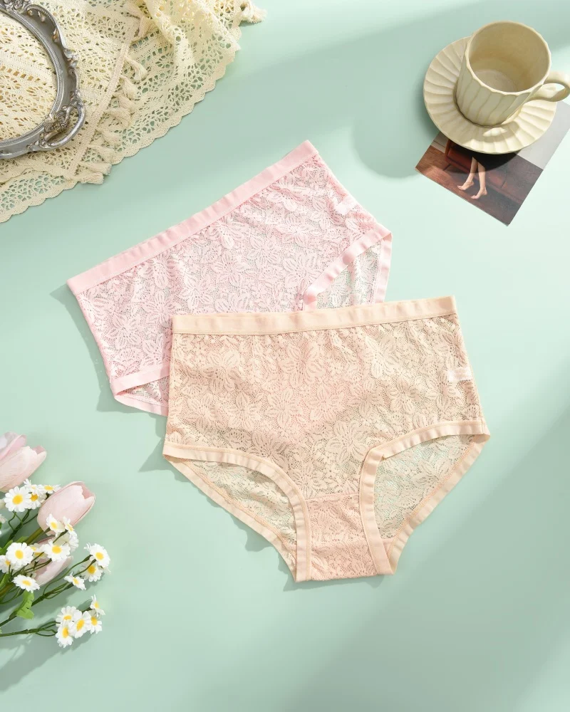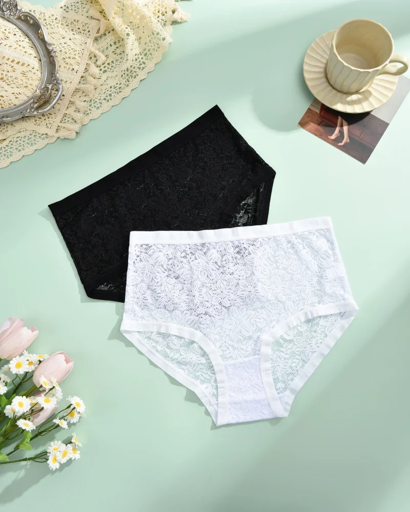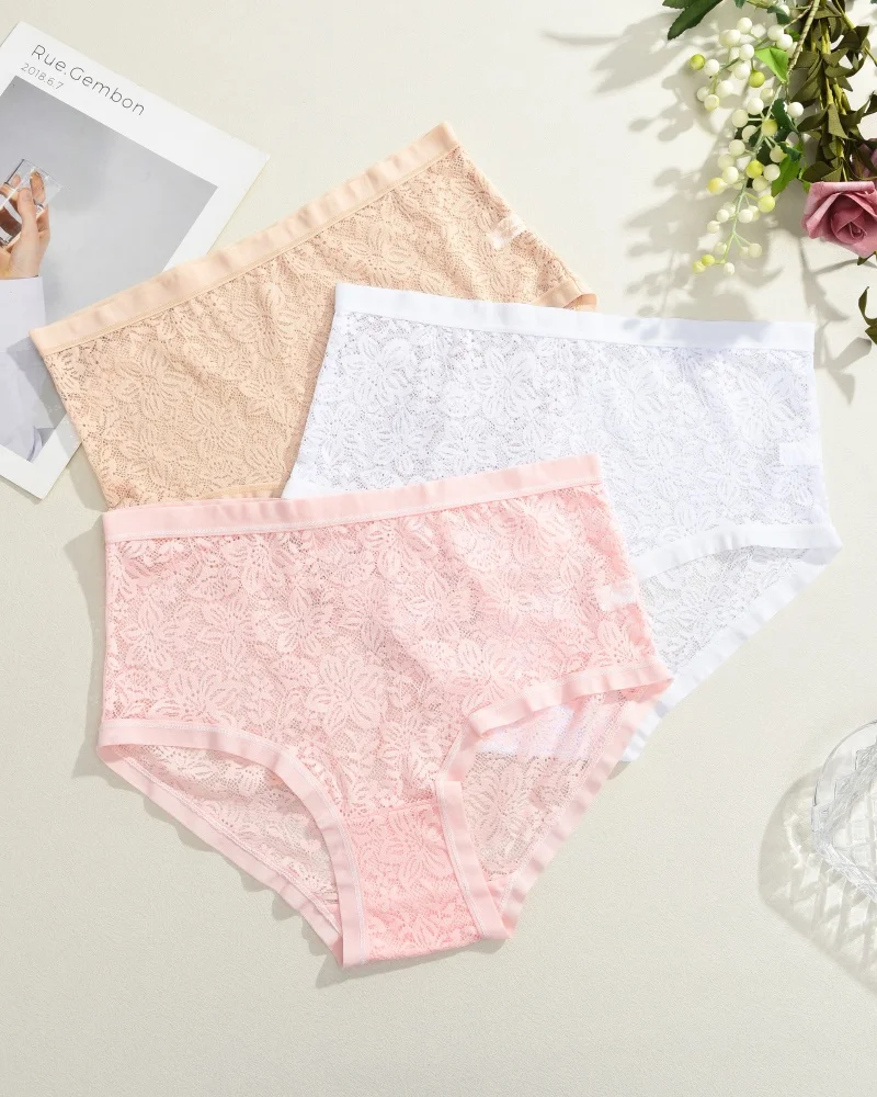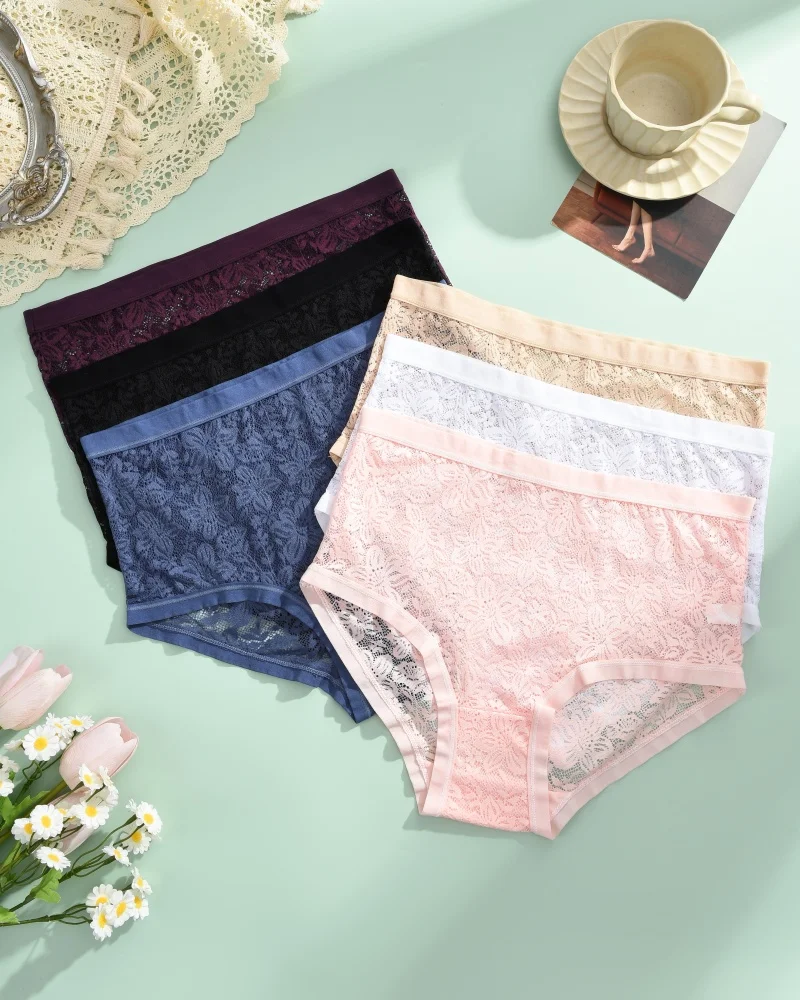 5PCS Sexy Lace Flower Panties For Women Solid Color Hollow Out Transparent Underwear Female High Waist Breathable Underpants New