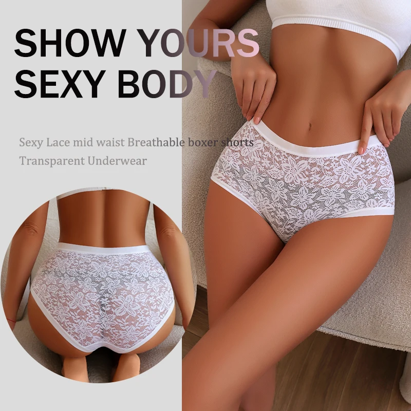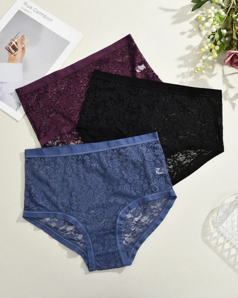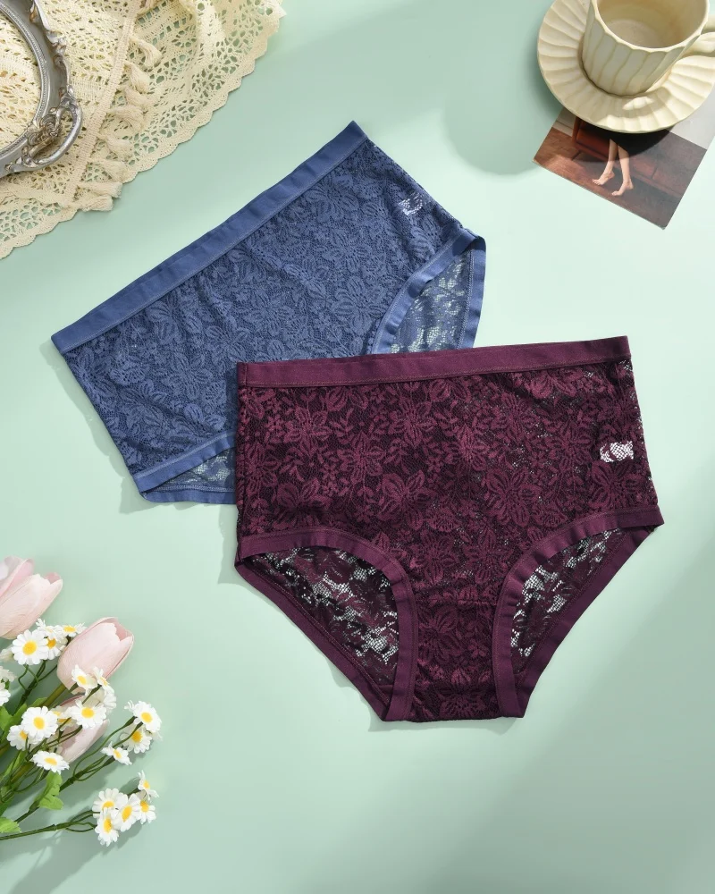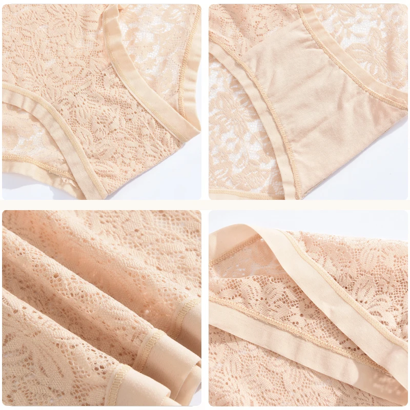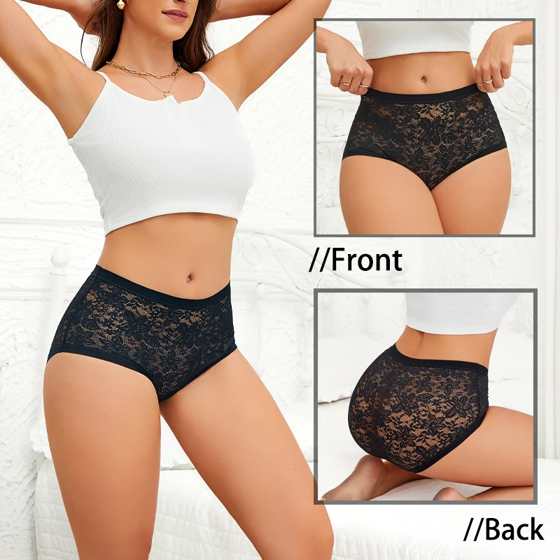 5PCS Sexy Lace Flower Panties For Women Solid Color Hollow Out Transparent Underwear Female High Waist Breathable Underpants New
