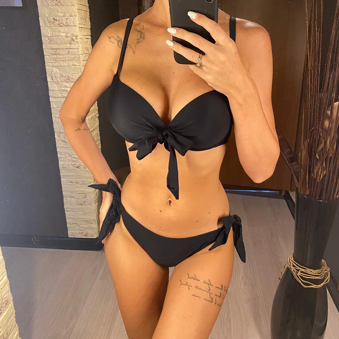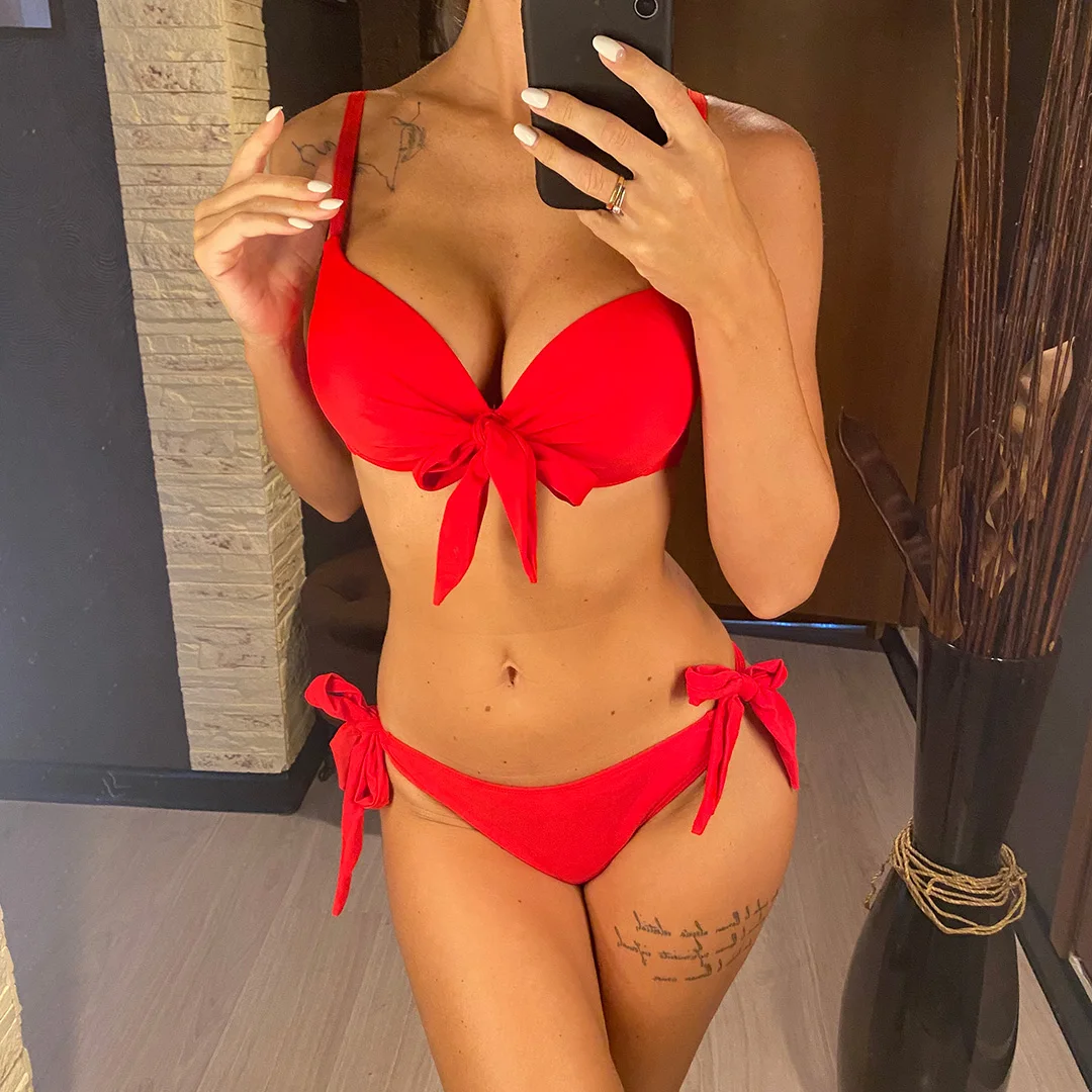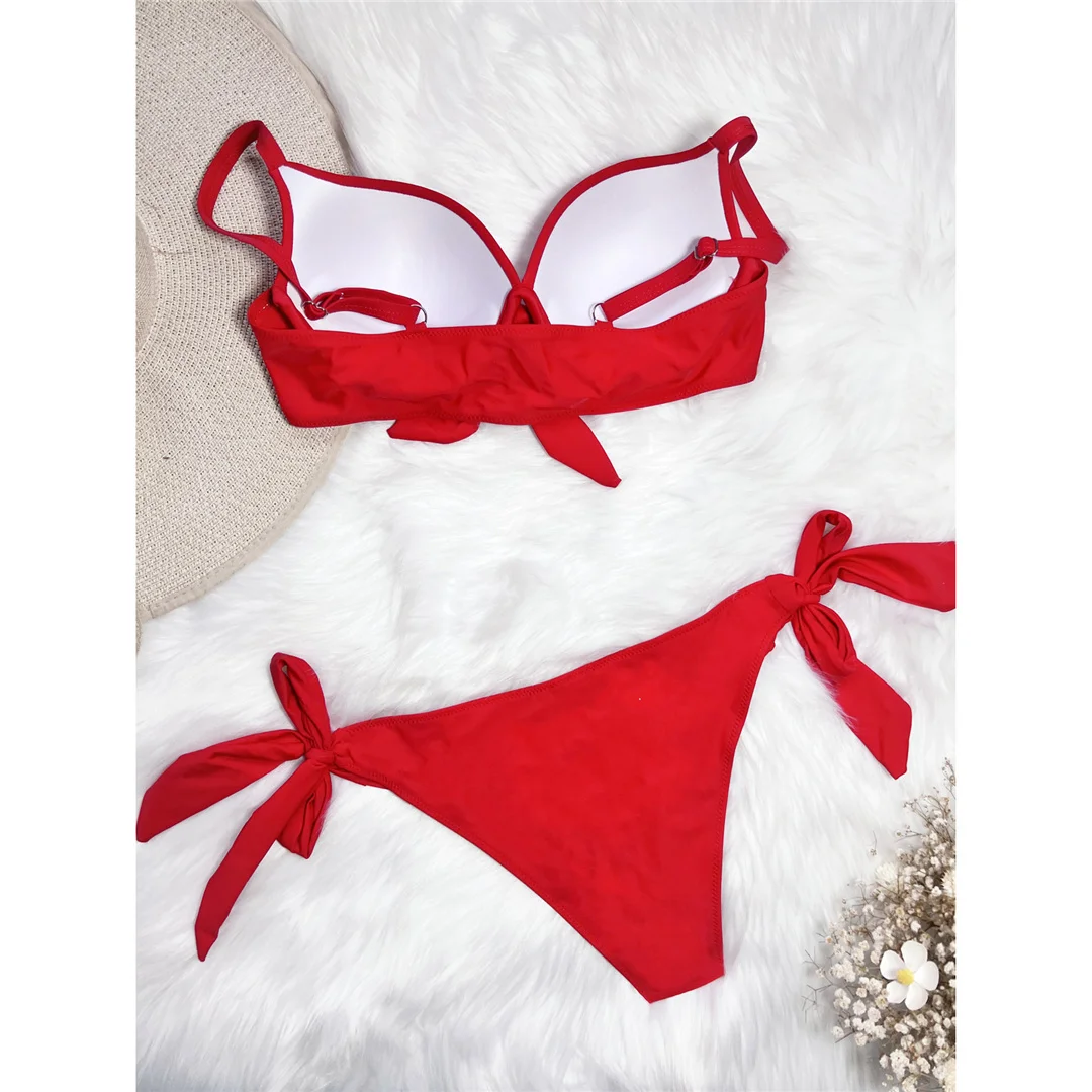 6 Colors Knotted Push Up Bikini Swimsuit Female Swimwear Women Two-pieces Bikini set With Bra Cup Bather Bathing Suit Swim V3992