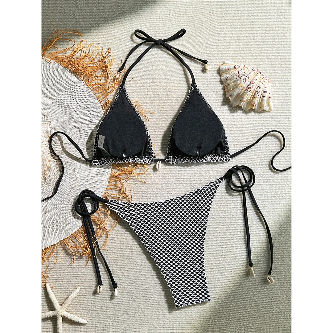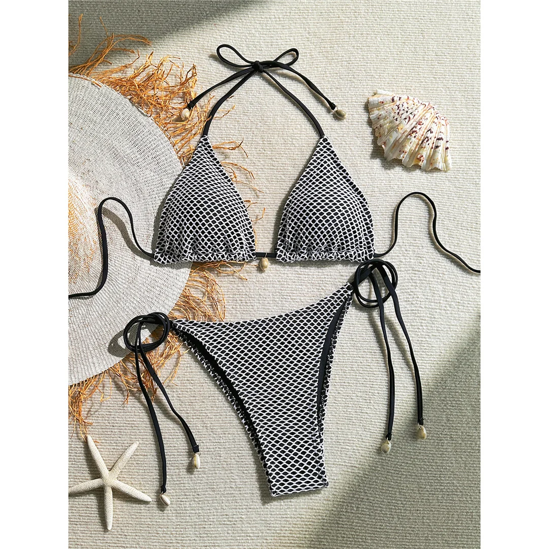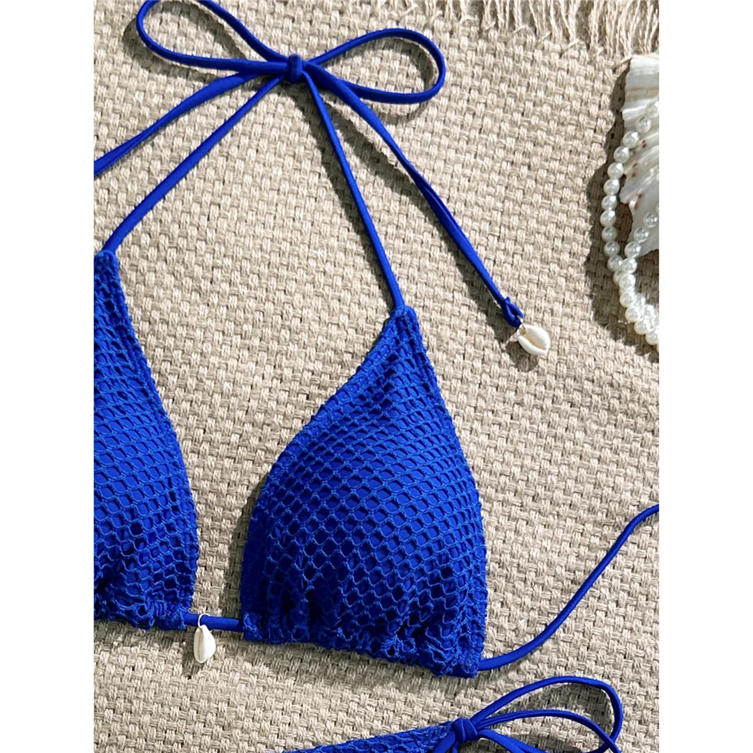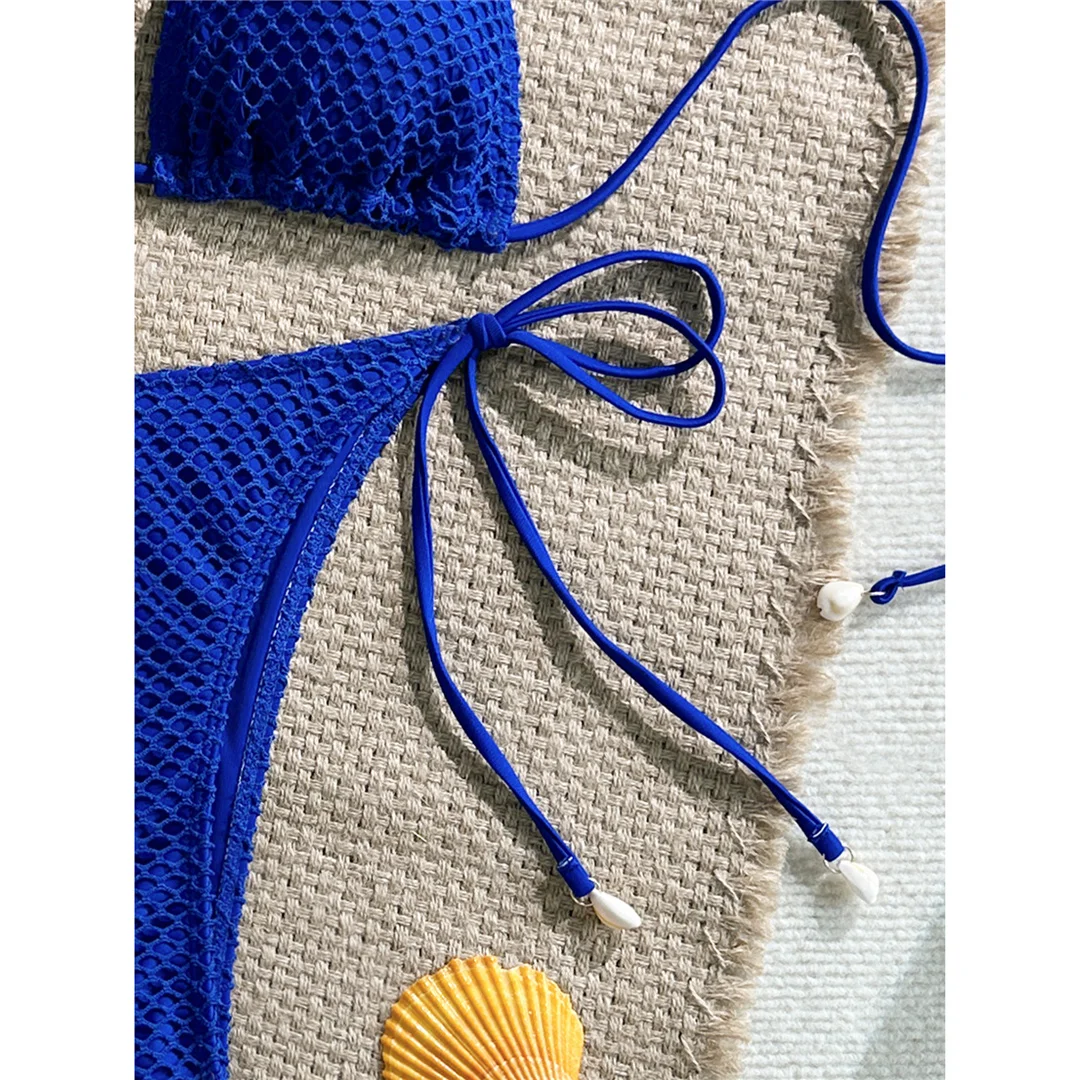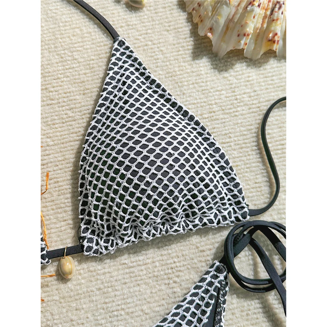 6 Colors Mesh Fishnet Halter Bikini Women Swimwear Female Swimsuit Two-pieces Bikini set Padded Bather Bathing Suit Swim V7276
