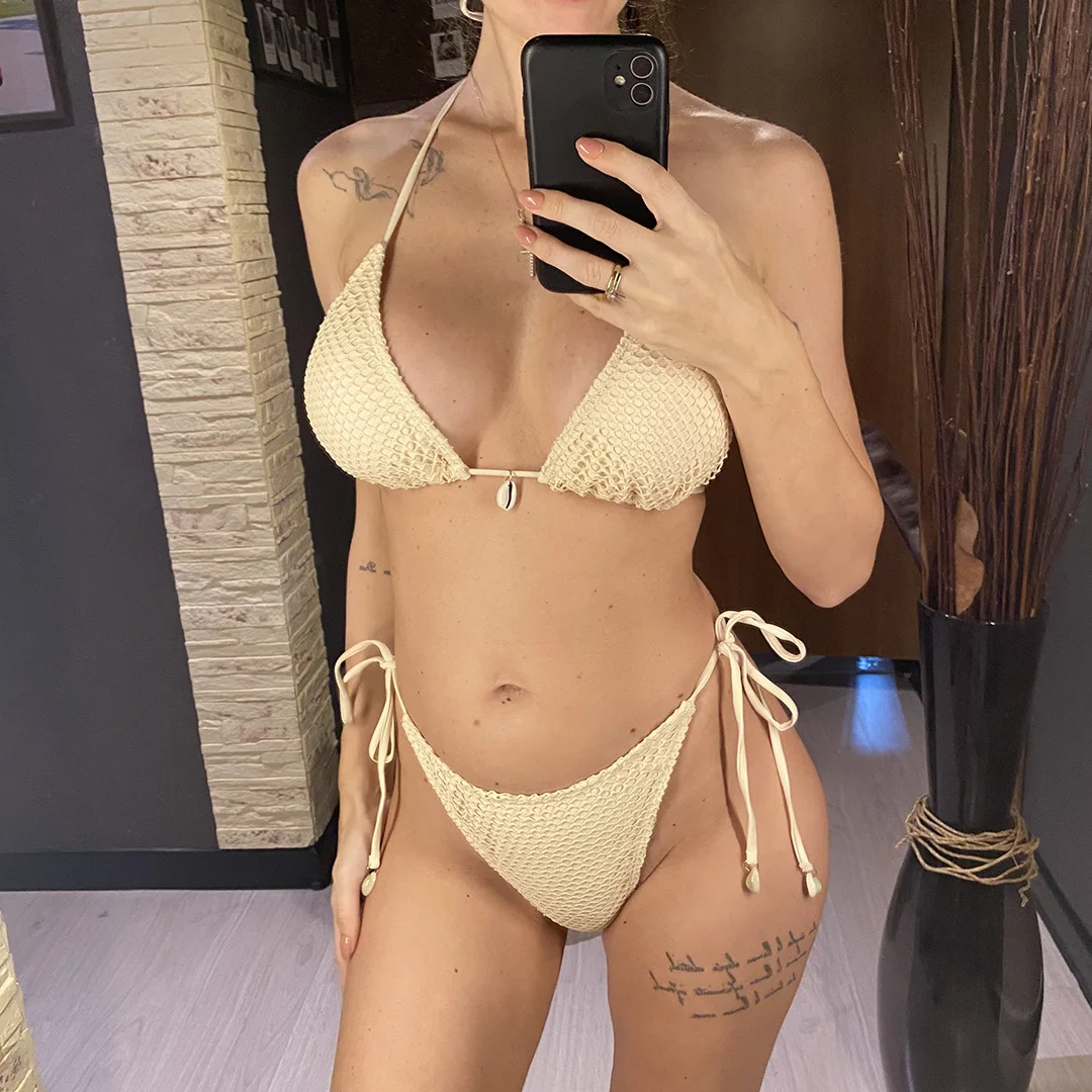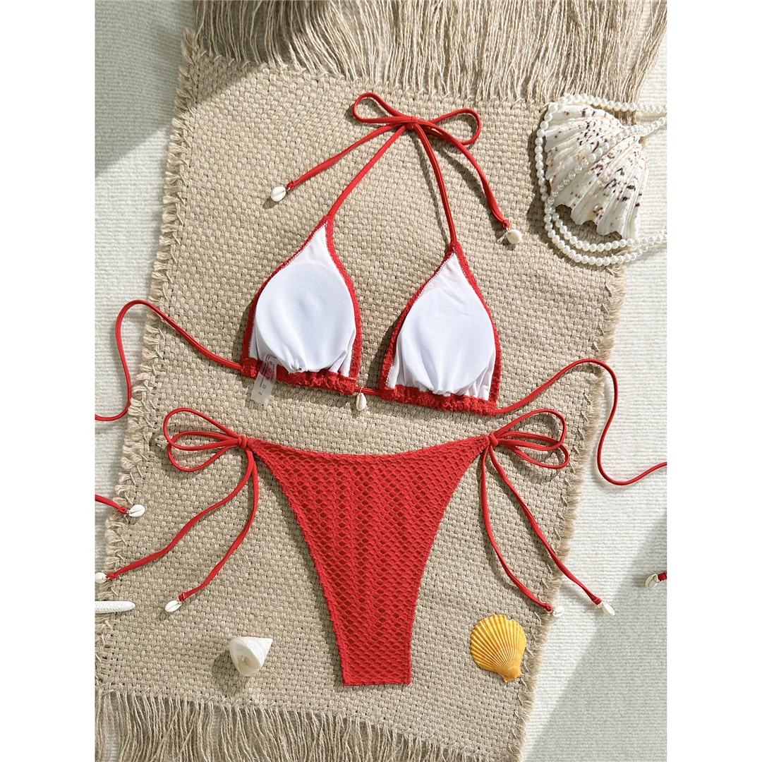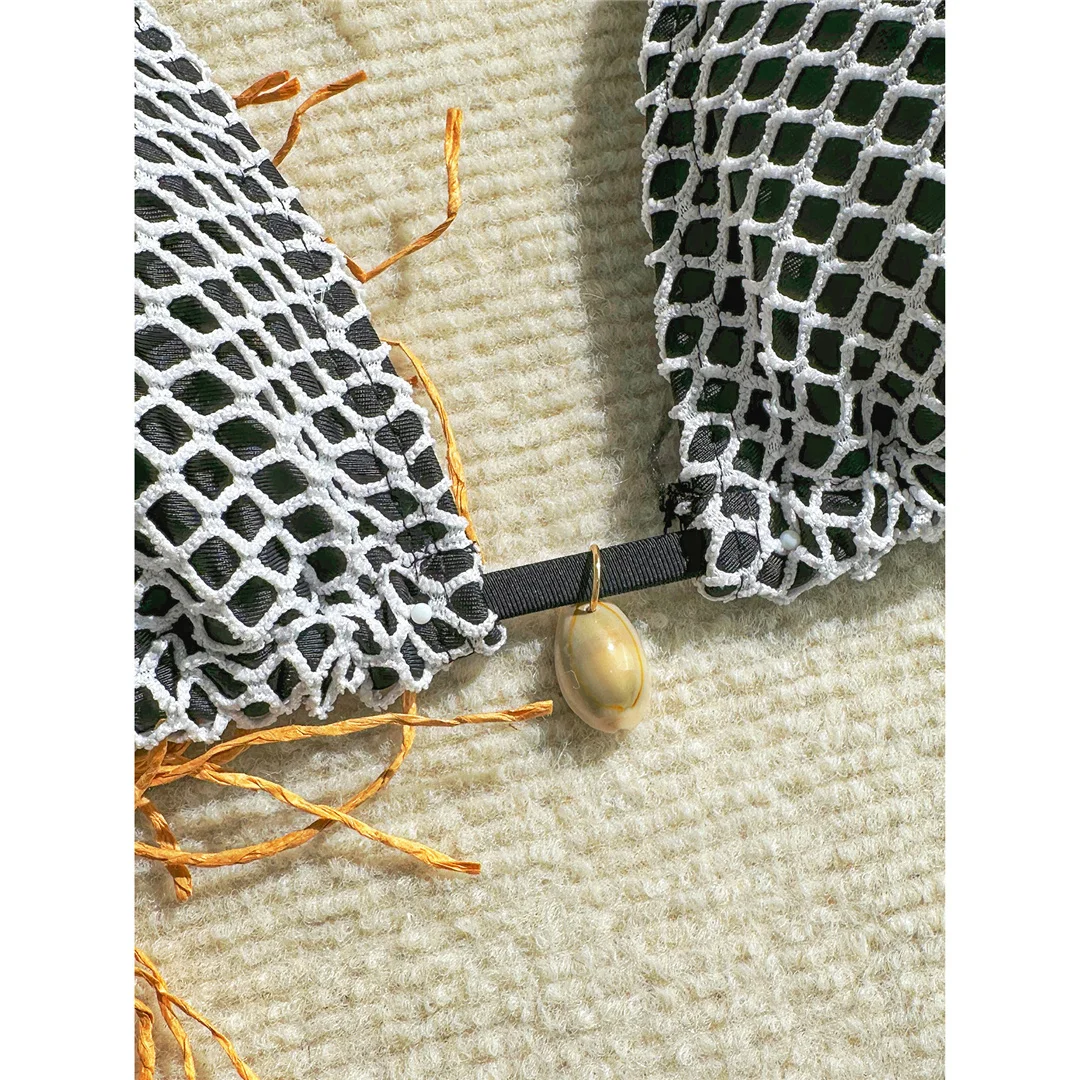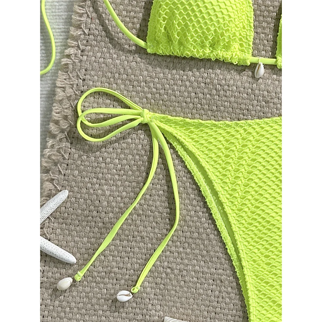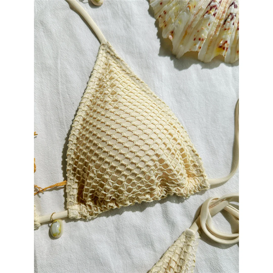 6 Colors Mesh Fishnet Halter Bikini Women Swimwear Female Swimsuit Two-pieces Bikini set Padded Bather Bathing Suit Swim V7276