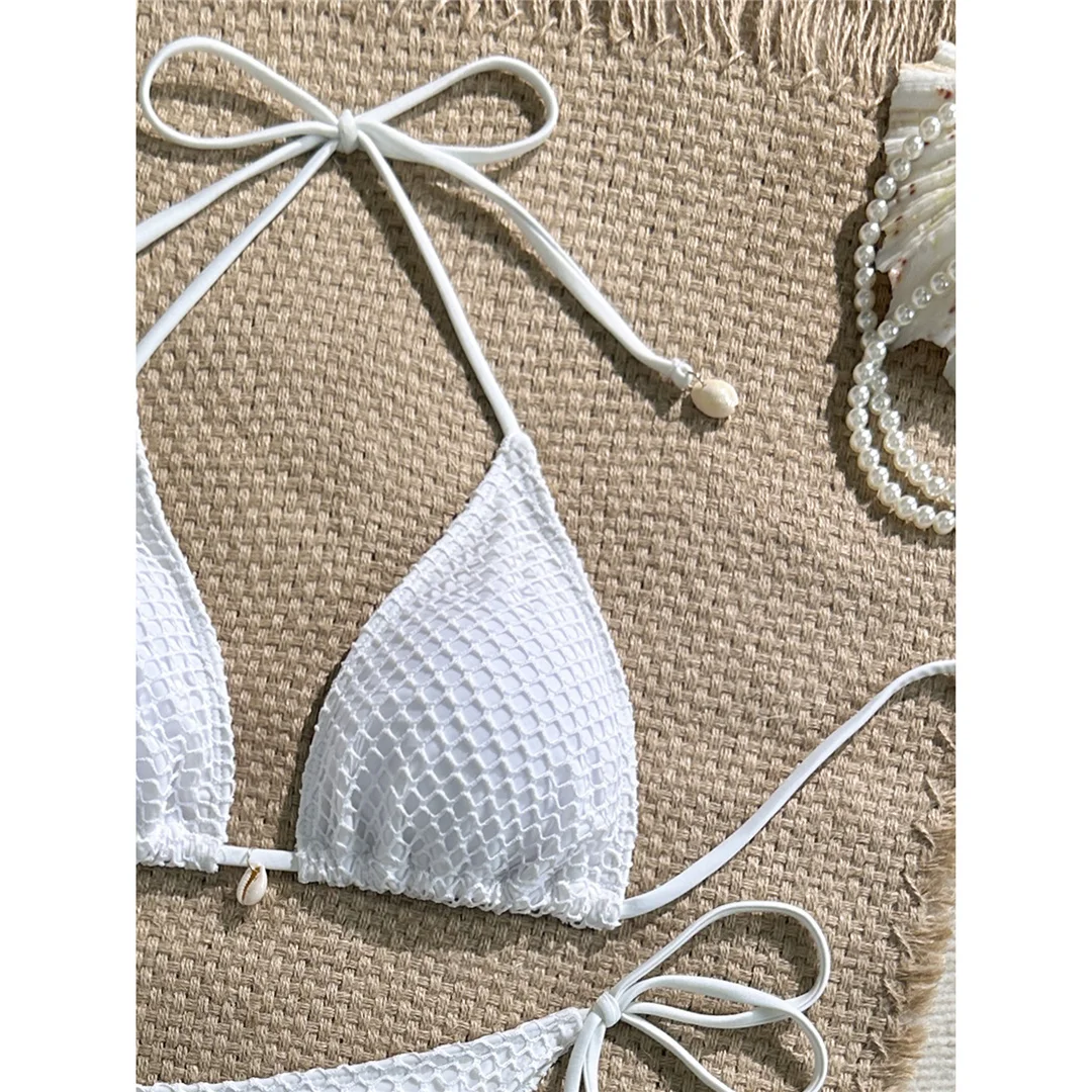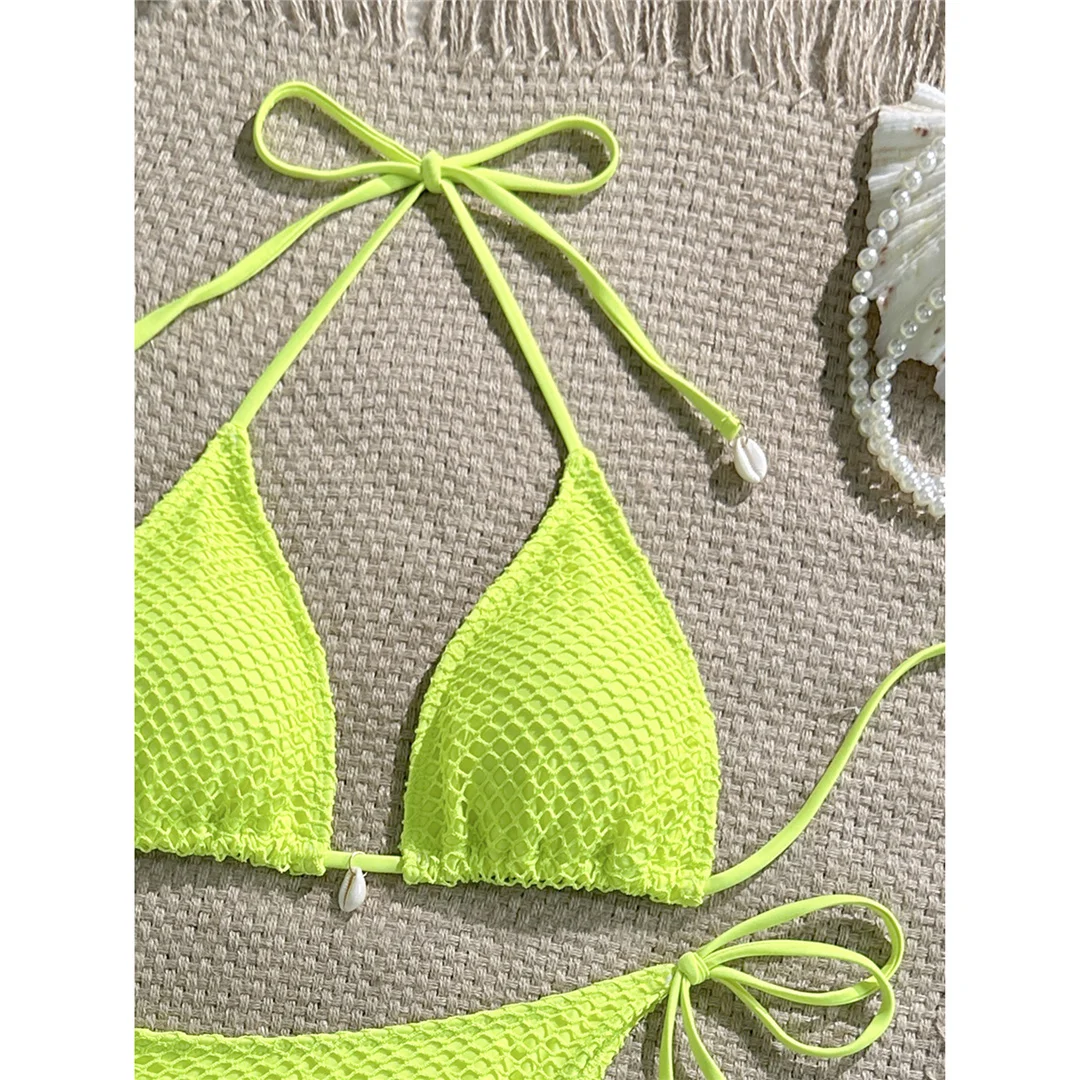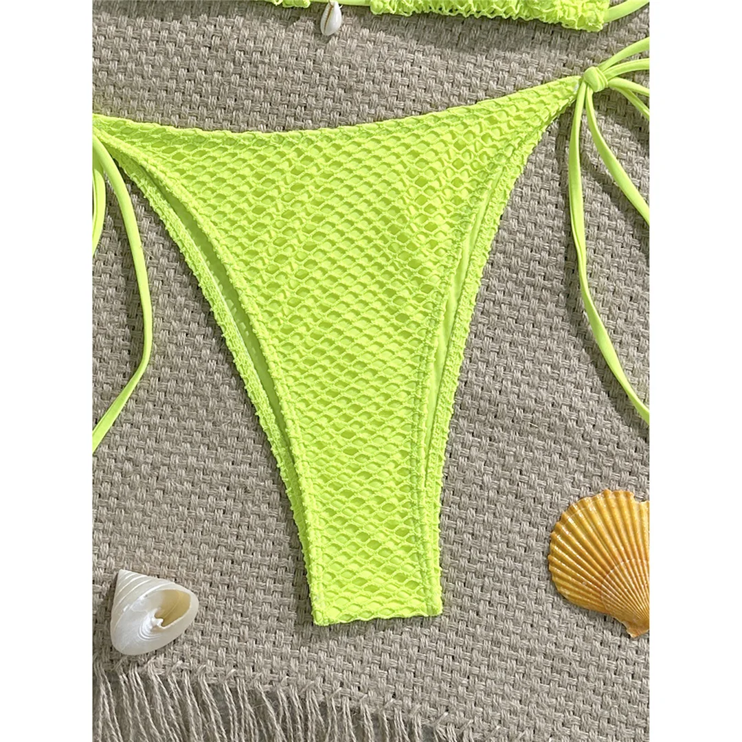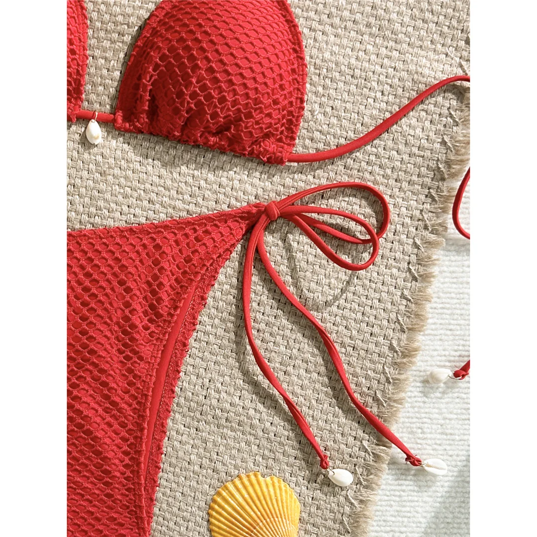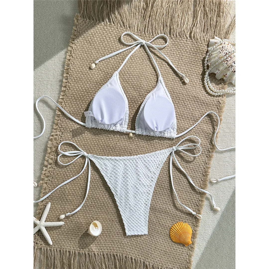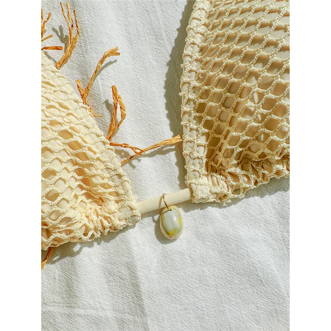 6 Colors Mesh Fishnet Halter Bikini Women Swimwear Female Swimsuit Two-pieces Bikini set Padded Bather Bathing Suit Swim V7276
