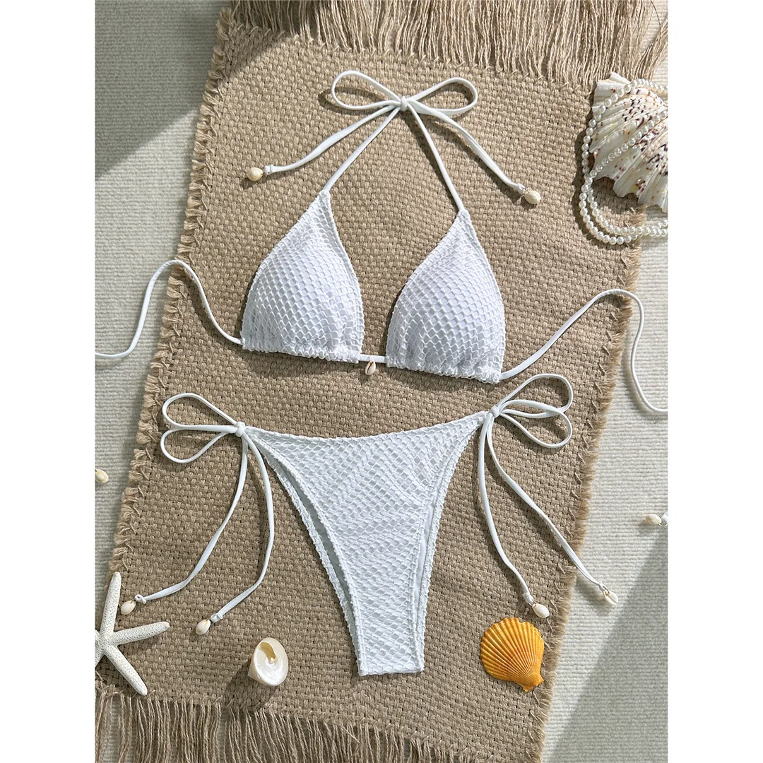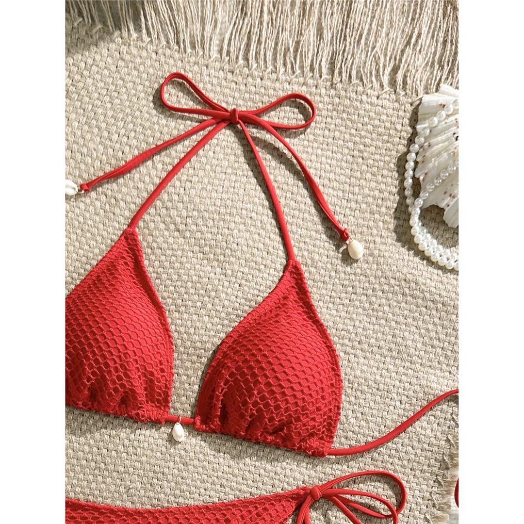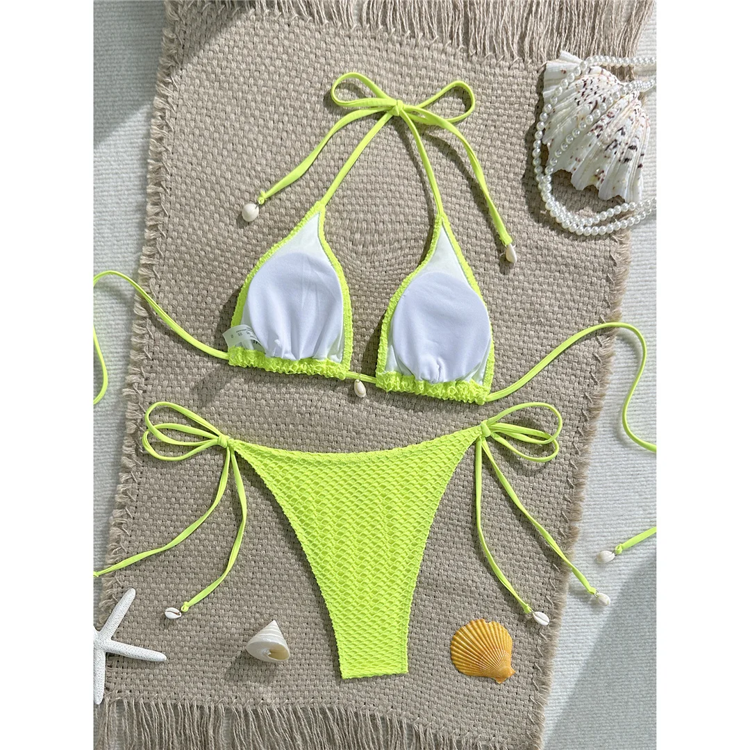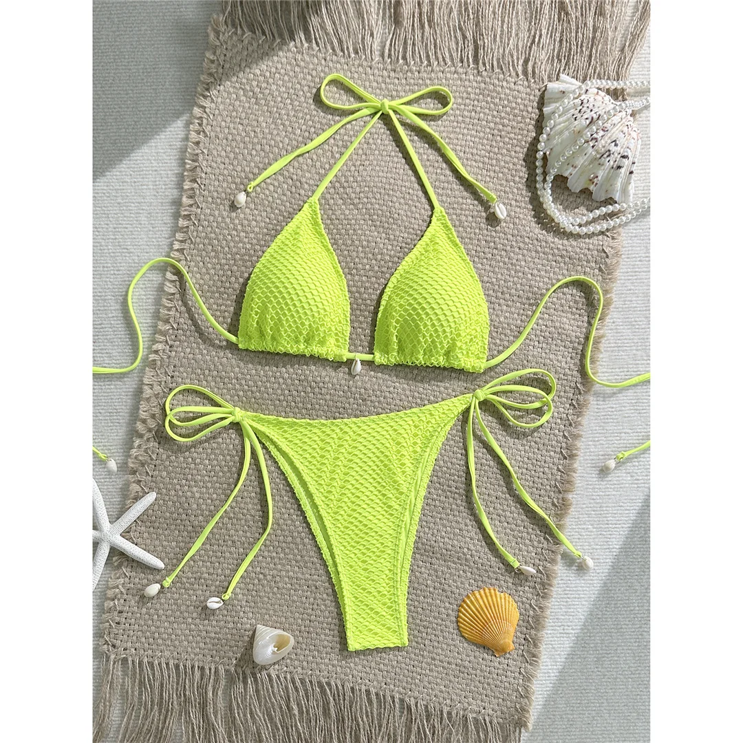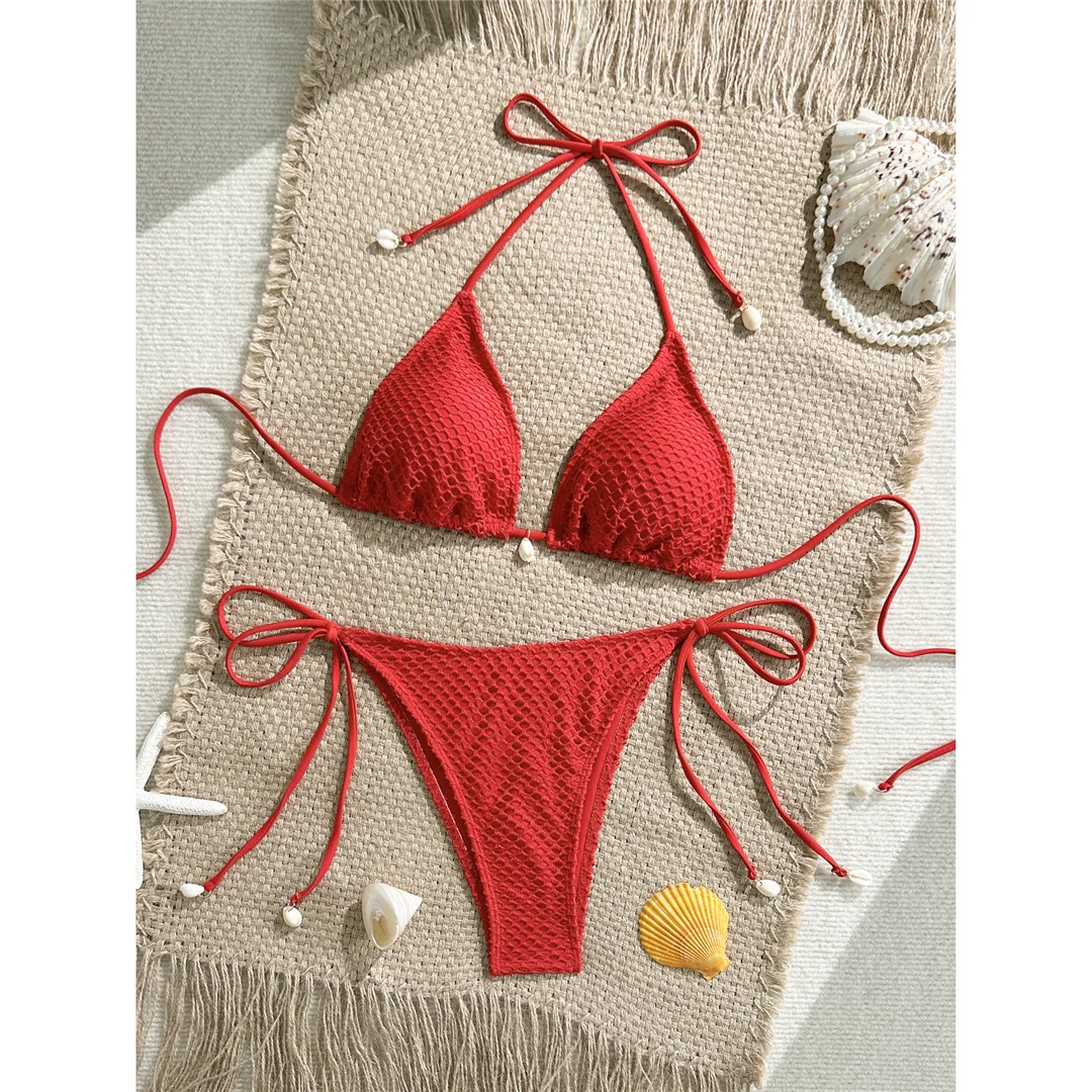 6 Colors Mesh Fishnet Halter Bikini Women Swimwear Female Swimsuit Two-pieces Bikini set Padded Bather Bathing Suit Swim V7276