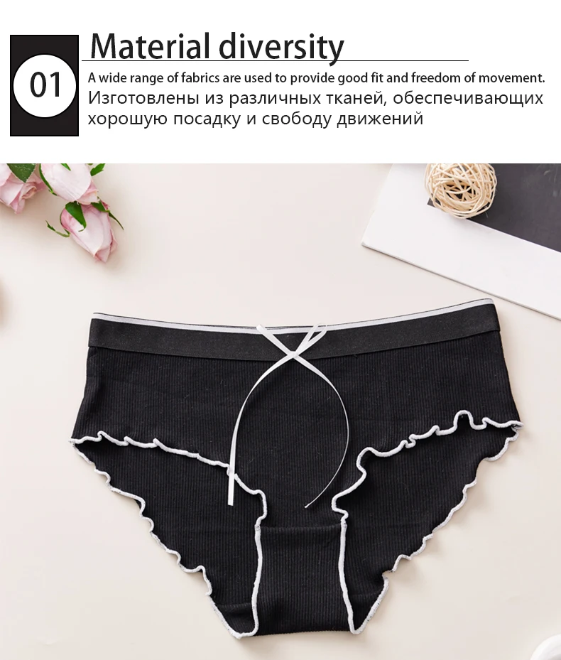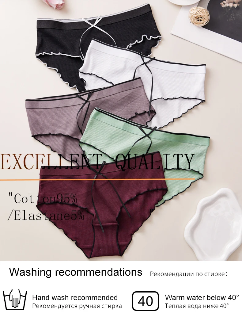 6PCS Discount Cotton Women’s Panties Solid Color Sexy Ladies Briefs Breathable Soft Women’s Underwear Seamless Stretchy Lingerie