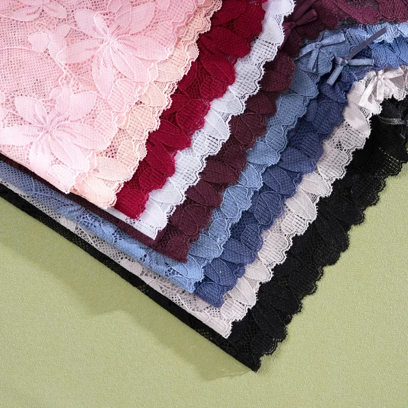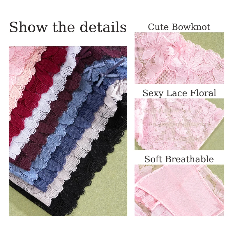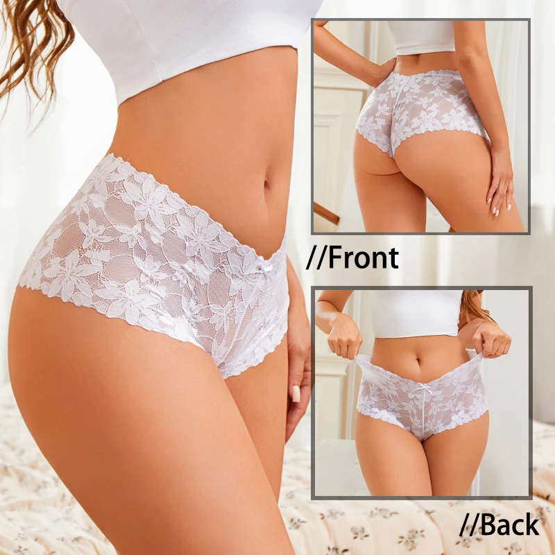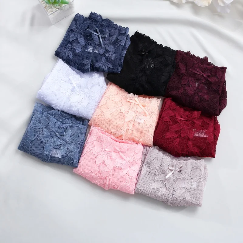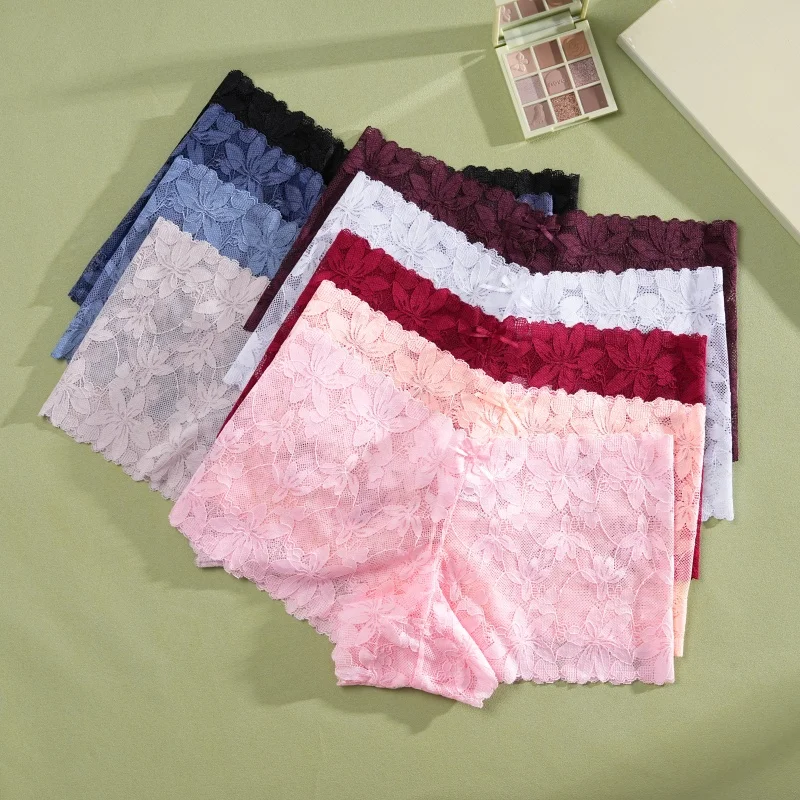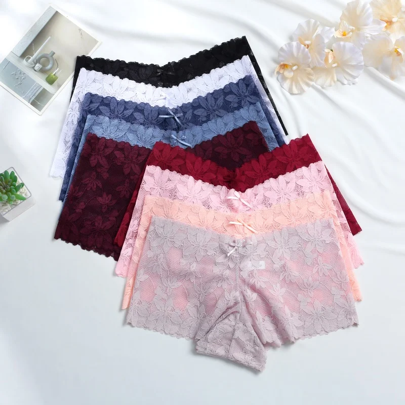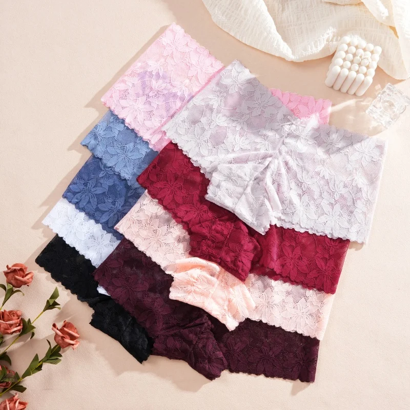 6Pcs/Set Sexy Lace Perspective Flower Boyshort Solid Color High Waist Hollow Panties Female Breathable Transparent Boxer Shorts