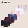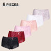 6Pcs/Set Sexy Lace Perspective Flower Boyshort Solid Color High Waist Hollow Panties Female Breathable Transparent Boxer Shorts