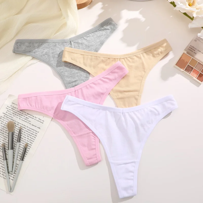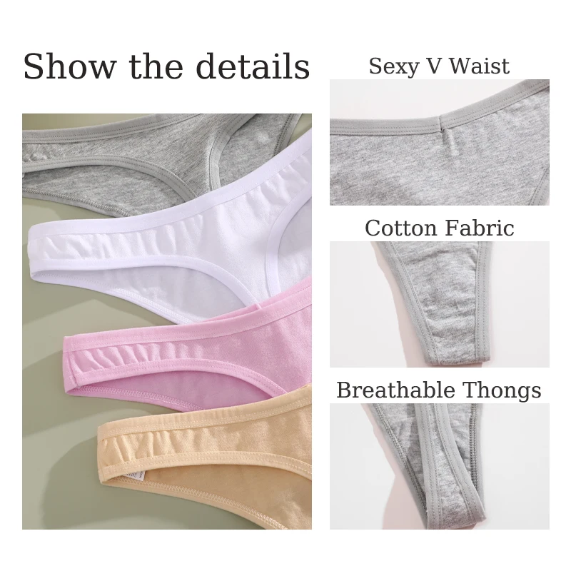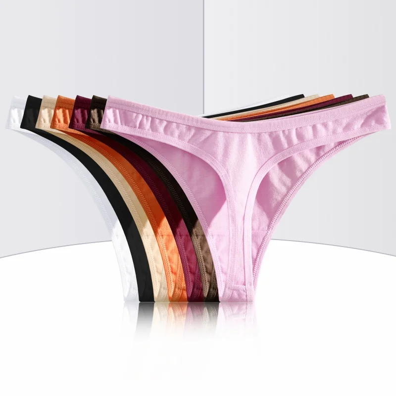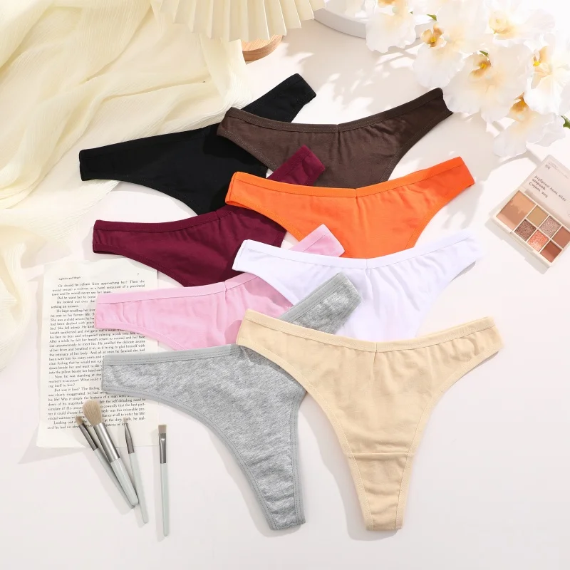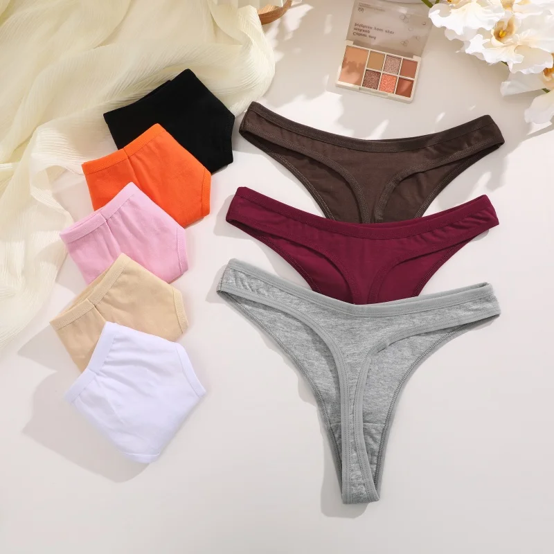 6Pcs/Set Women’s Sexy Low Waist Cotton Panties Seamless Solid Color Comfortable Thongs Female Elastic Breathable G-Strings S-XL