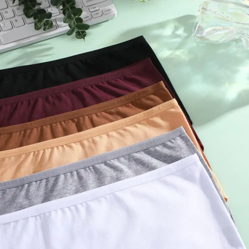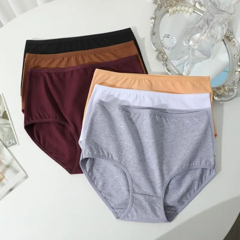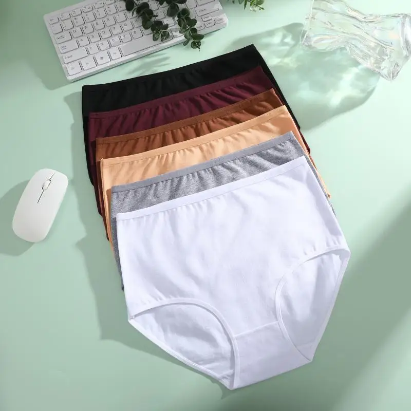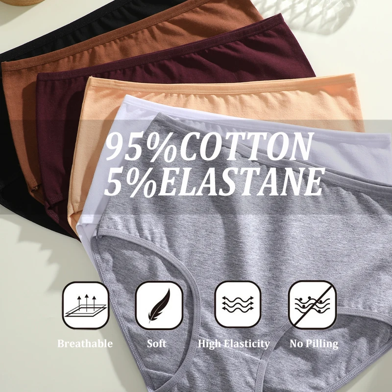 6PCS Women’s Cotton Fabric Panties Seamless High Elastic Breathable Underwear Simple Solid Color Mid Rise Briefs Female Lingerie