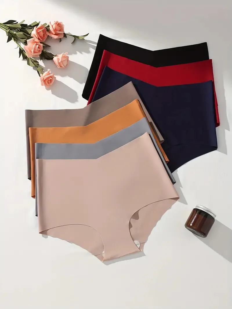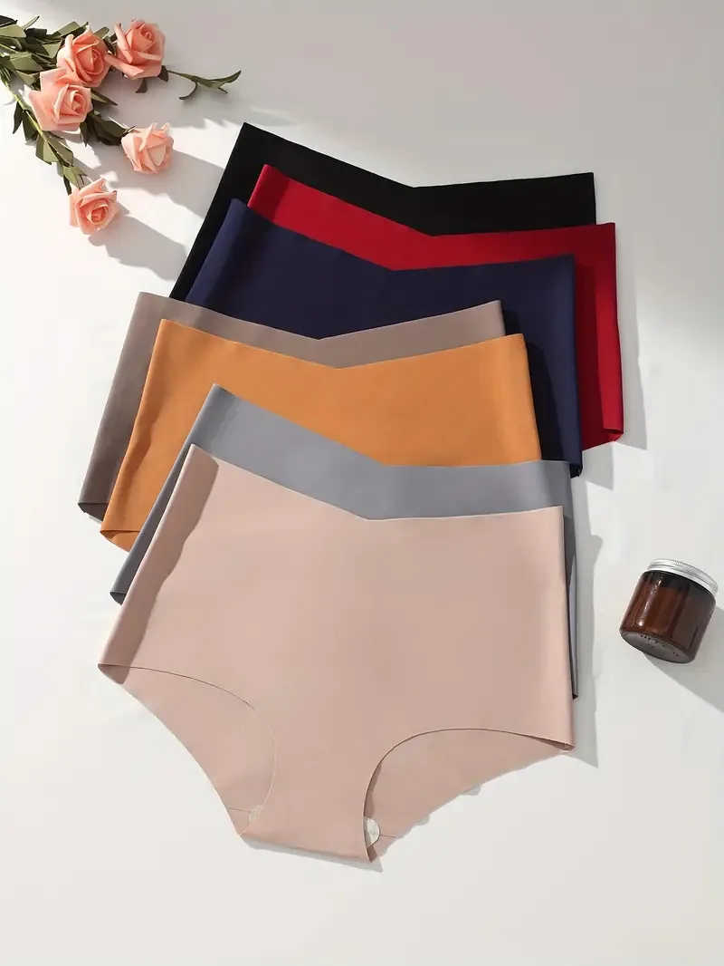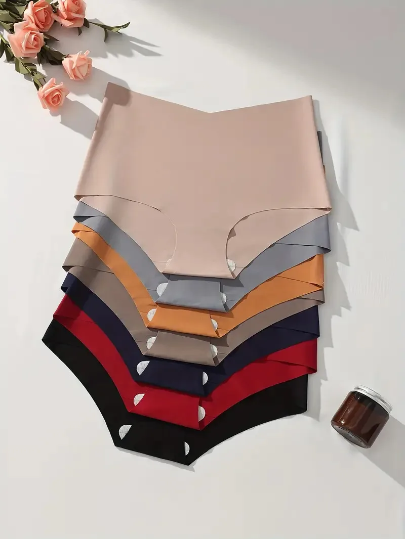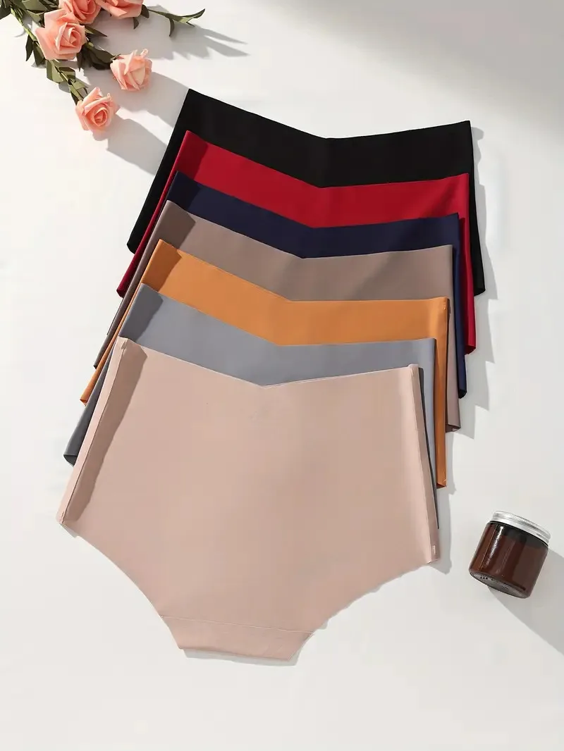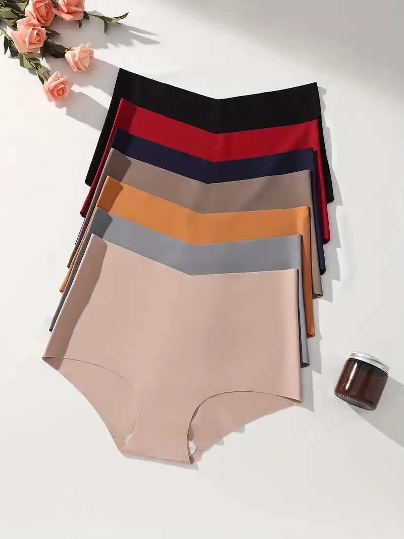 7Pcs Seamless Women Panties Ice Silk Underwear Sexy Ladies Briefs High-Rise Solid Panty Traceless Female Lingerie Plus Size