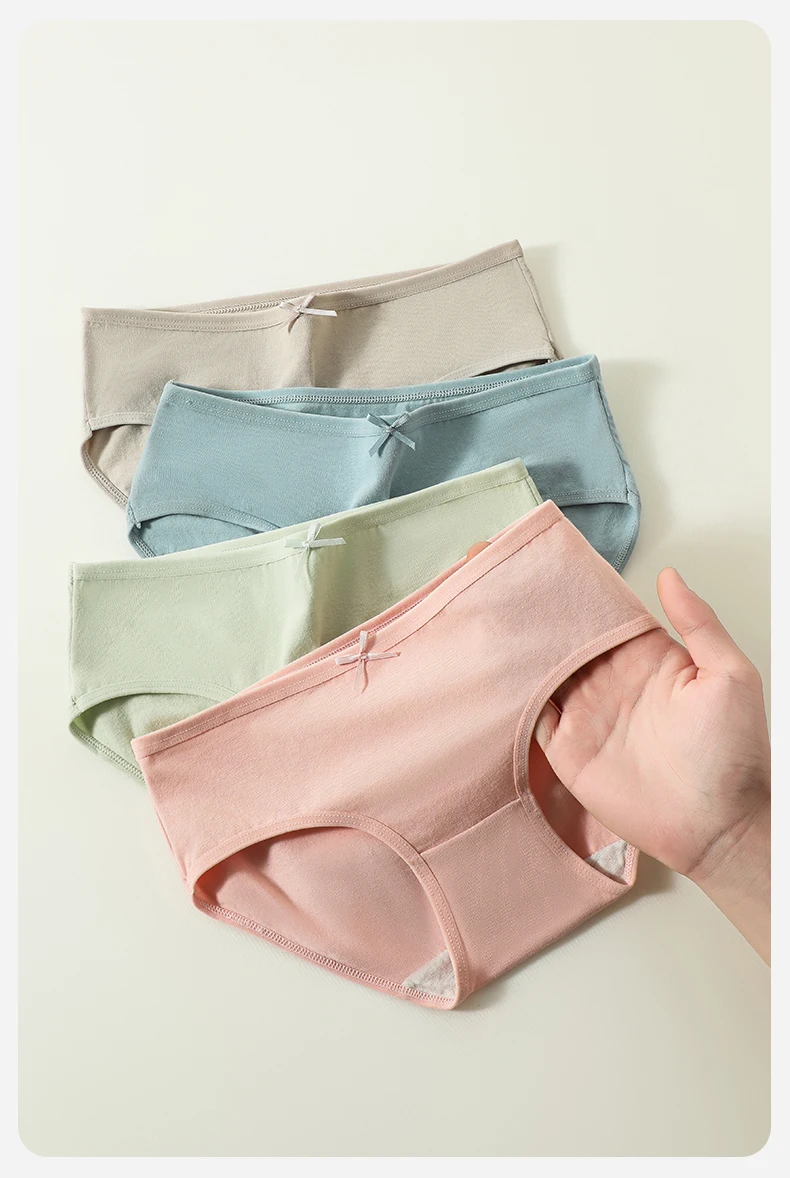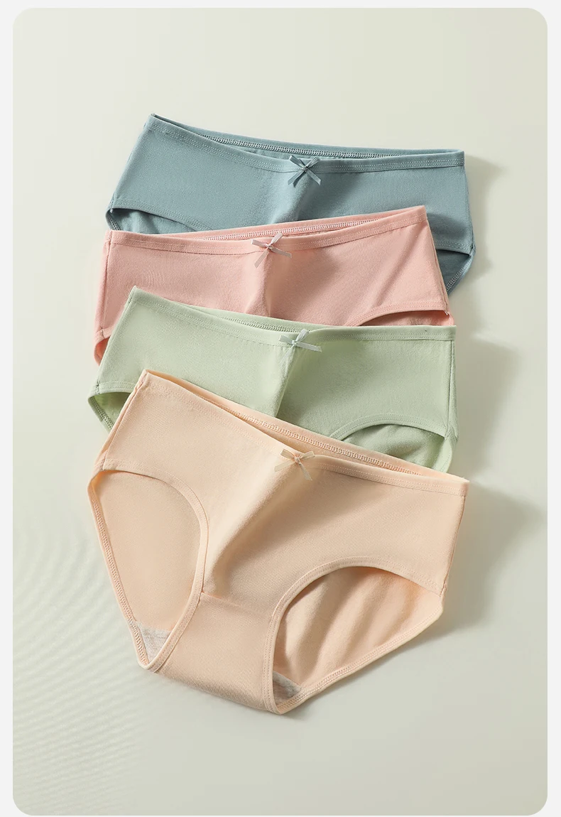 7Pcs/Set Women’s Panties Cotton Underwear Bow Girls Briefs Solid Soft Panty Breathable Underpants Sexy Low Waist Female Lingerie