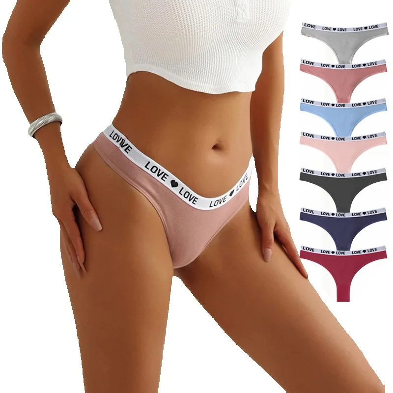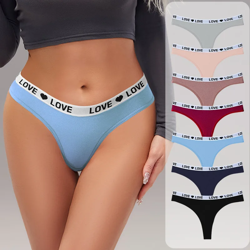 7Pcs Sexy Women Thongs Low Waist Panties Underwear Letter Girls Briefs Cotton G-String Breathable Ladies Panty Female Lingerie