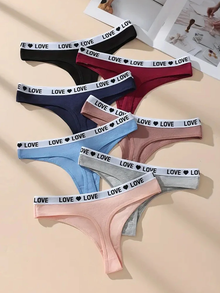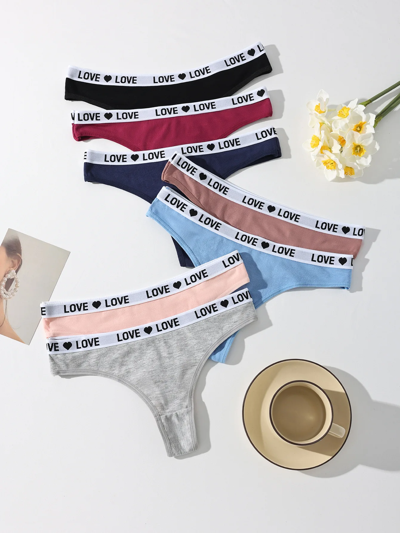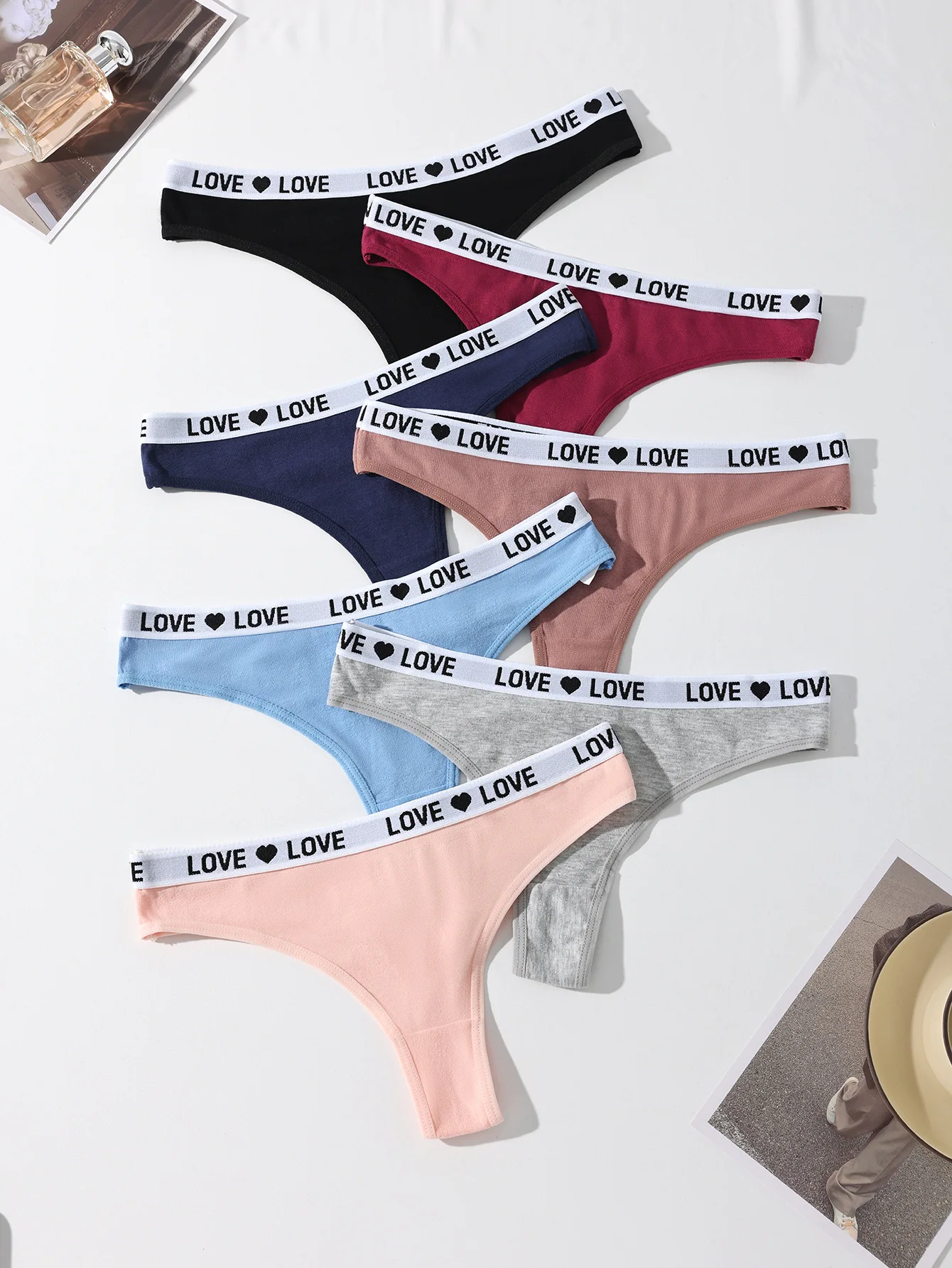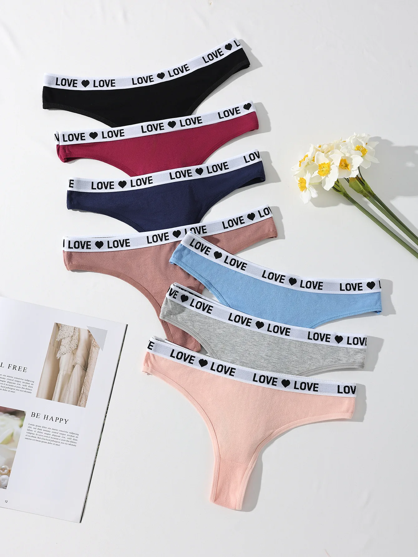 7PCS Cotton Women Thongs Sexy Low Waist Panties Underwear Letter Girls Briefs Female Lingerie G-String Breathable Ladies Pantys