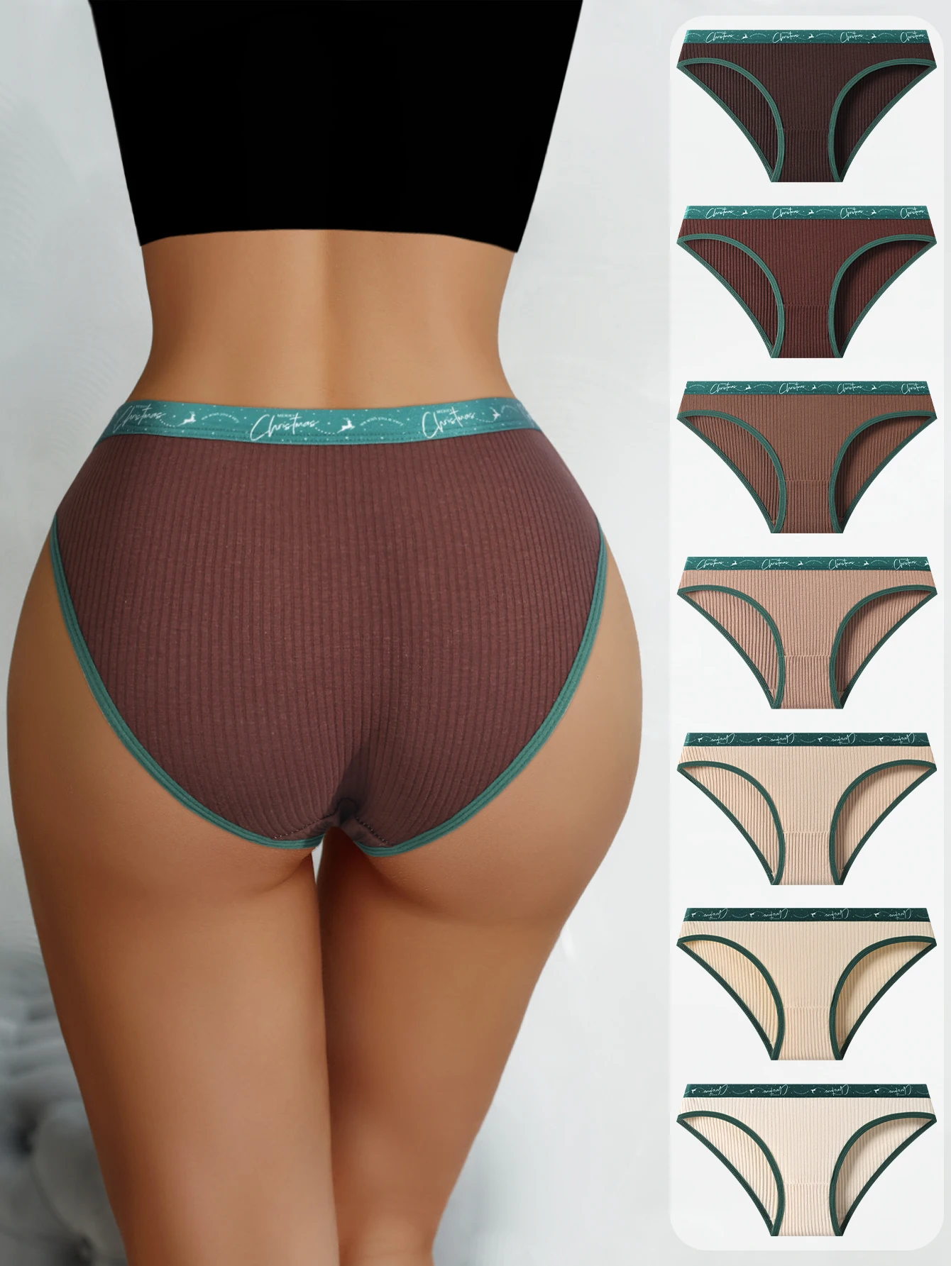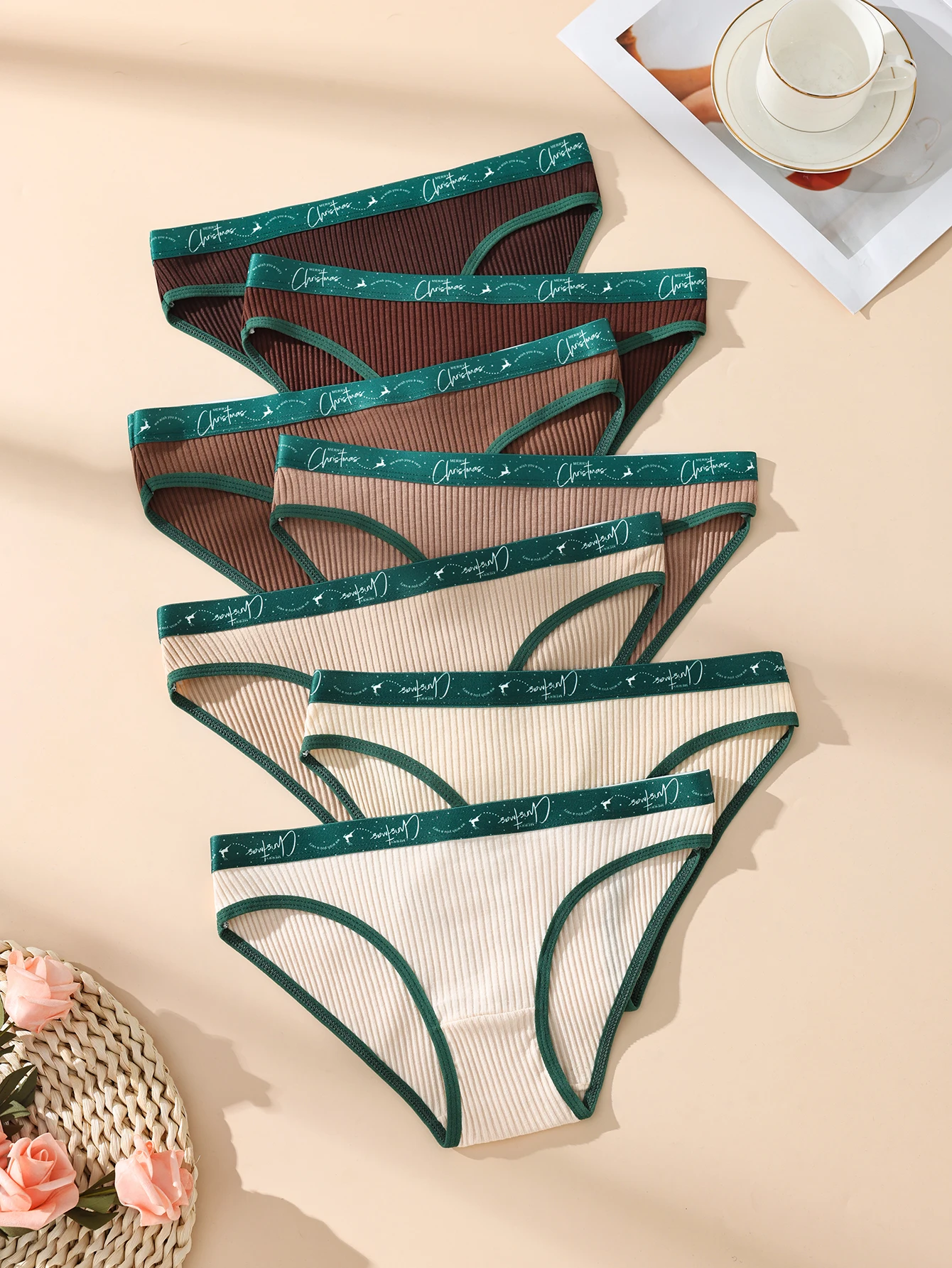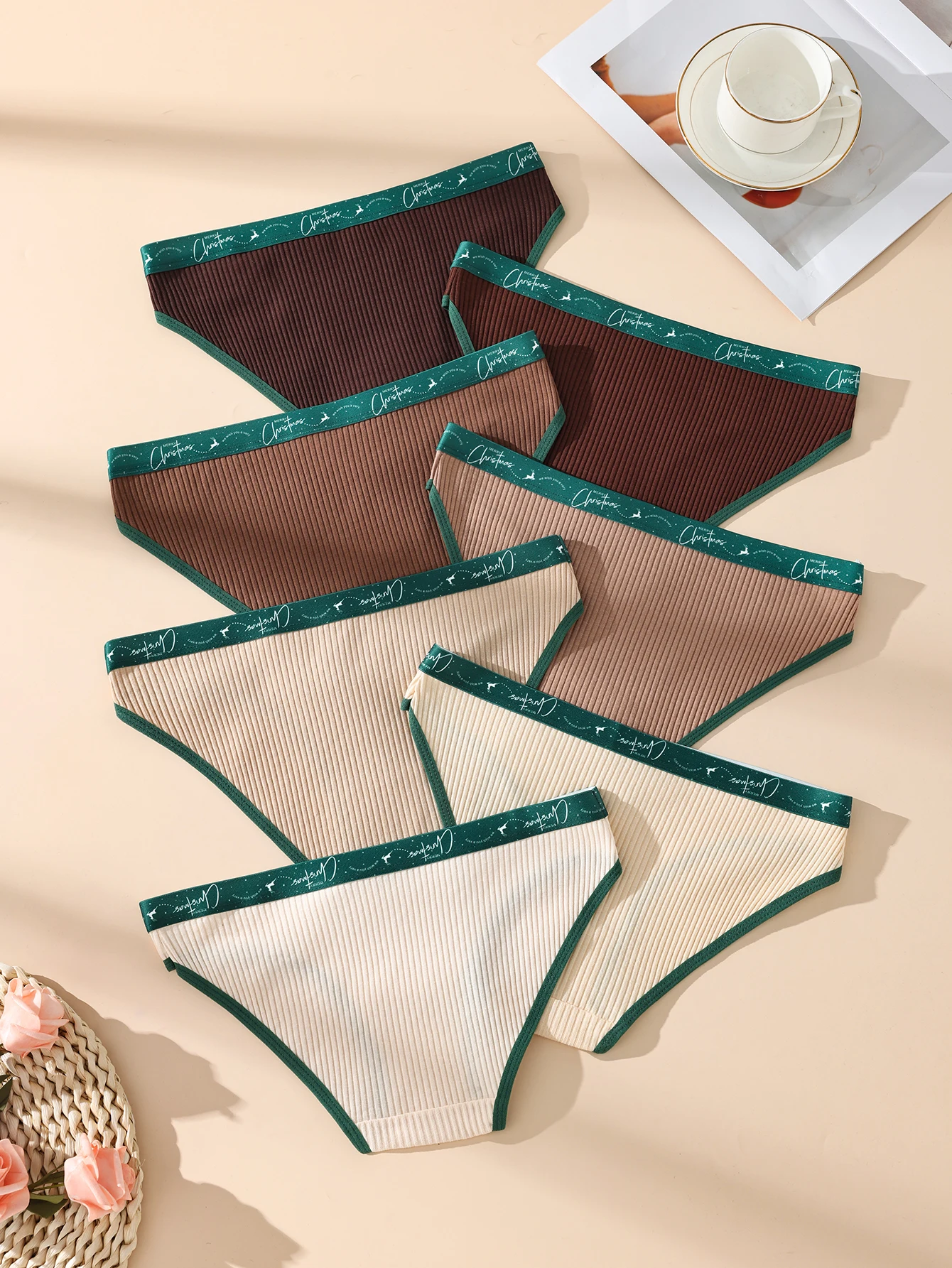 7PCS Women’s Panties Striped Briefs Sexy Women Underpants Low-Rise Breathable Cotton Panty Female Underwear Ladies Lingerie