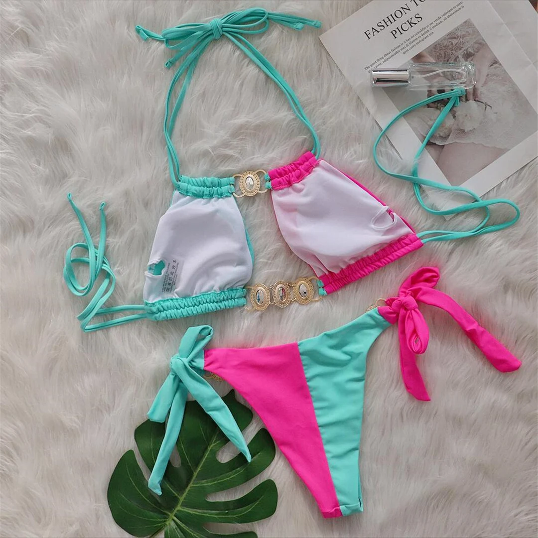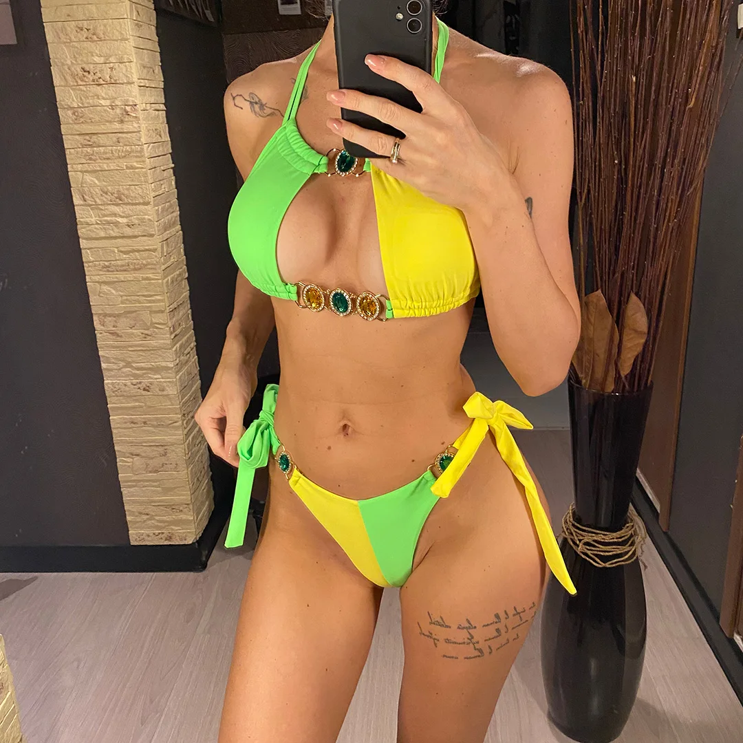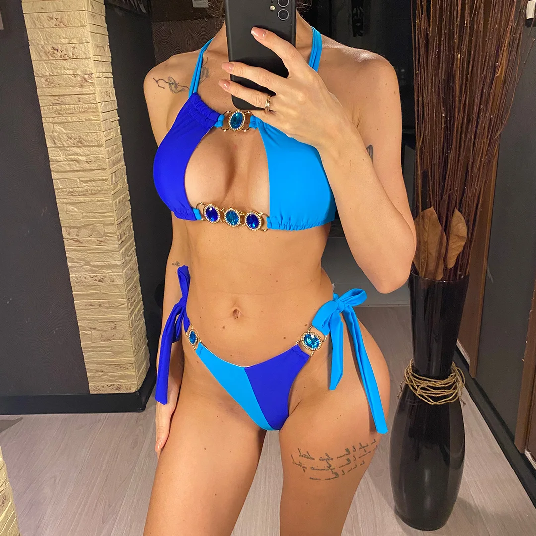 8 Colors Diamond Rhinestones Splicing Bikini Women Swimwear Female Swimsuit Two-pieces Bikini set Bather Bathing Suit Swim V5132