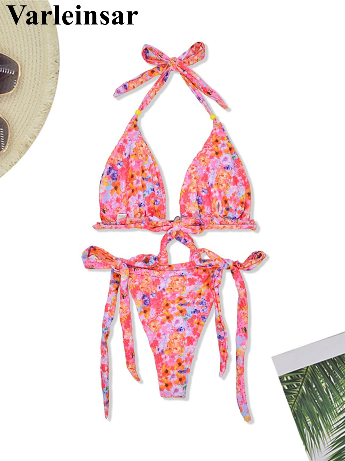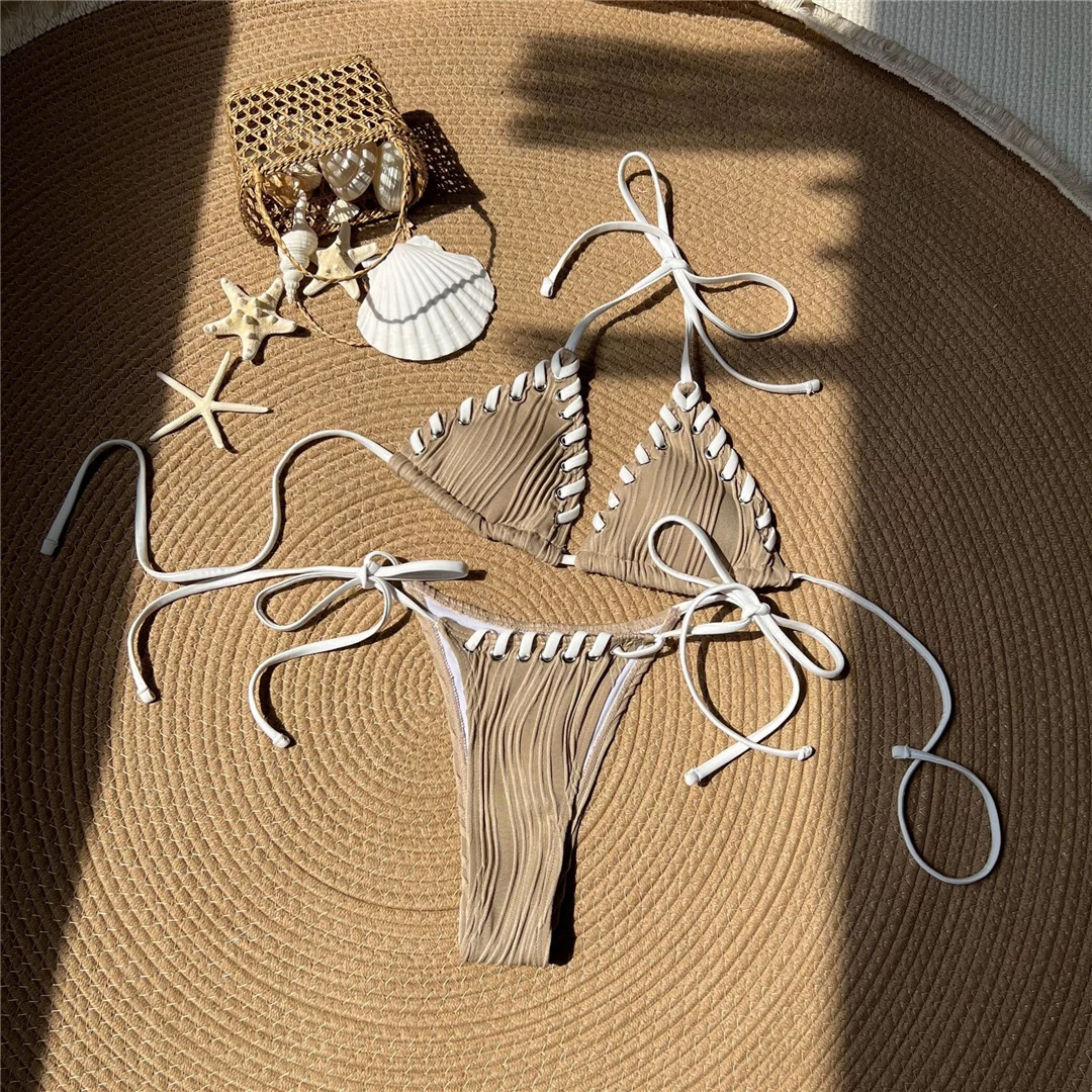 8 Colors Halter Ribbed High Leg Cut Bikini Female Swimsuit Women Swimwear Two-pieces Bikini set Bather Bathing Suit Swim V5541Y