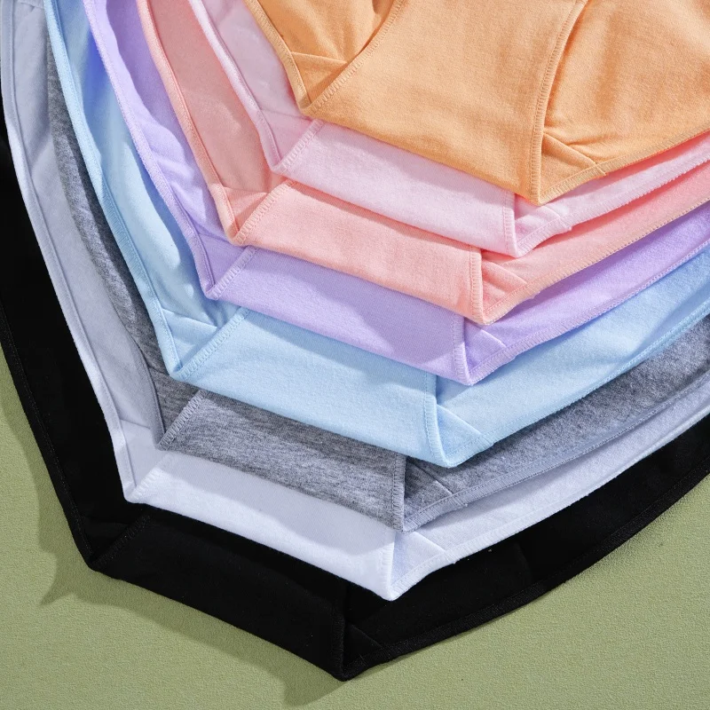 8Pcs/Set Women’s Seamless Cotton Panties Cute Solid Color High Elastic Mid Rise Breathable Underwear Trendy Soft Cozy Underpants